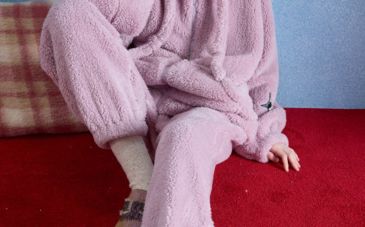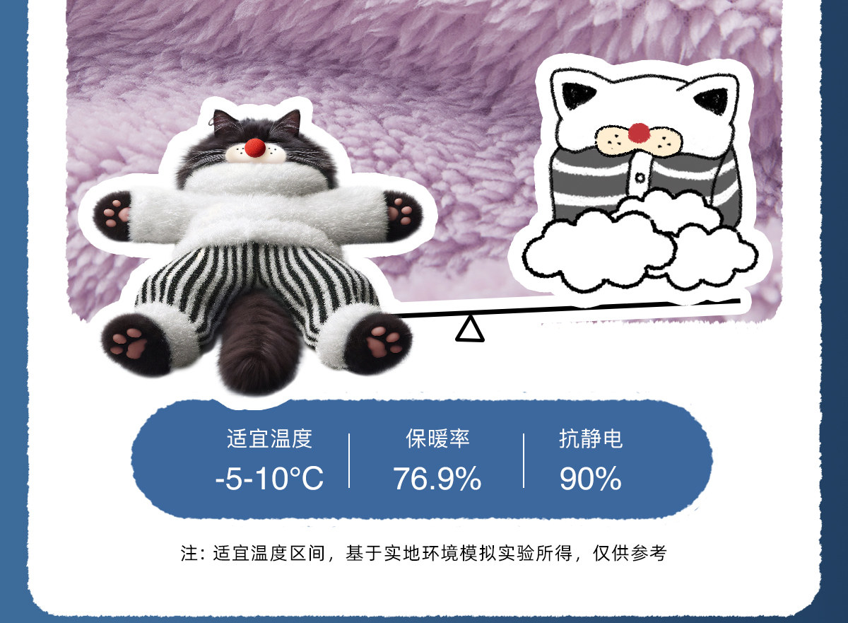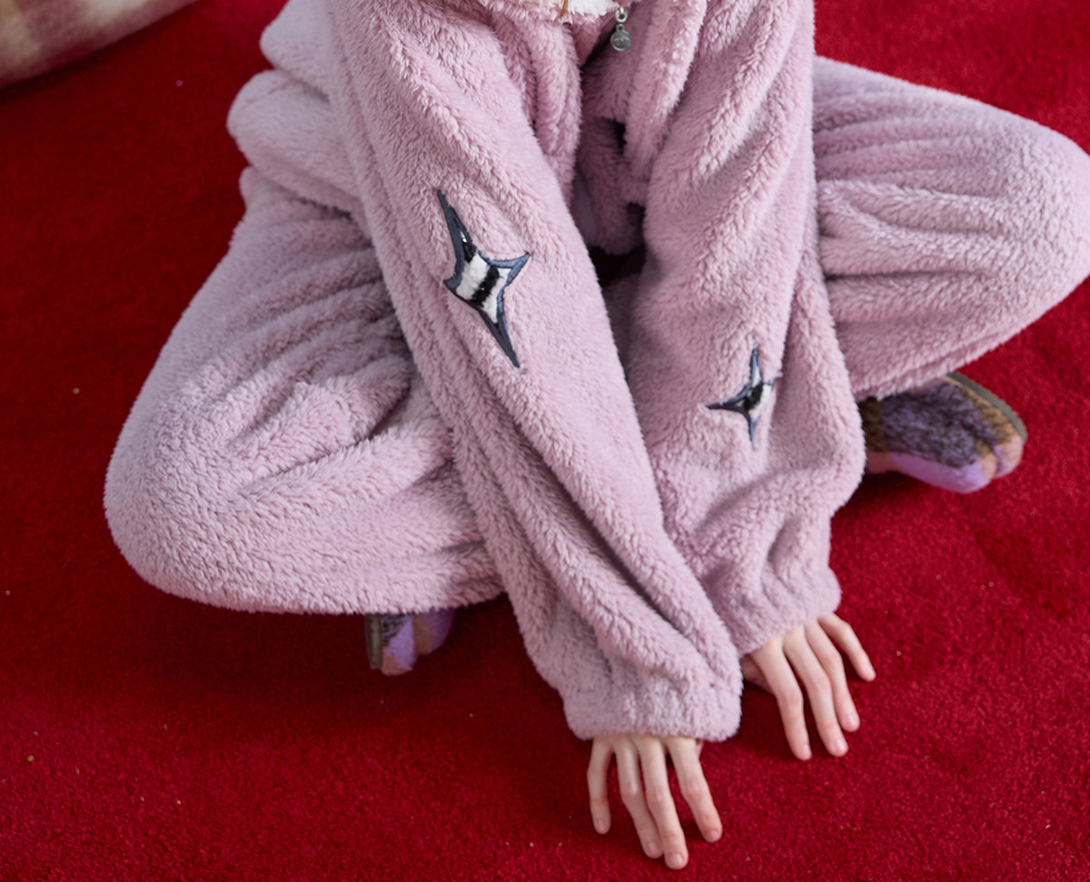yso【酷猫系列】睡衣女冬季套装雪尼尔新款半边绒睡衣卡通家居服D