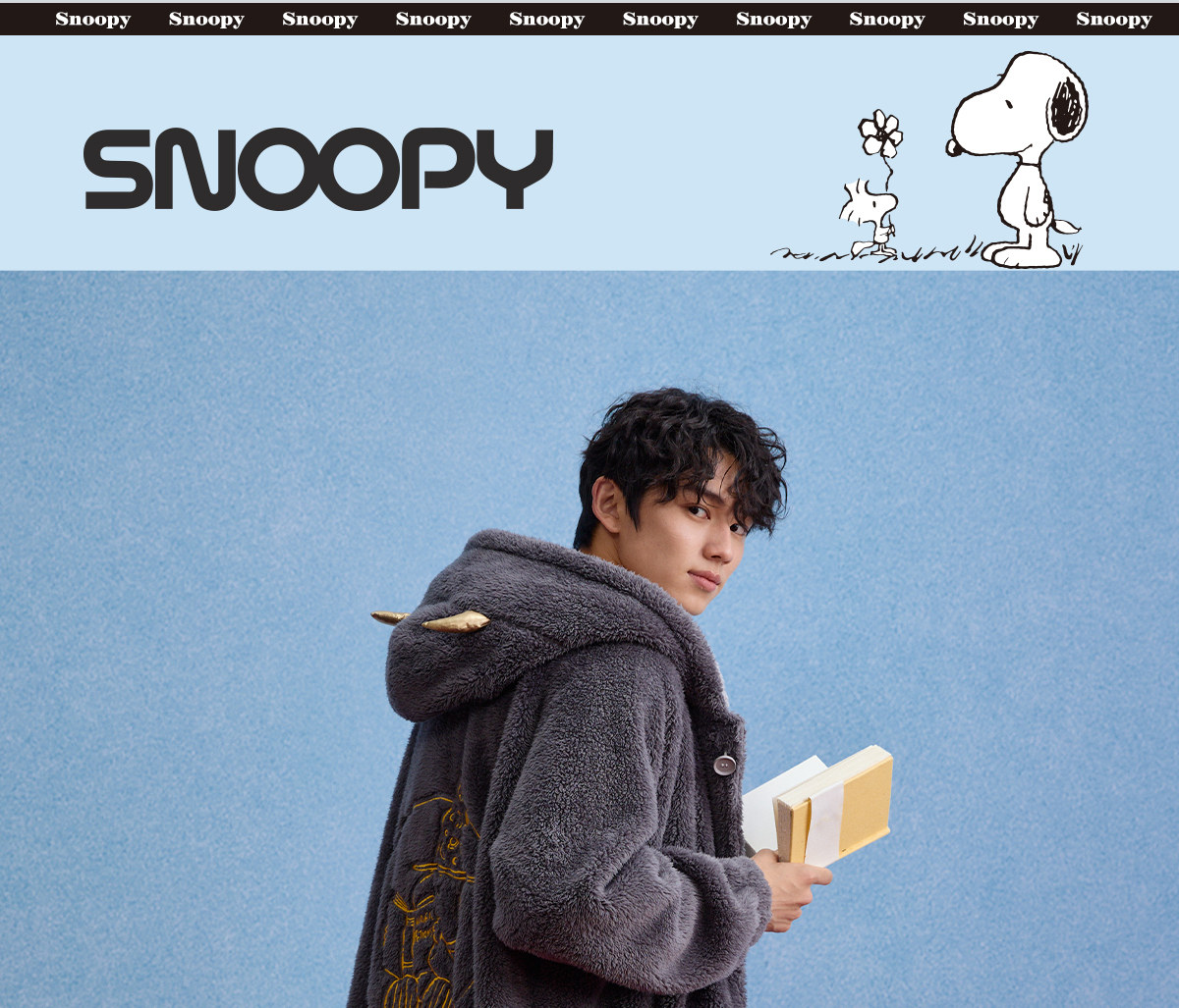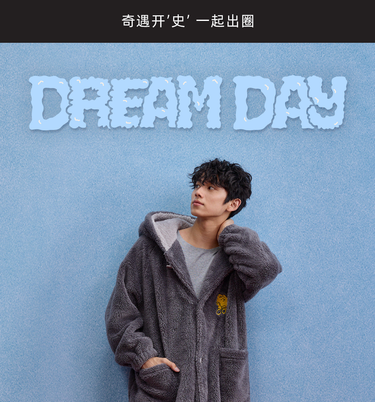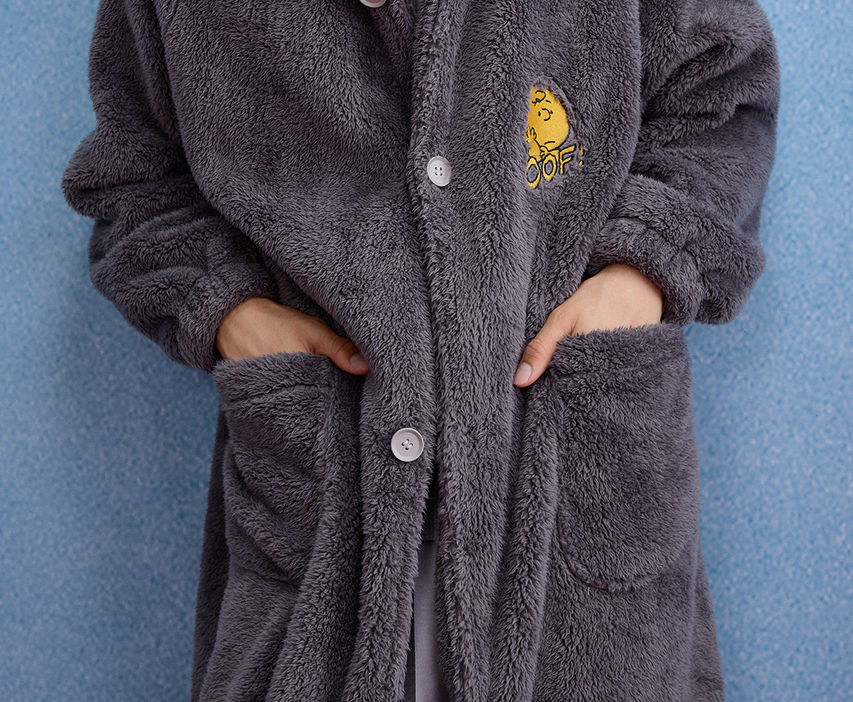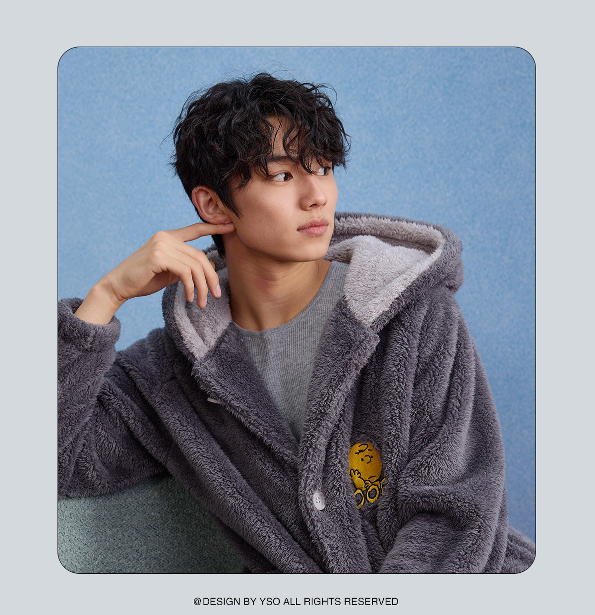 yso【史努比系列】睡袍男秋冬珊瑚绒长款睡衣休闲可外穿男家居服D
