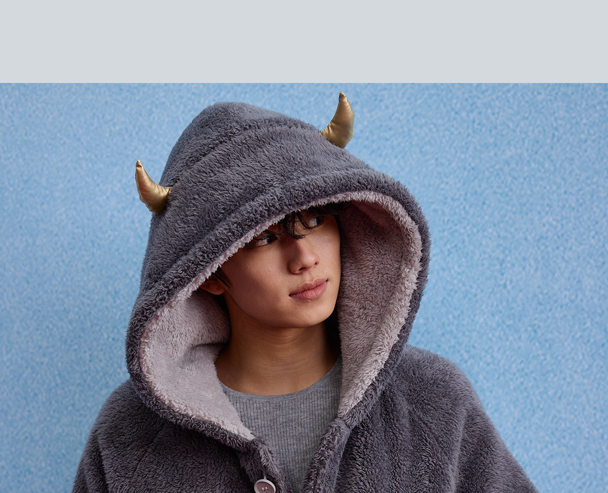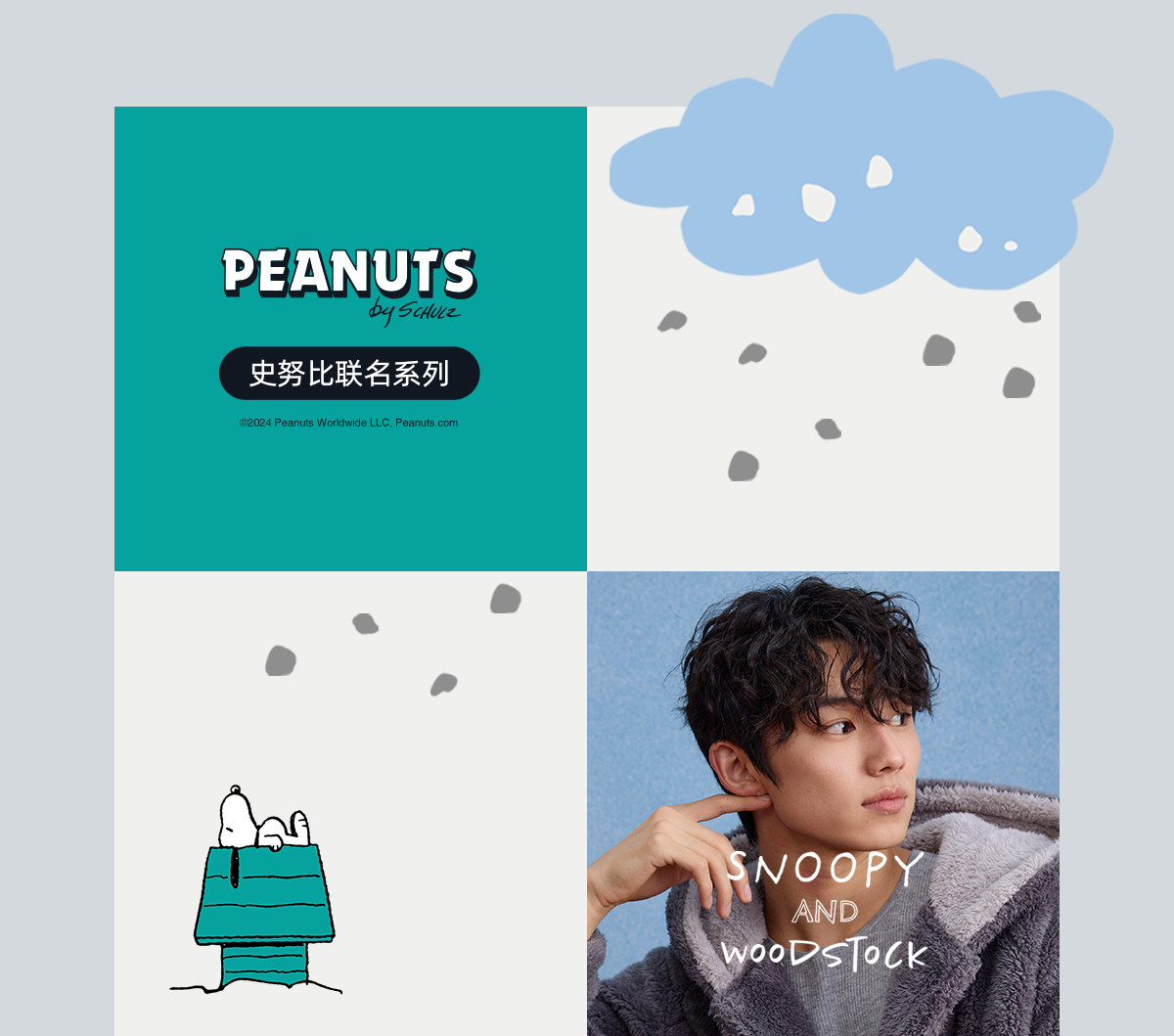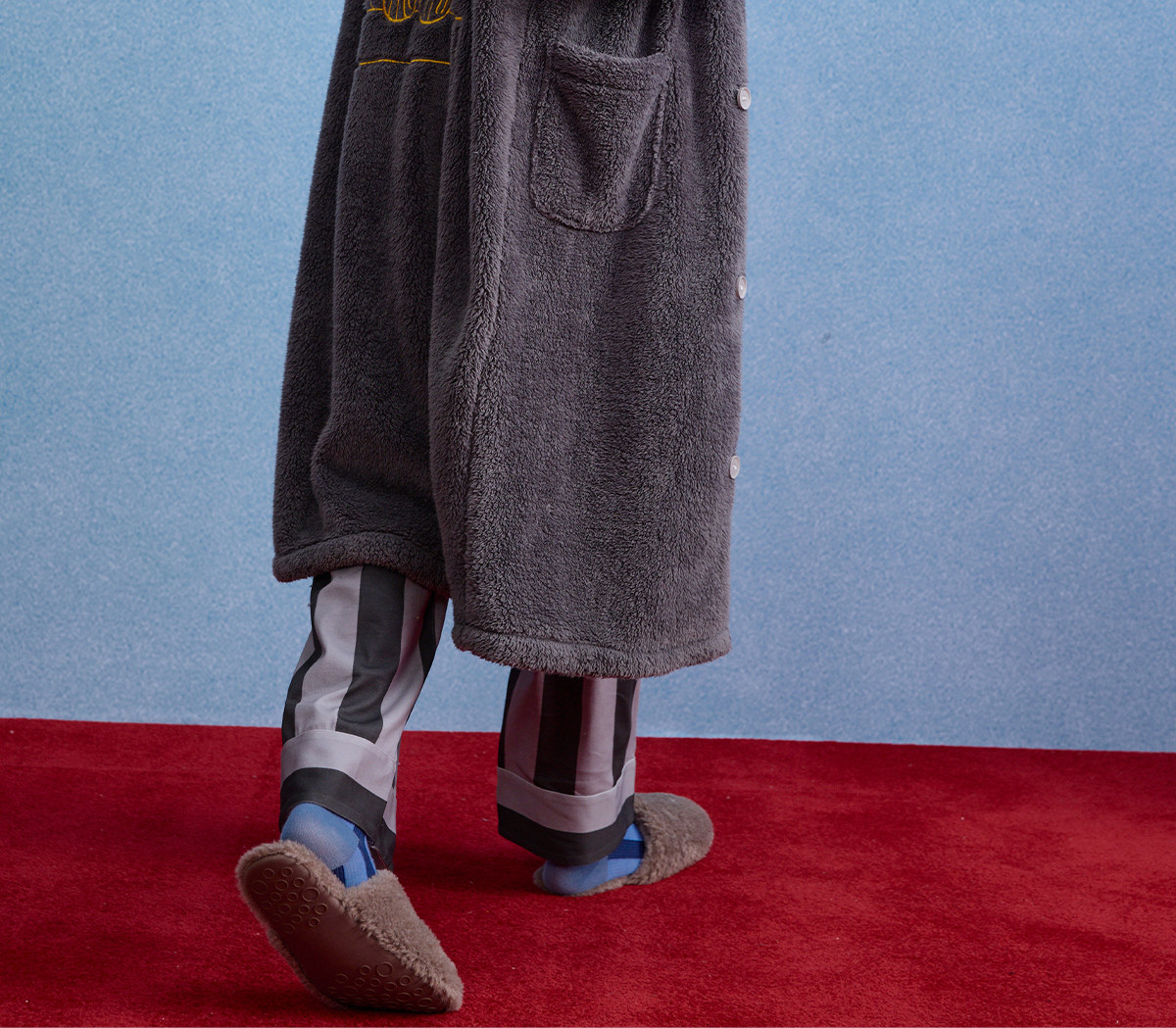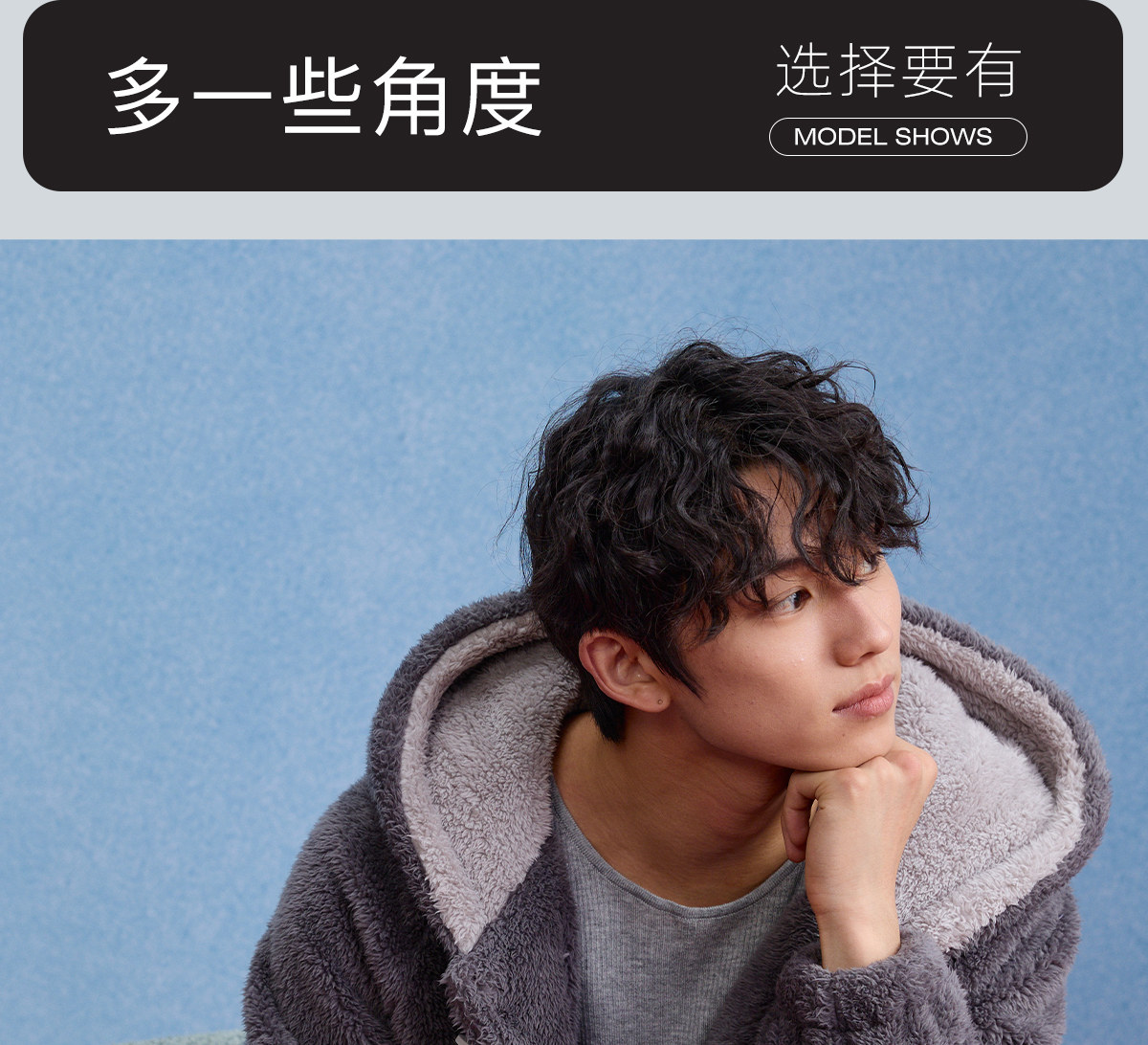 yso【史努比系列】睡袍男秋冬珊瑚绒长款睡衣休闲可外穿男家居服D