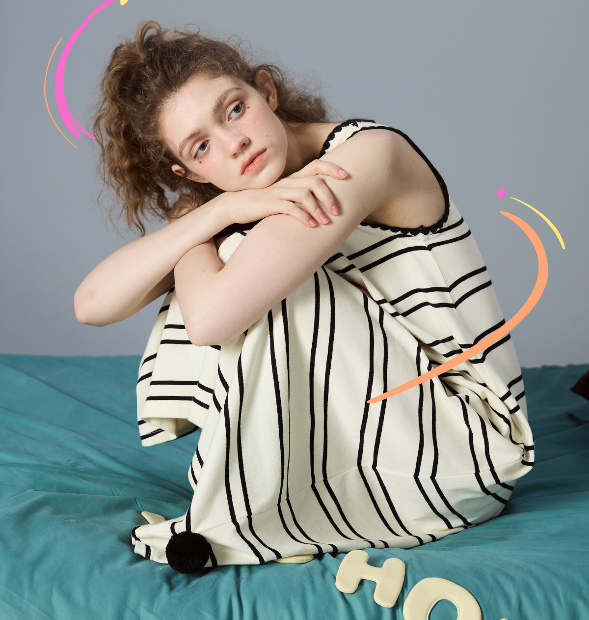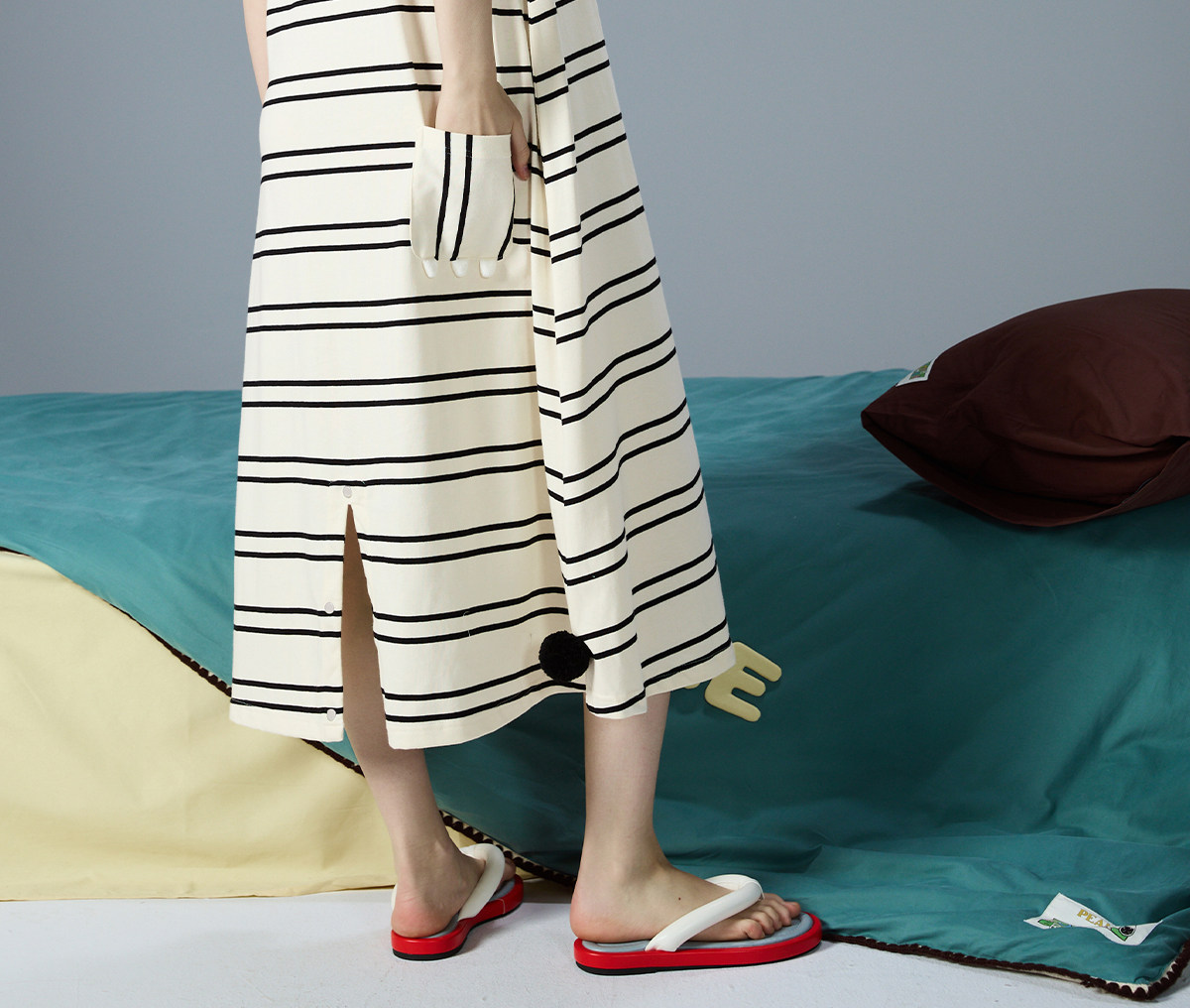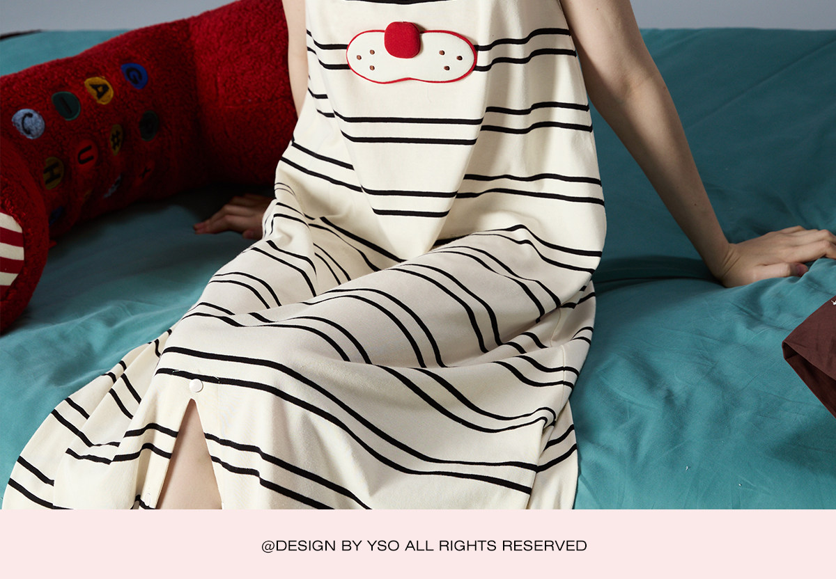 yso【酷猫系列】睡裙女秋冬高级感条纹半边绒长款睡衣女家居服D