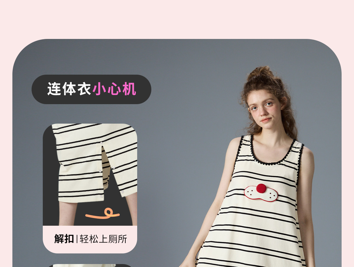 yso【酷猫系列】夏季连体女可爱猫鼻子条纹睡衣家居服可外穿B