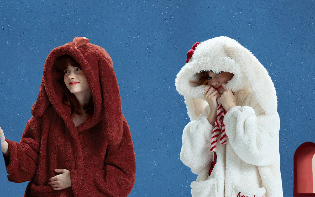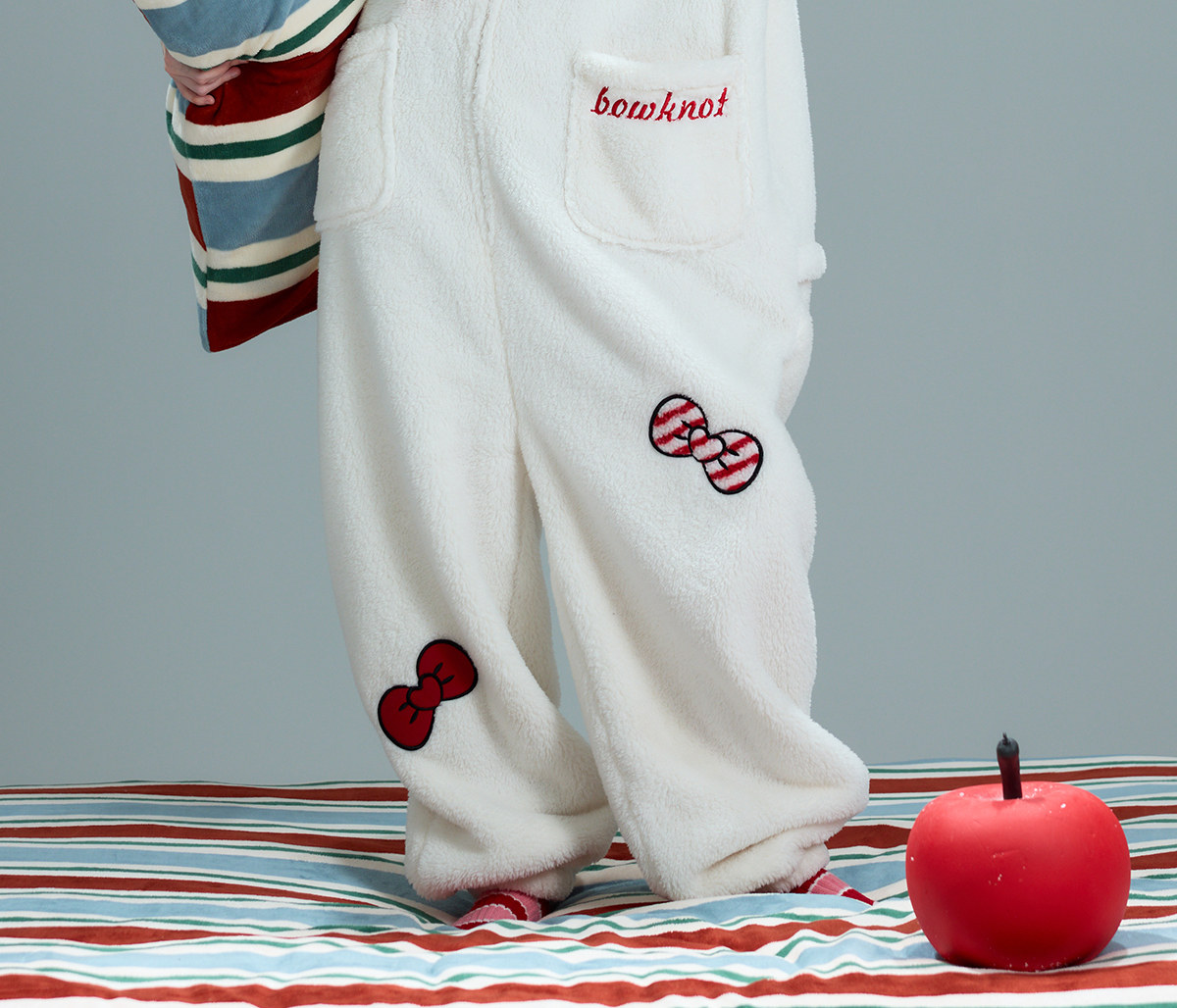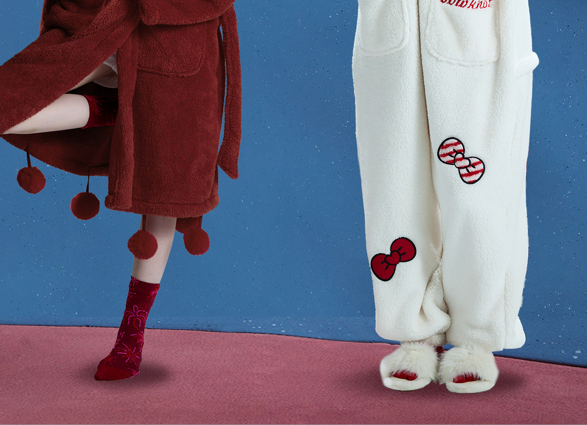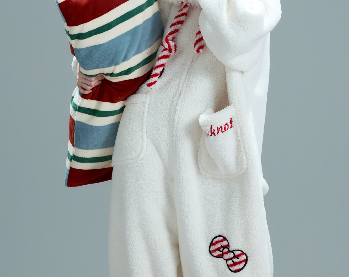 yso【礼物系列】连体睡衣女冬季珊瑚绒家居服新年红色过年家居服D