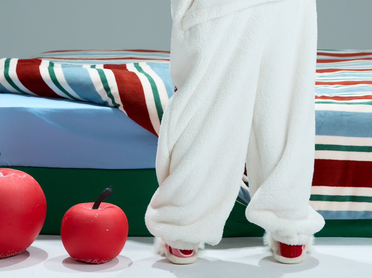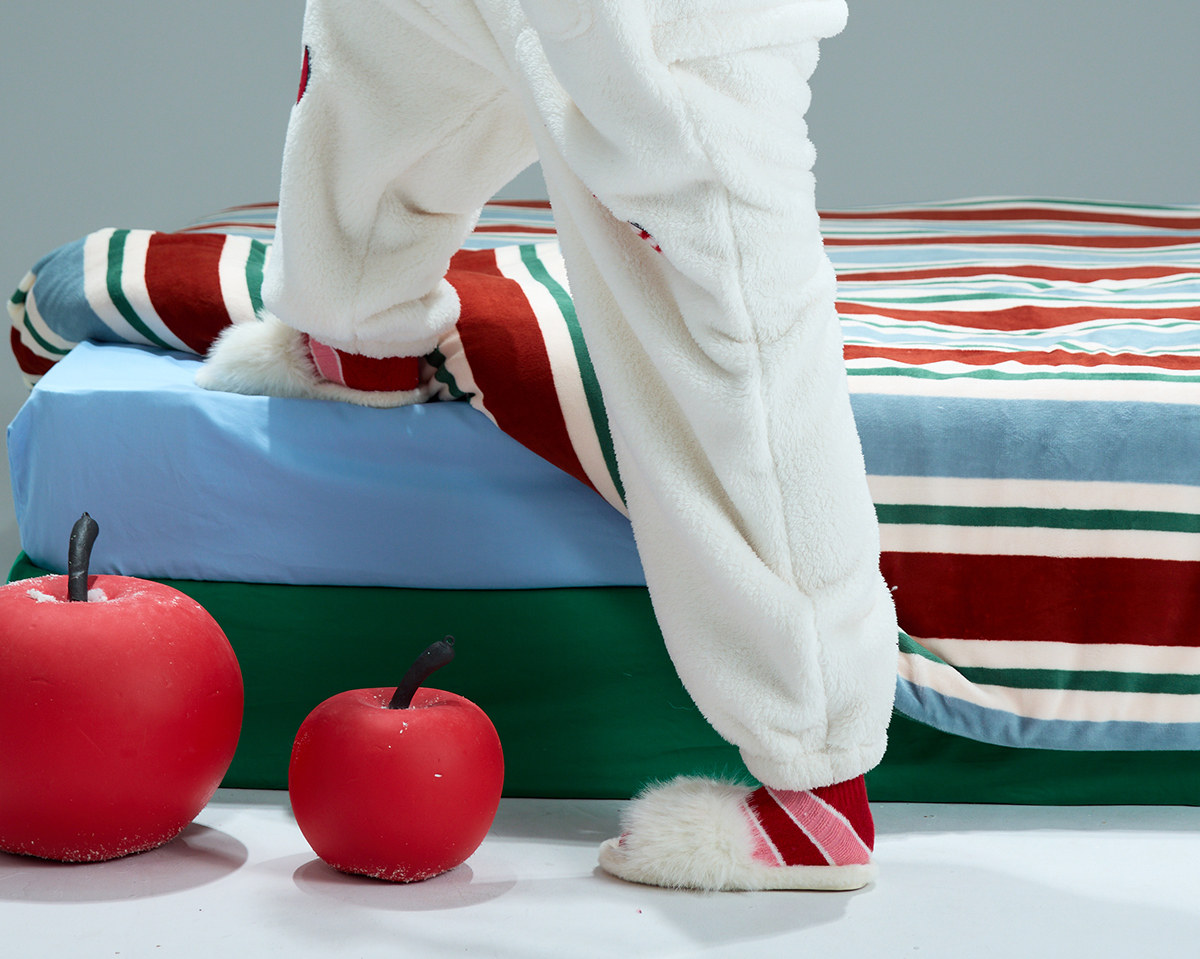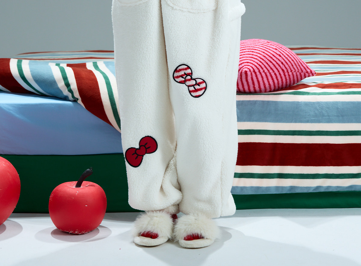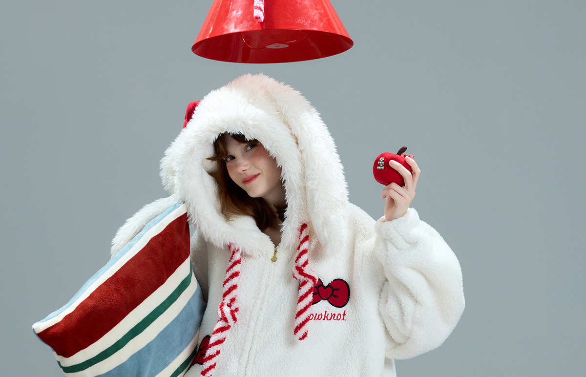yso【礼物系列】连体睡衣女冬季珊瑚绒家居服新年红色过年家居服D