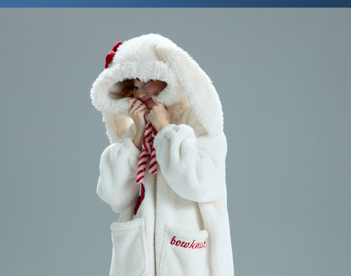 【立体耳朵连帽】男童睡衣秋冬加厚北极绒家居服套装可外穿