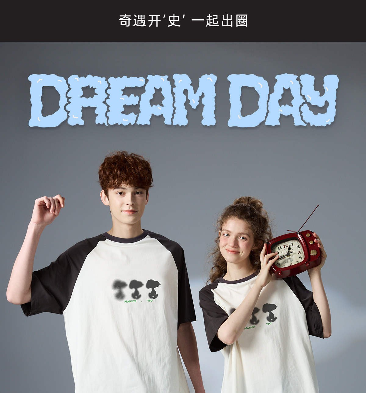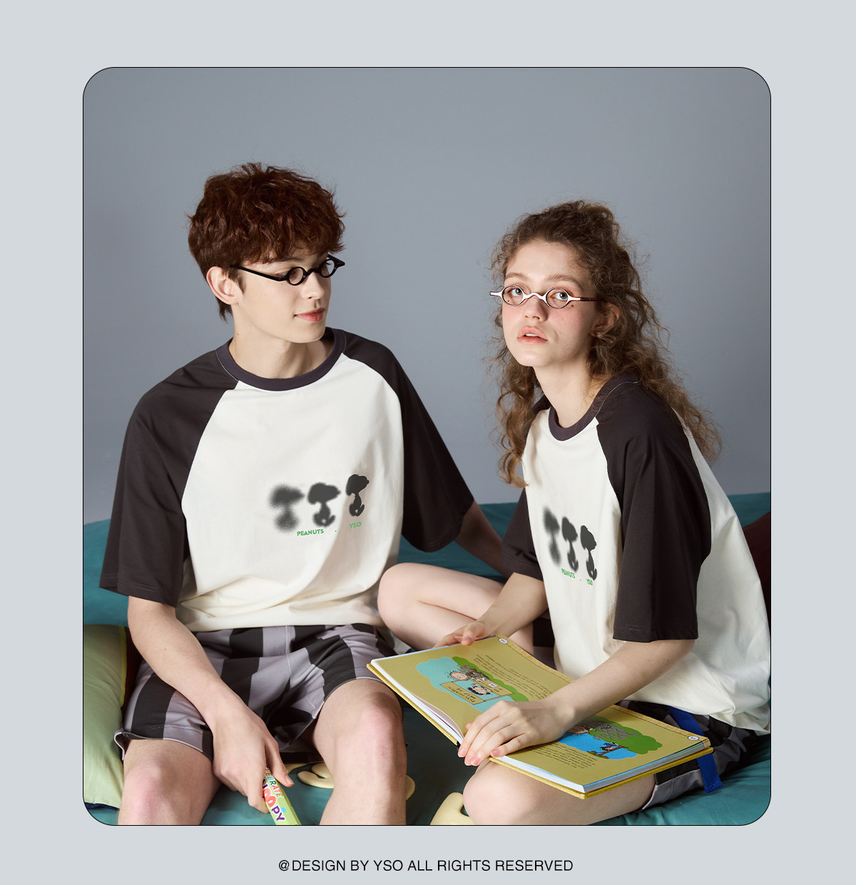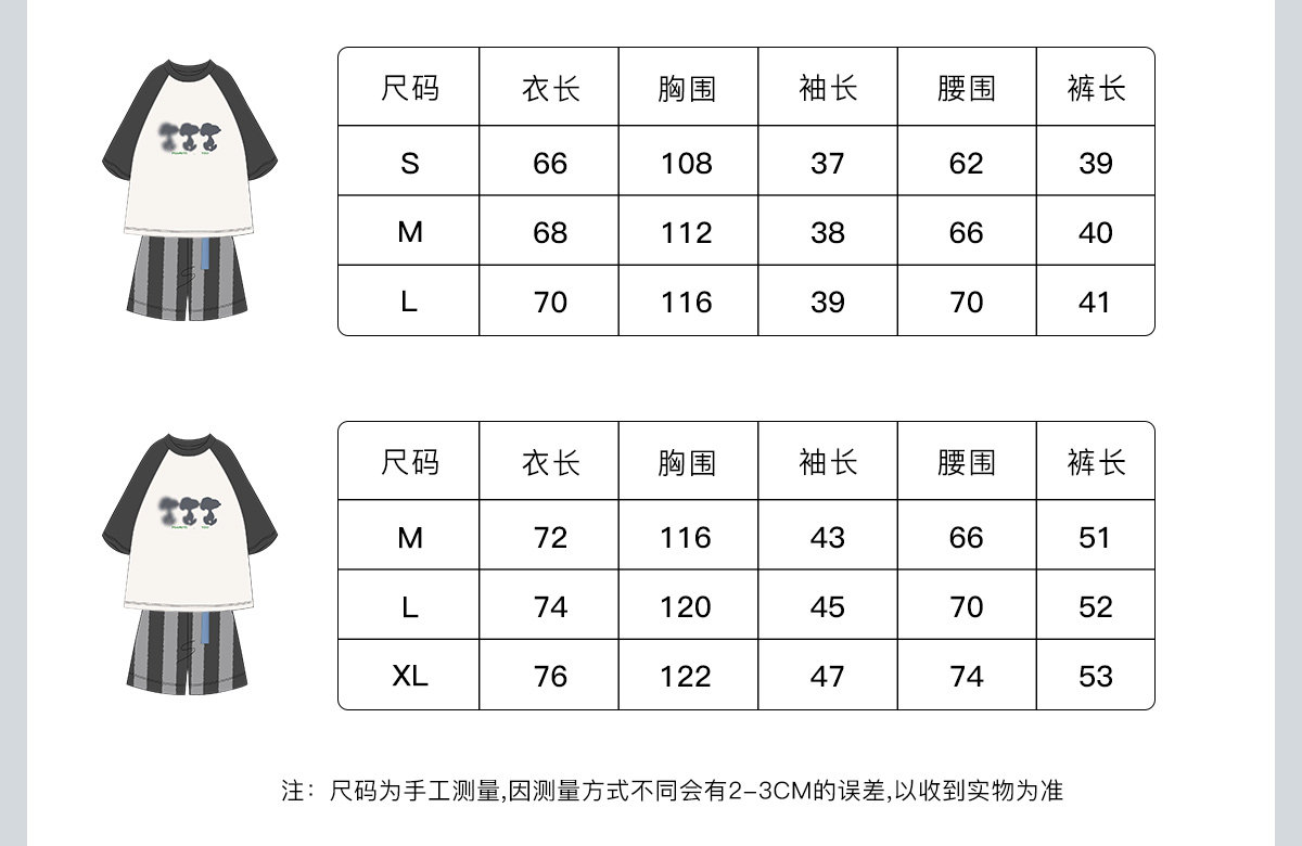 yso【史努比系列】情侣睡衣套装女短袖短裤纯棉男家居服可外穿B