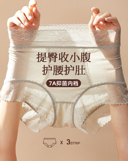 【7A抑菌纯棉裆底】3条装四季高腰提臀内裤女收小肚子收腹裤