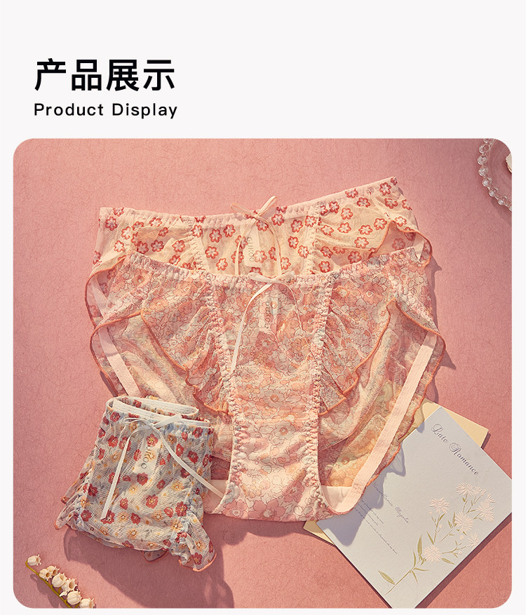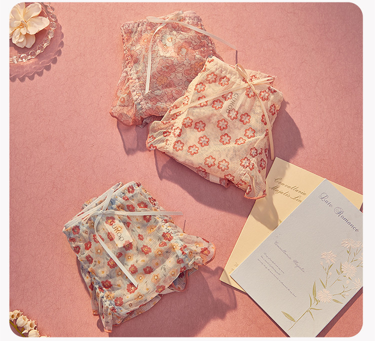【含聚乳酸抑菌档】3条装内裤女四季网纱性感小碎花满印女士内裤