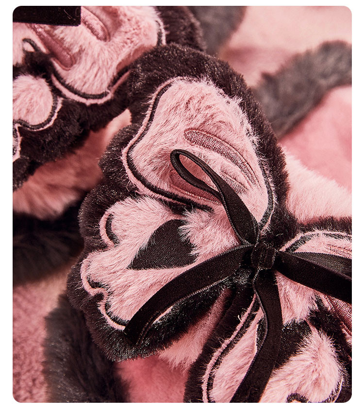 果壳(Gukoo)睡衣女秋冬季珊瑚绒薄绒甜美可爱保暖蝴蝶结家居服撞色睡袍女