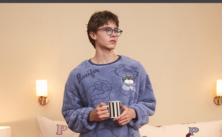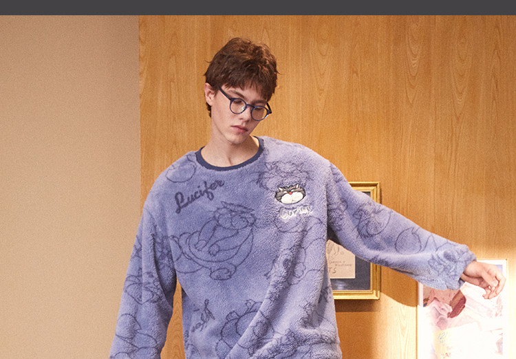 【路西法联名】男士睡衣冬季加厚北极绒柔软卡通家居服套装可外穿