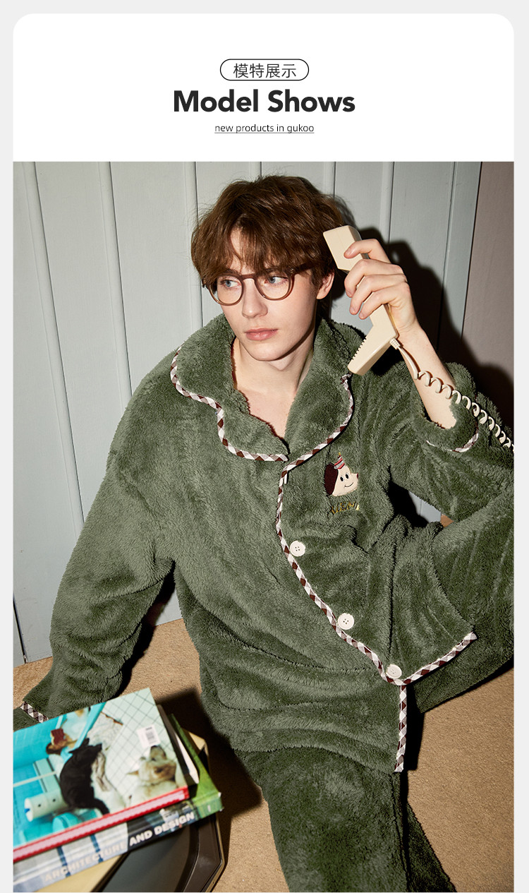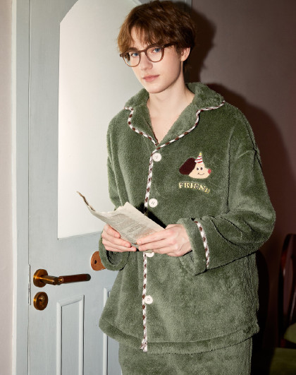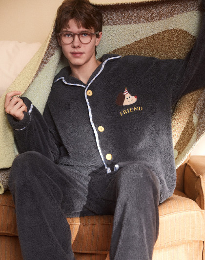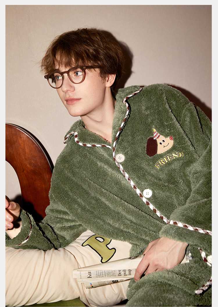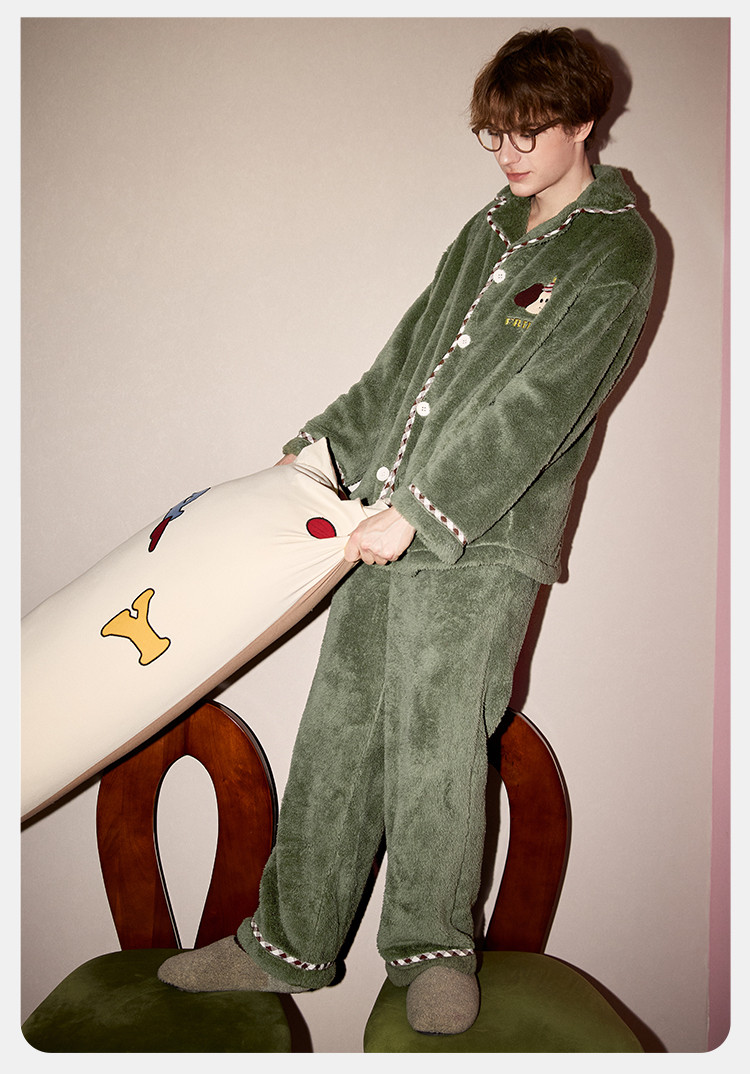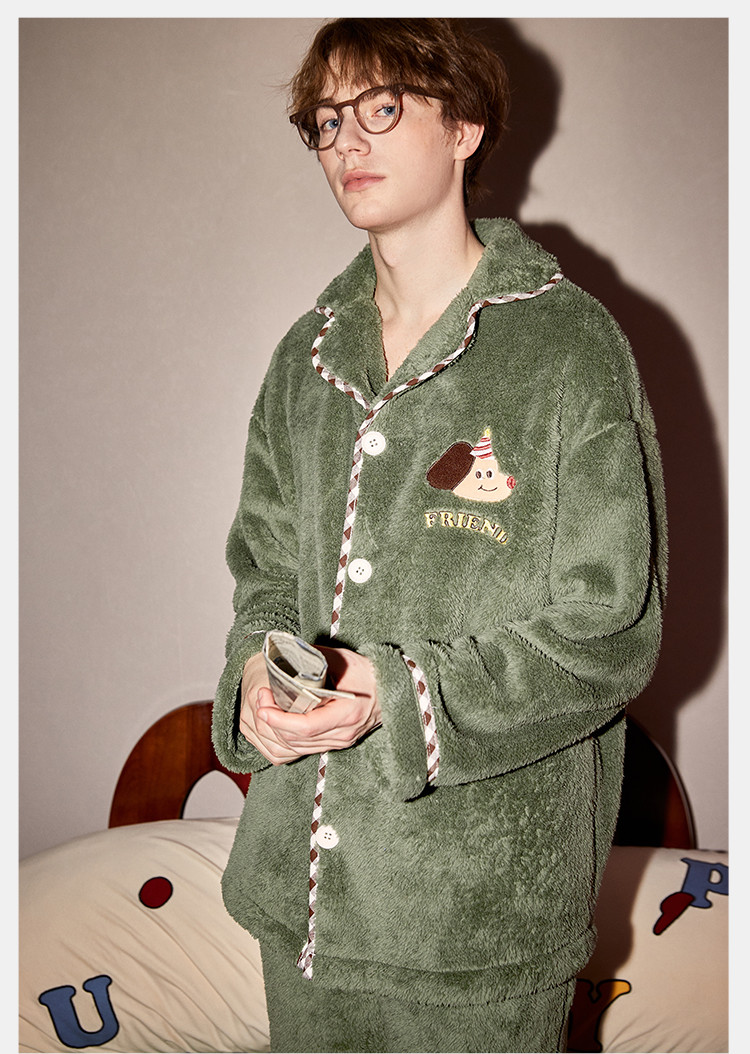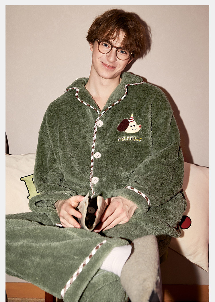 【原创派对小狗】睡衣男士冬季长袖简约可外穿加绒加厚家居服套装