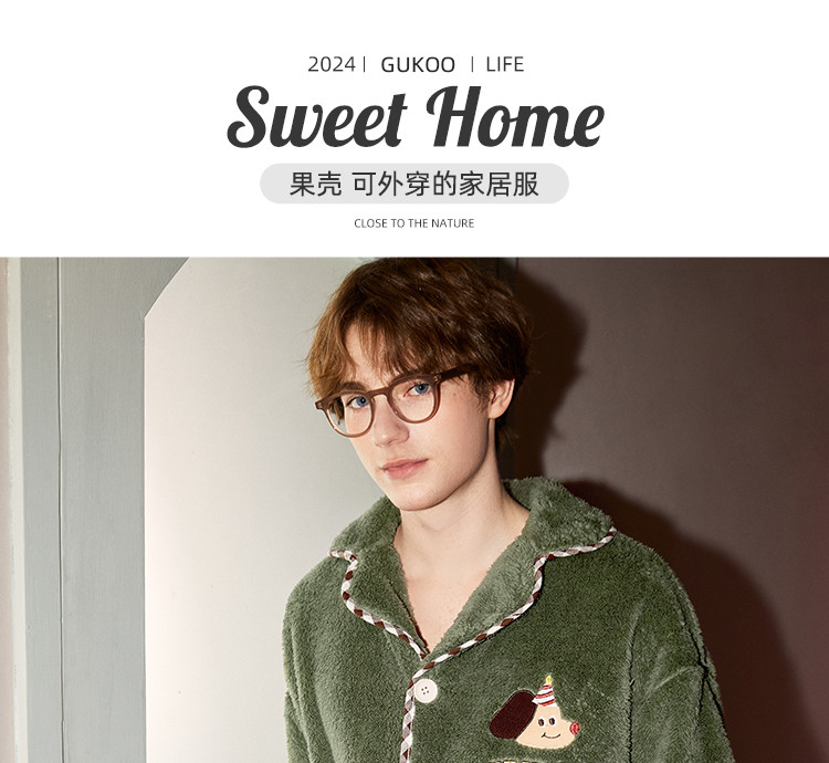 GUKOO/果壳女夹棉保暖睡衣套装冬