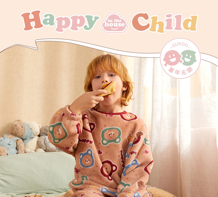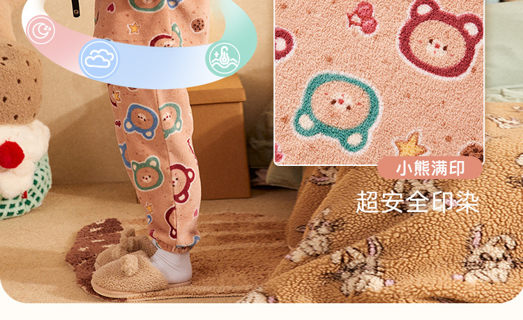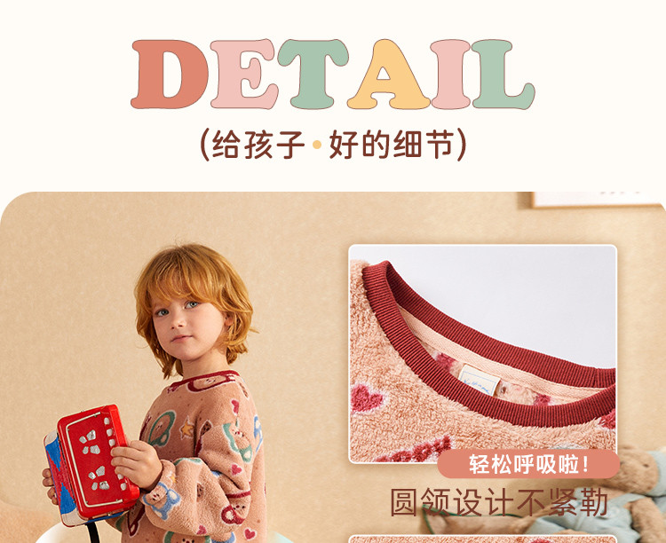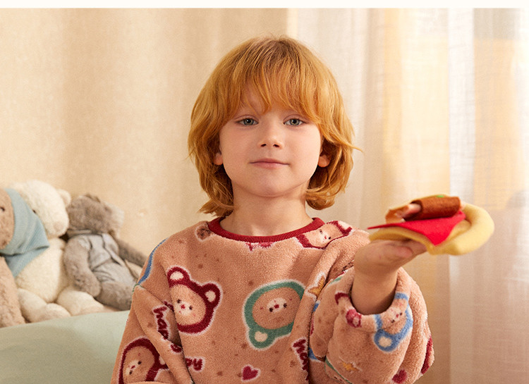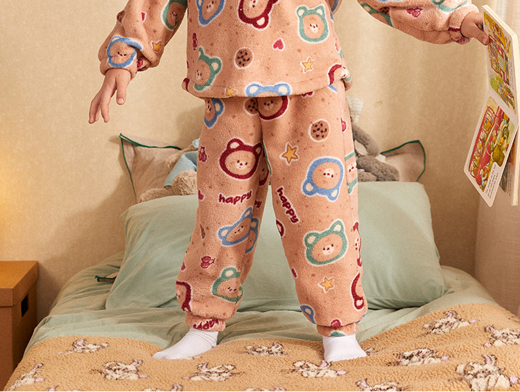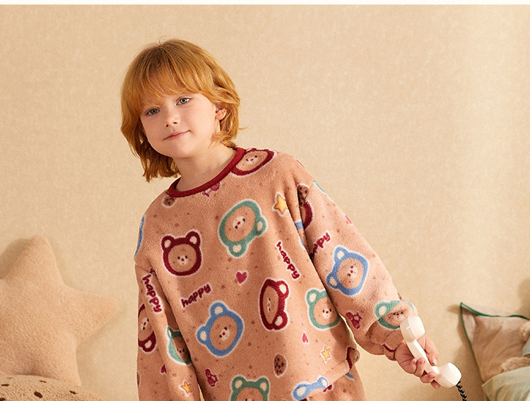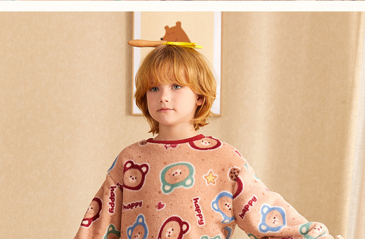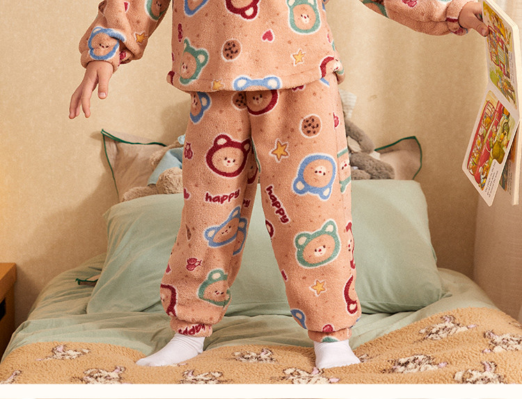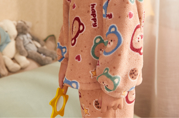 【童趣小熊系列】睡衣男童秋冬珊瑚绒保暖舒适儿童家居服套装外穿