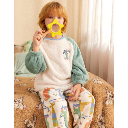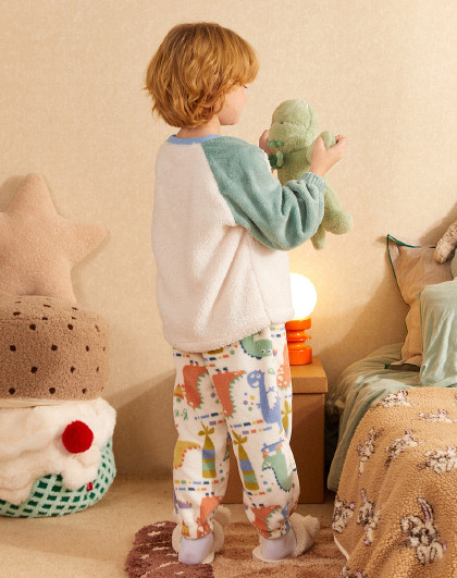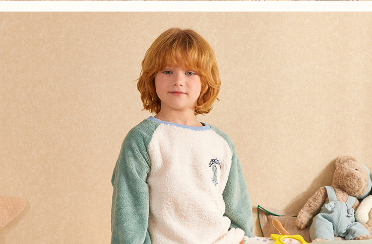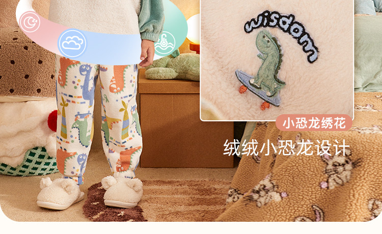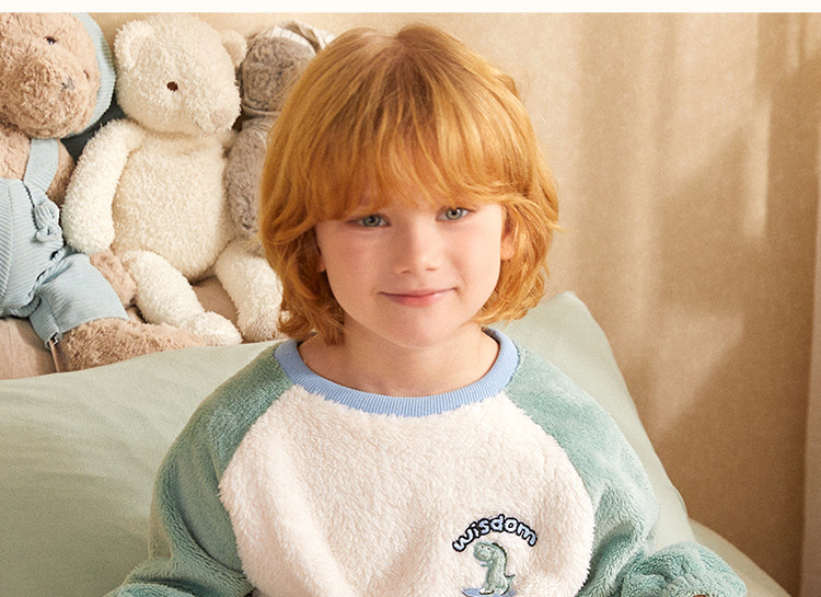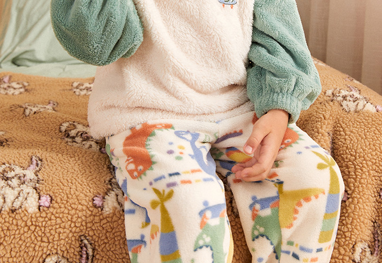 【童趣系列】睡衣男童冬季加厚款珊瑚绒保暖柔软家居服套装可外穿