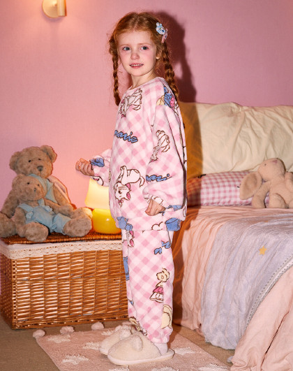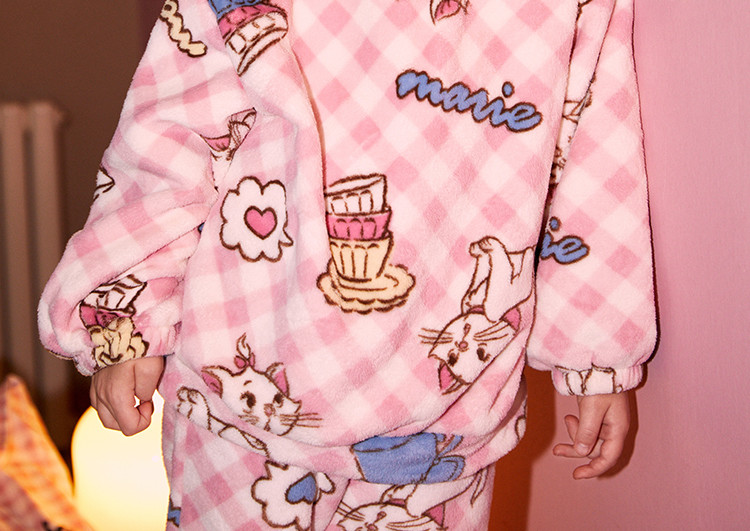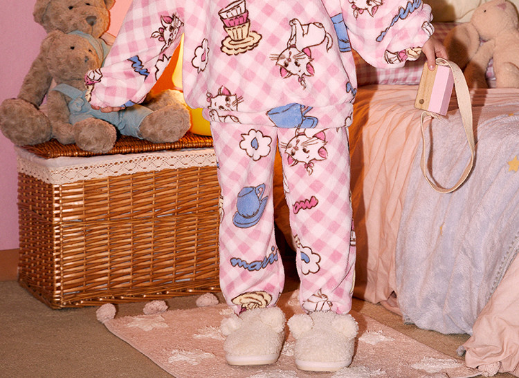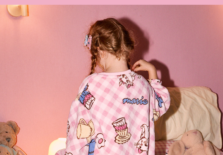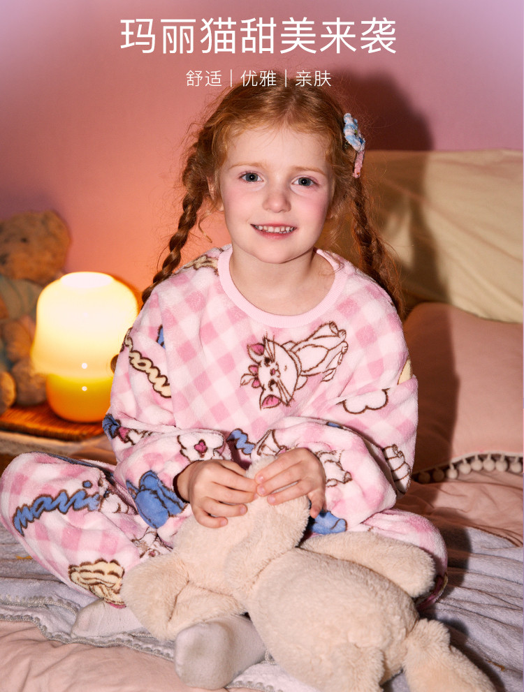 【玛丽猫联名】女童睡衣秋冬双面牛奶绒卡通满印家居服套装可外穿