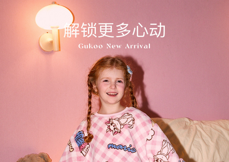 Gukoo/果壳睡袍女童冬季蓝色新款毛绒保暖可爱儿童家居服睡袍D