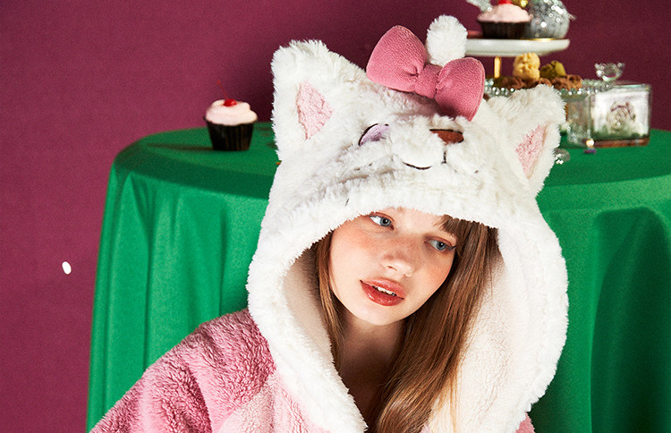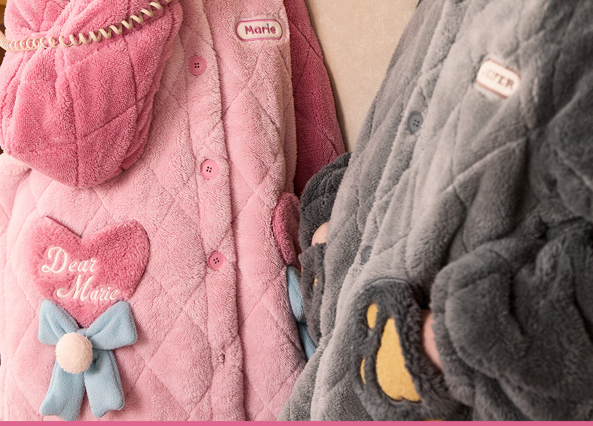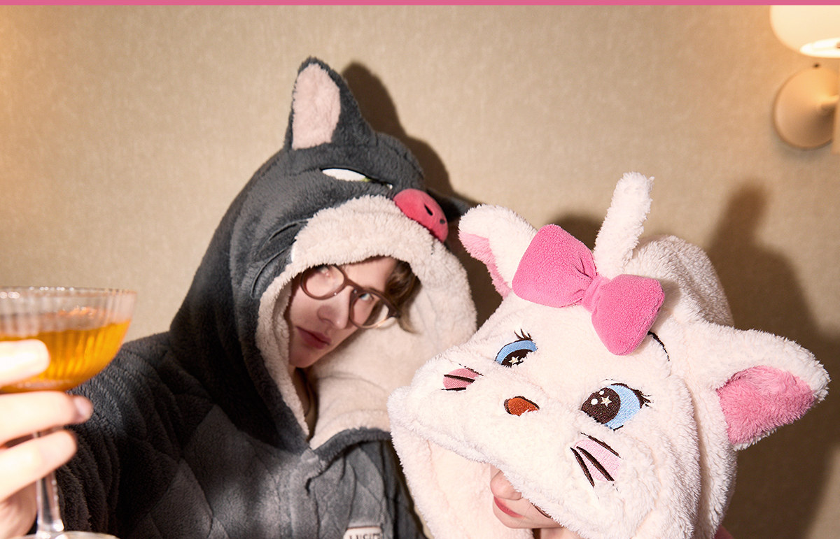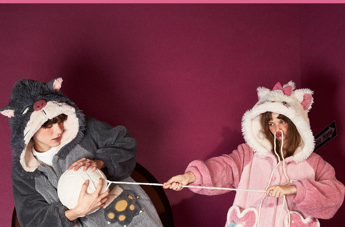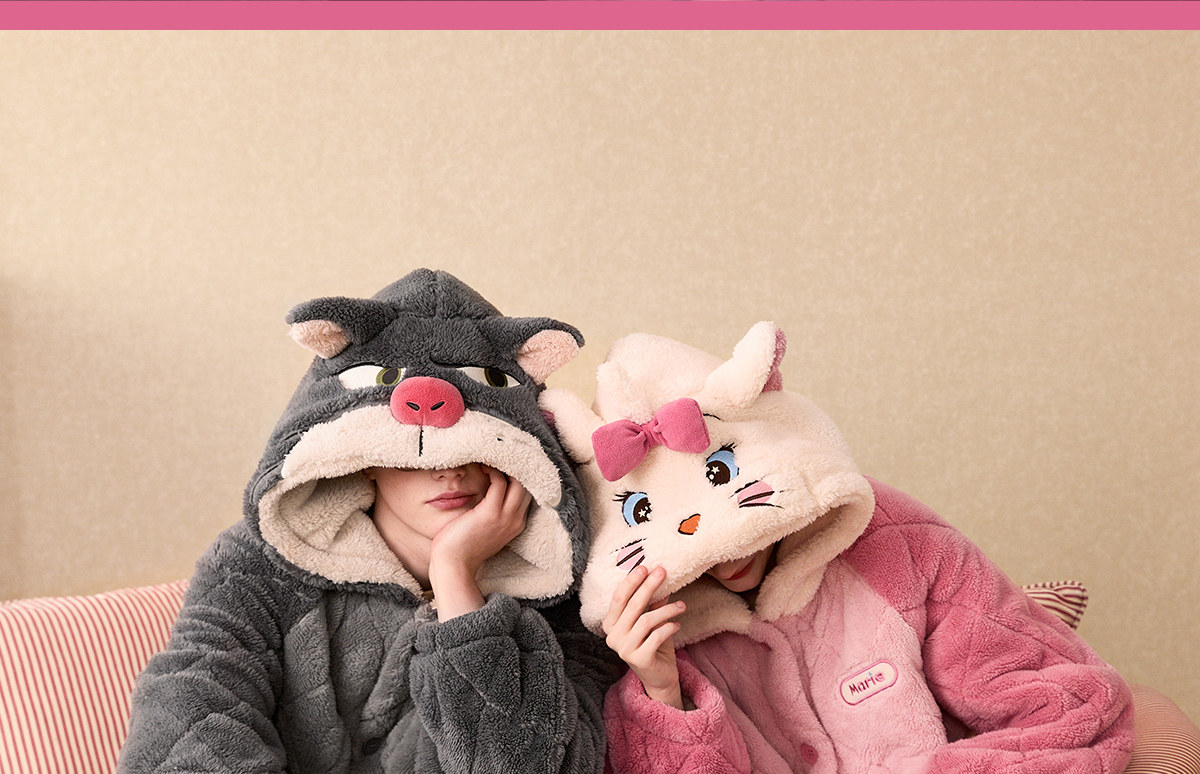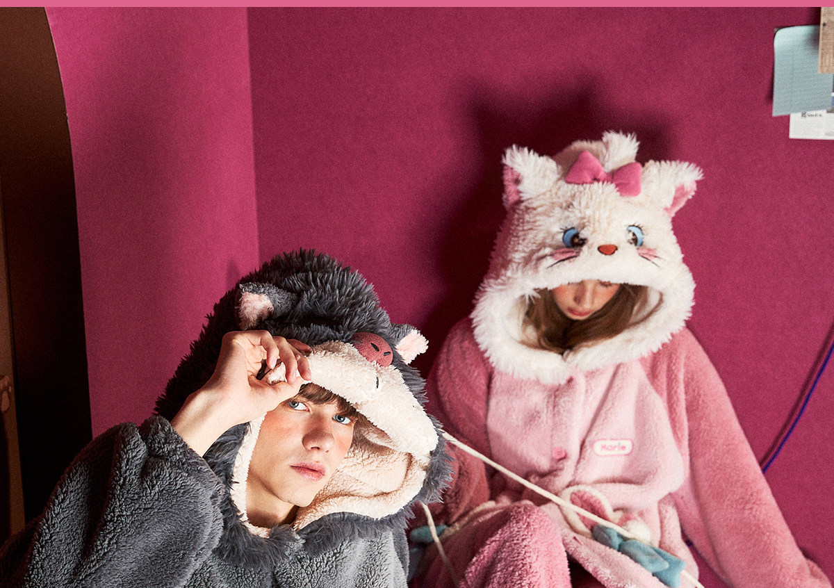 果壳玛丽猫睡衣情侣睡袍女冬季睡衣男新款珊瑚绒浴袍女冬家居服D