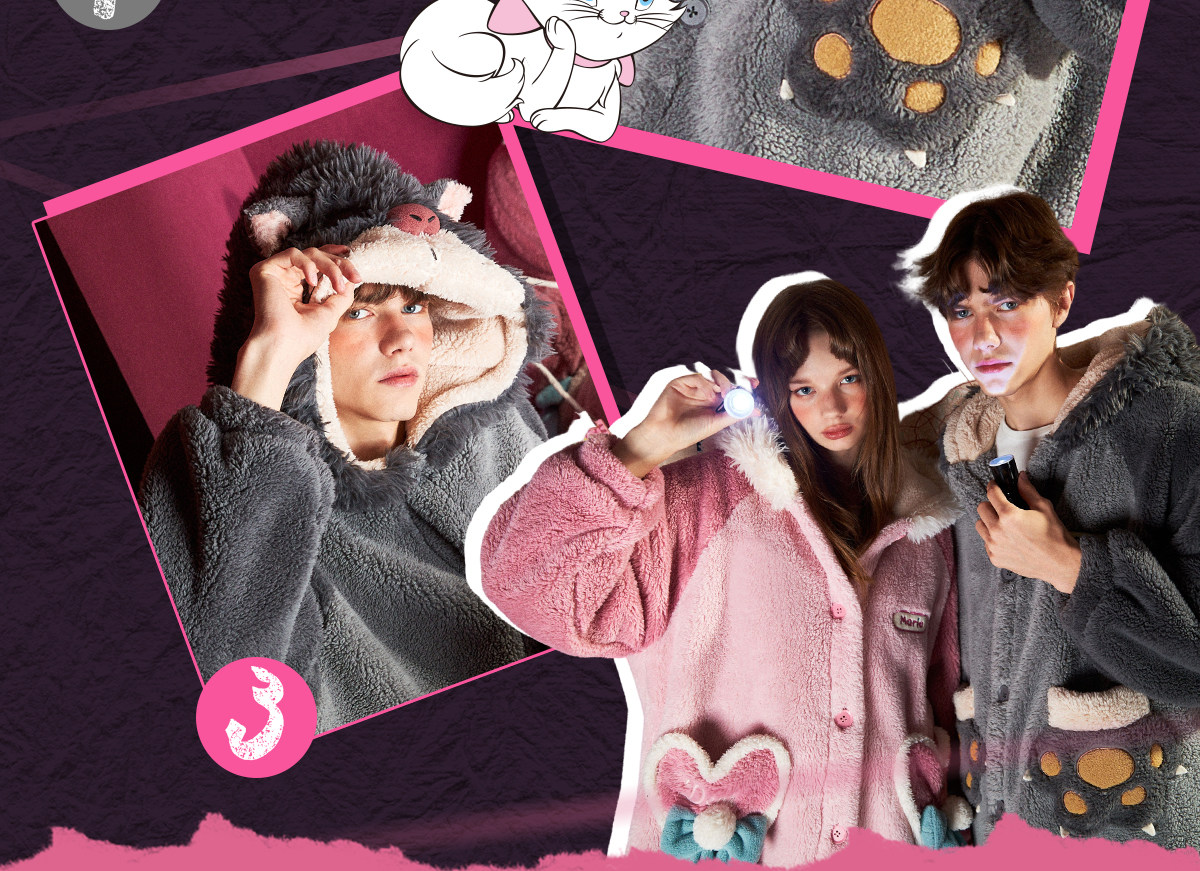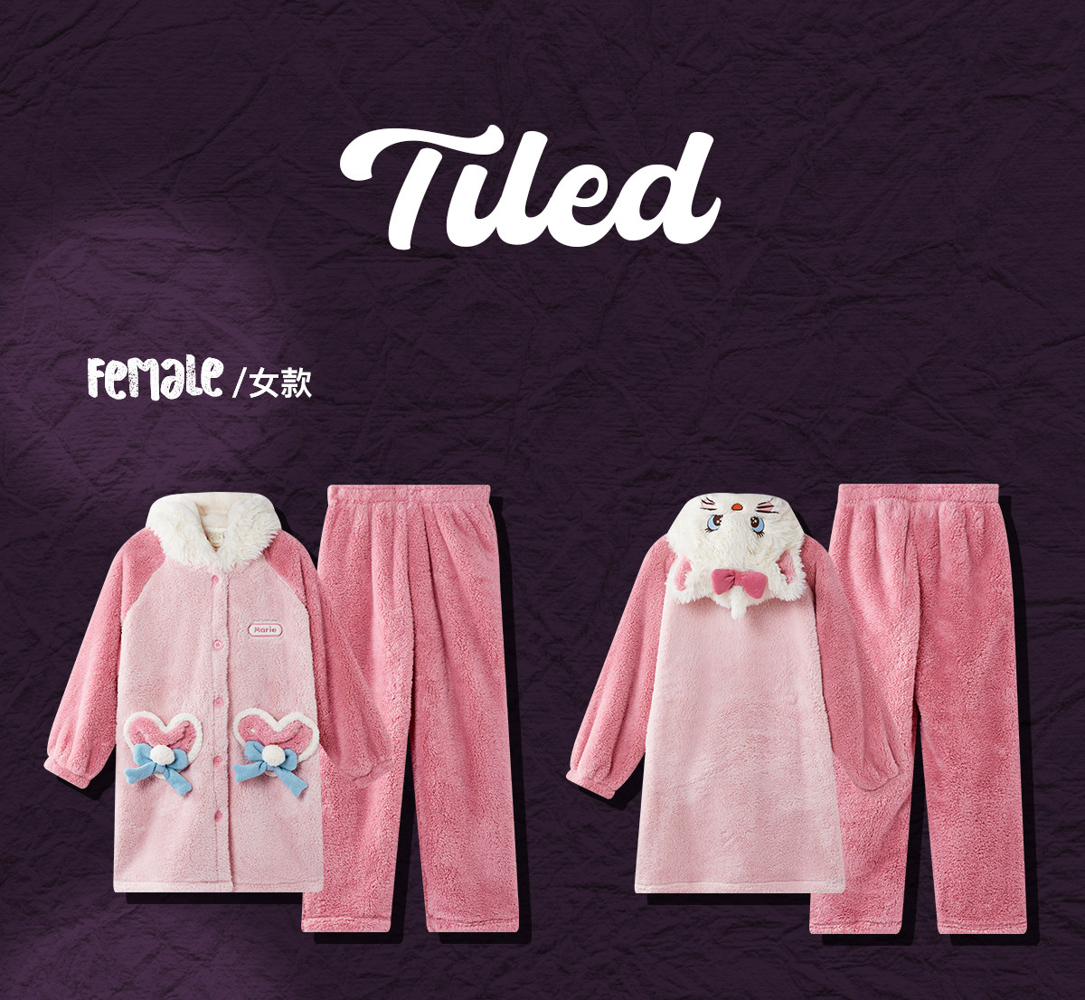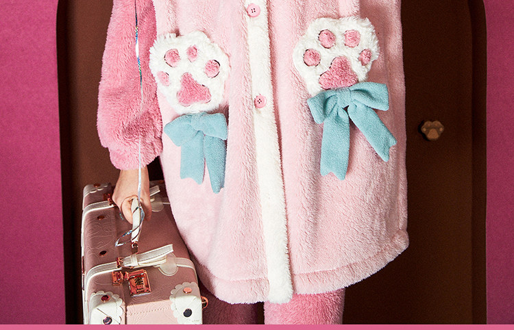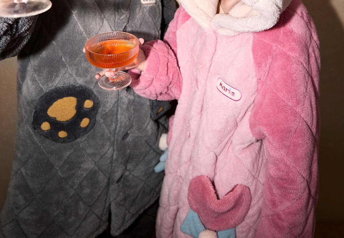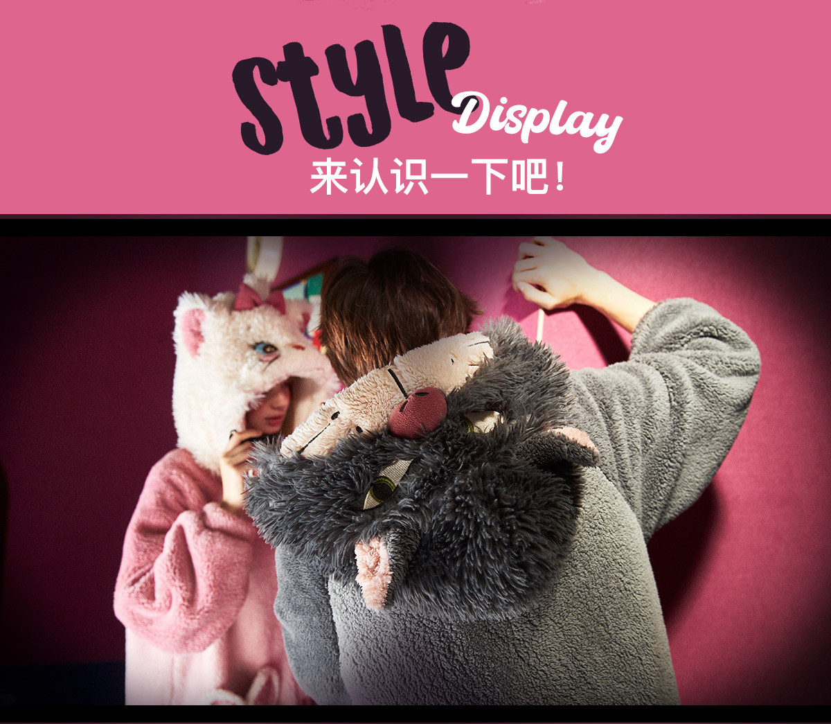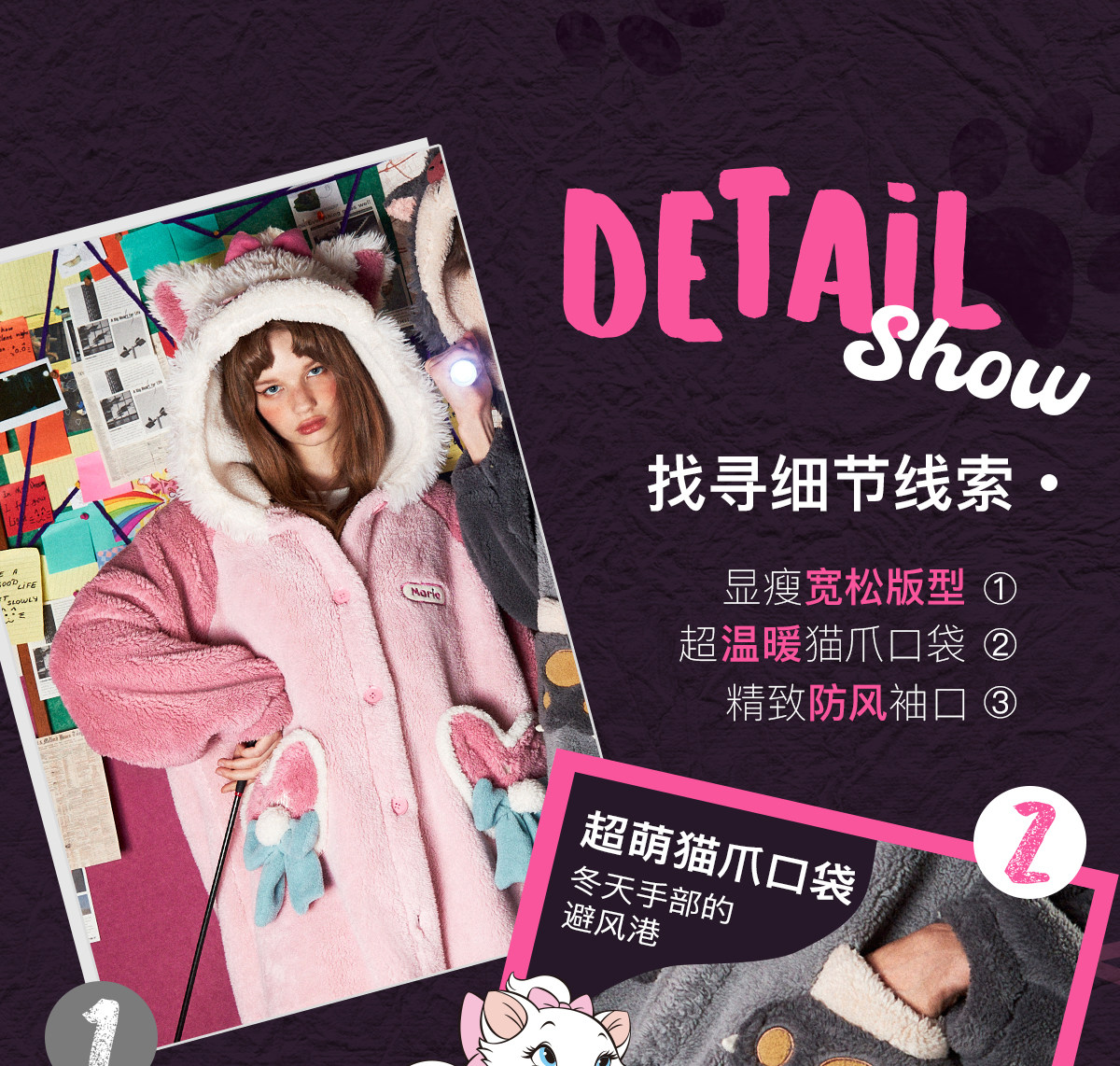 果壳玛丽猫睡衣情侣睡袍女冬季睡衣男新款珊瑚绒浴袍女冬家居服D