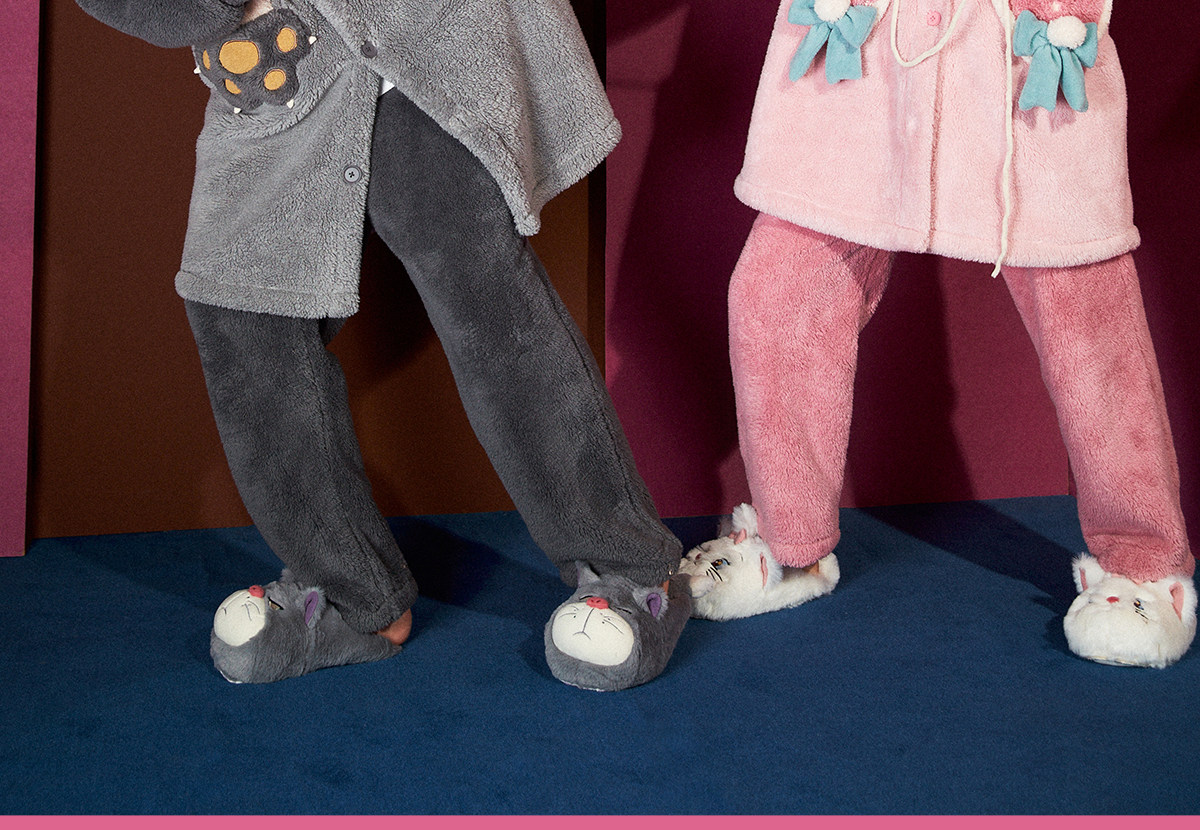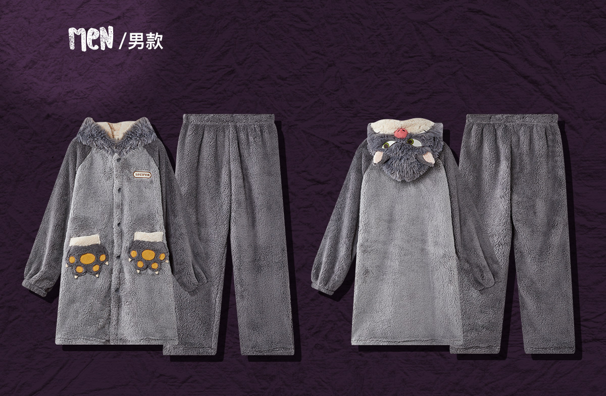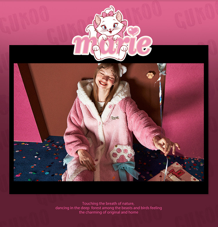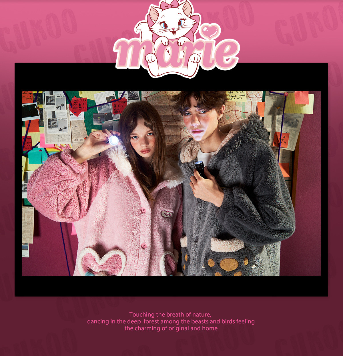 Gukoo/果壳情侣睡衣秋冬玛丽猫珊瑚绒男士家居服冬睡衣女冬套装D