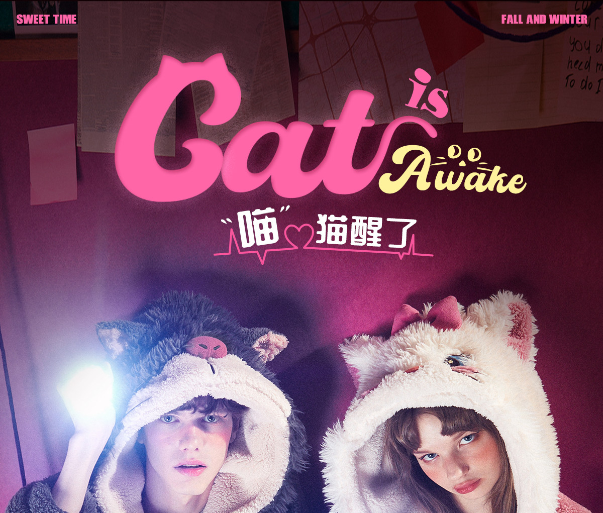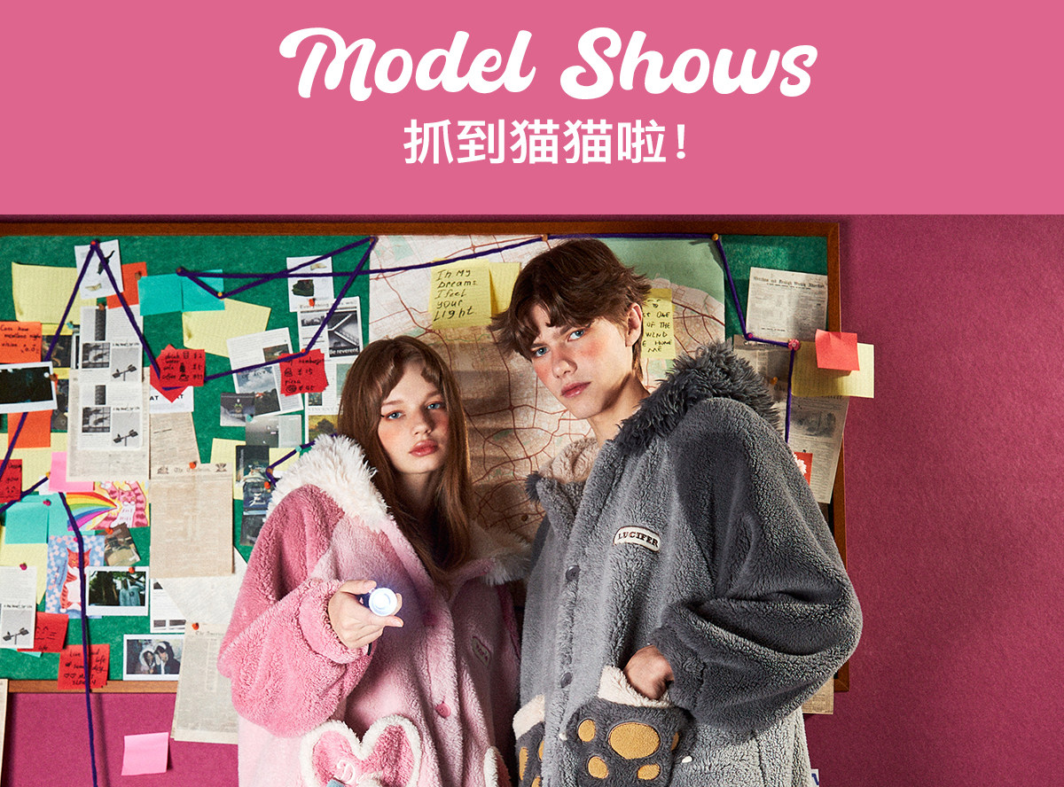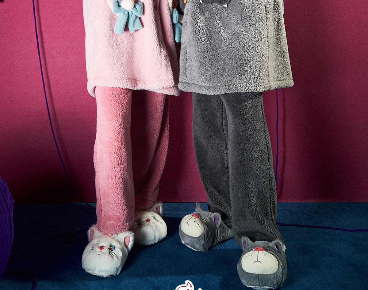 Gukoo/果壳情侣睡衣秋冬玛丽猫珊瑚绒男士家居服冬睡衣女冬套装D