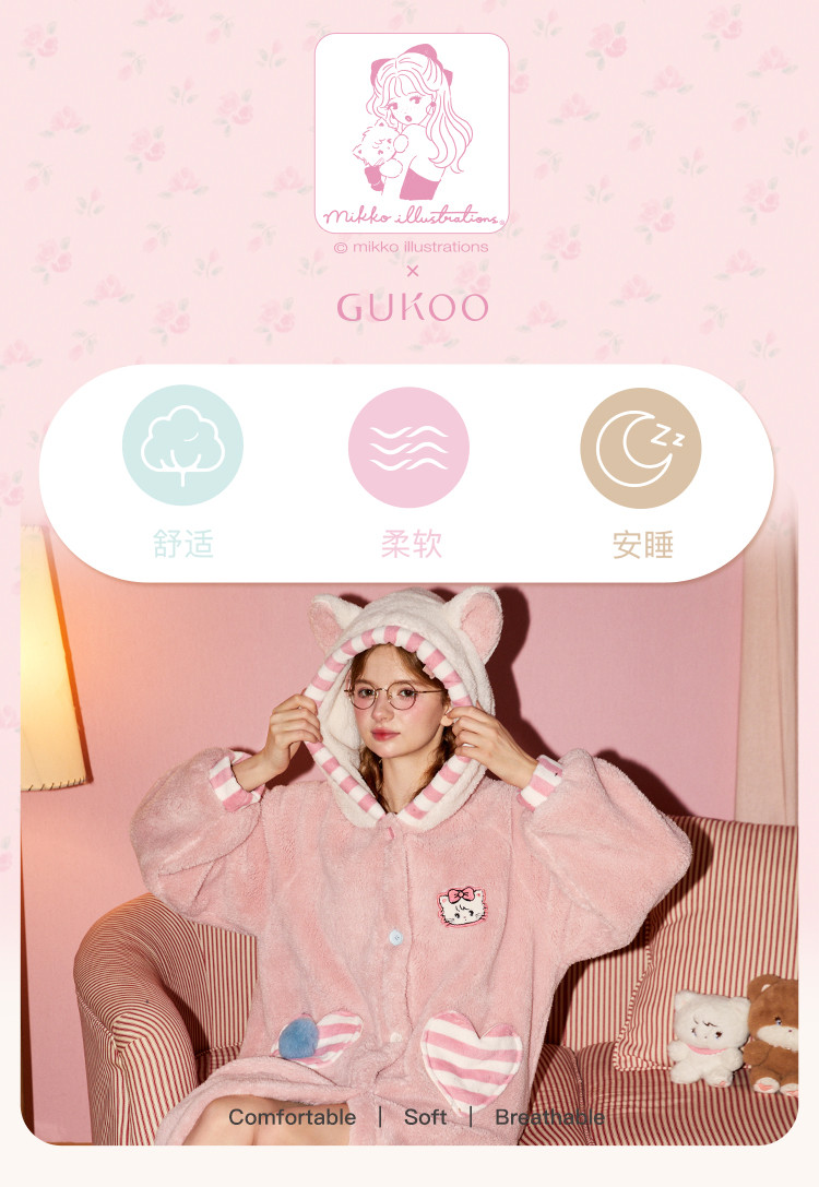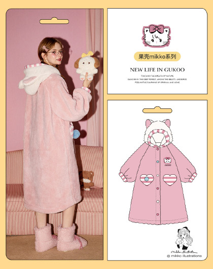 Gukoo/果壳2024新款睡衣女秋冬季mikko联名可爱睡袍家居服珊瑚绒D