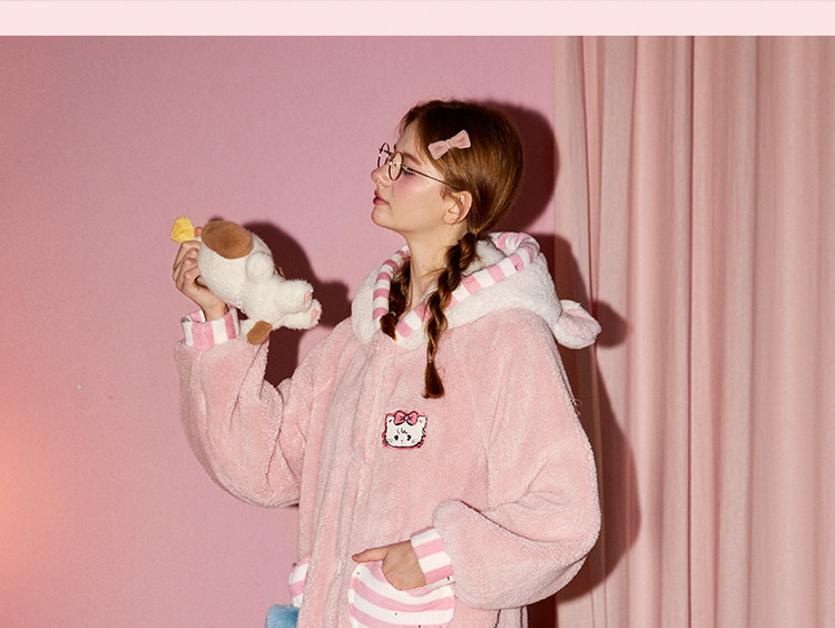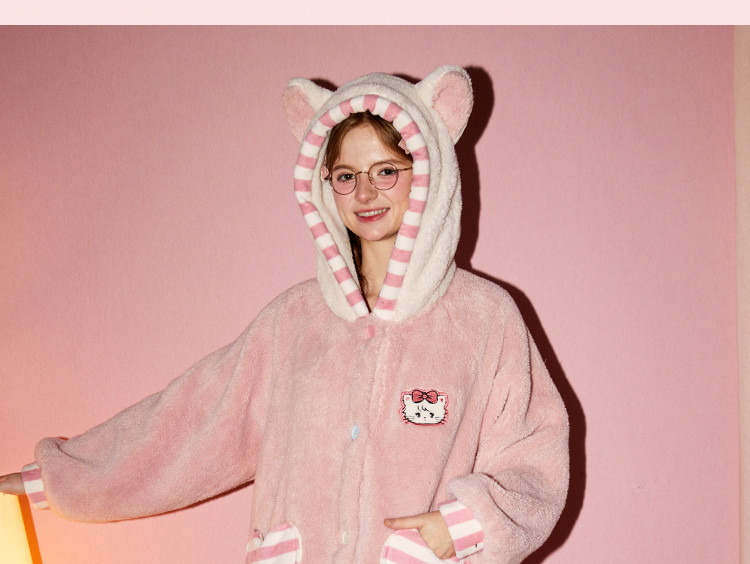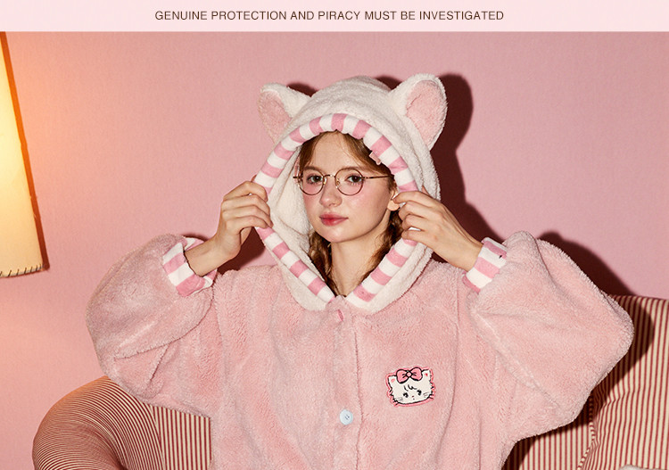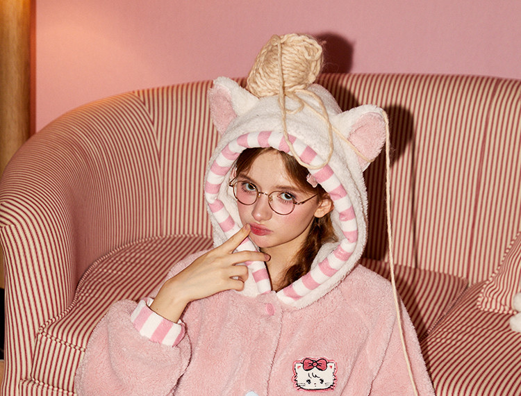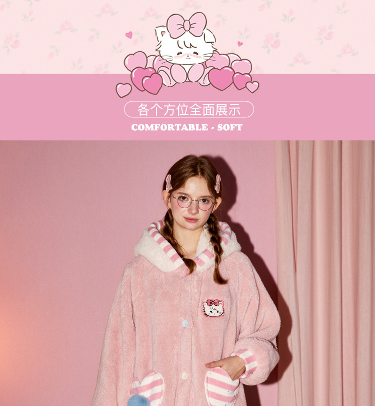 Gukoo/果壳新款半边绒睡衣女秋冬HelloKitty联名可爱家居服套装D