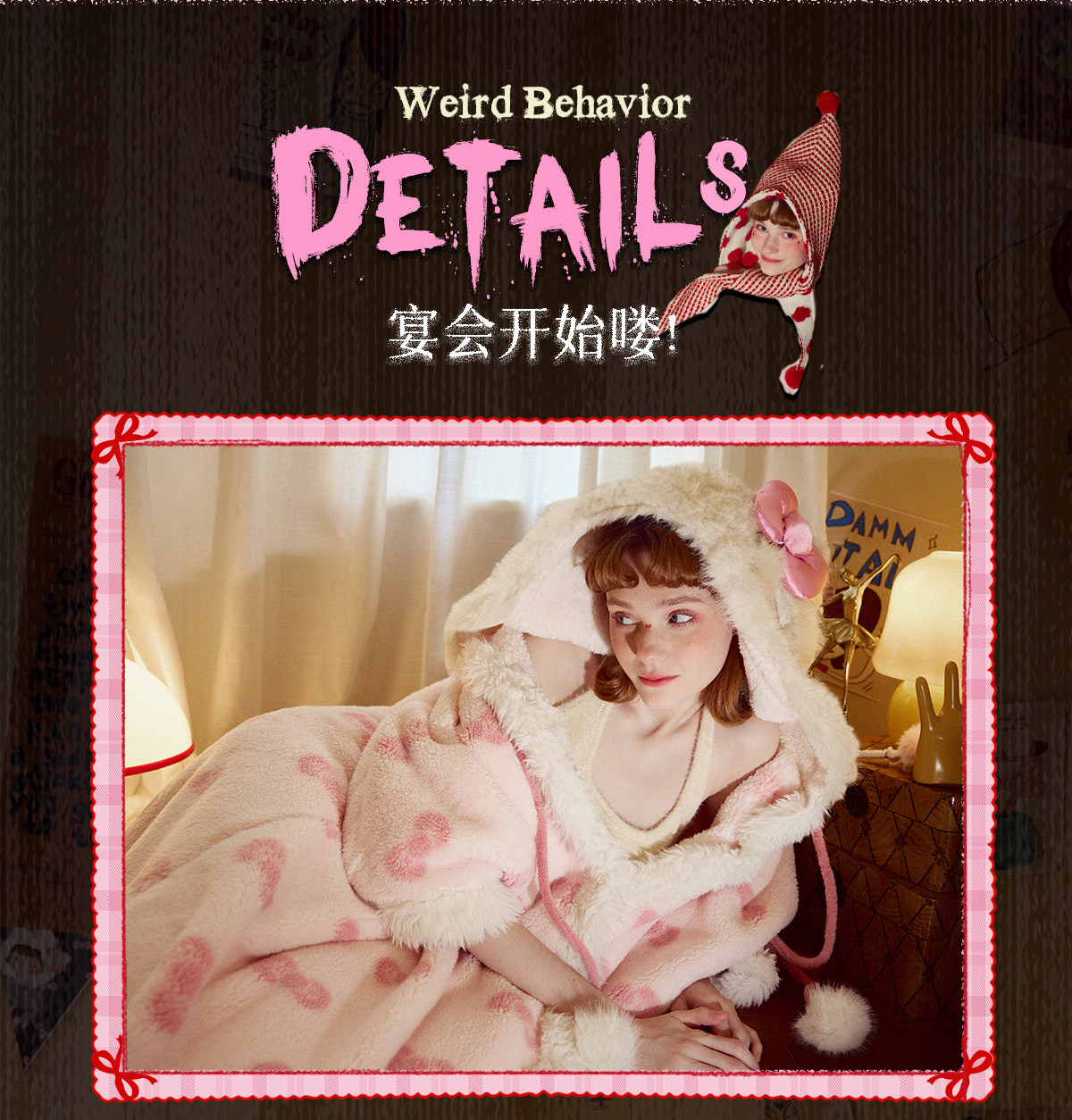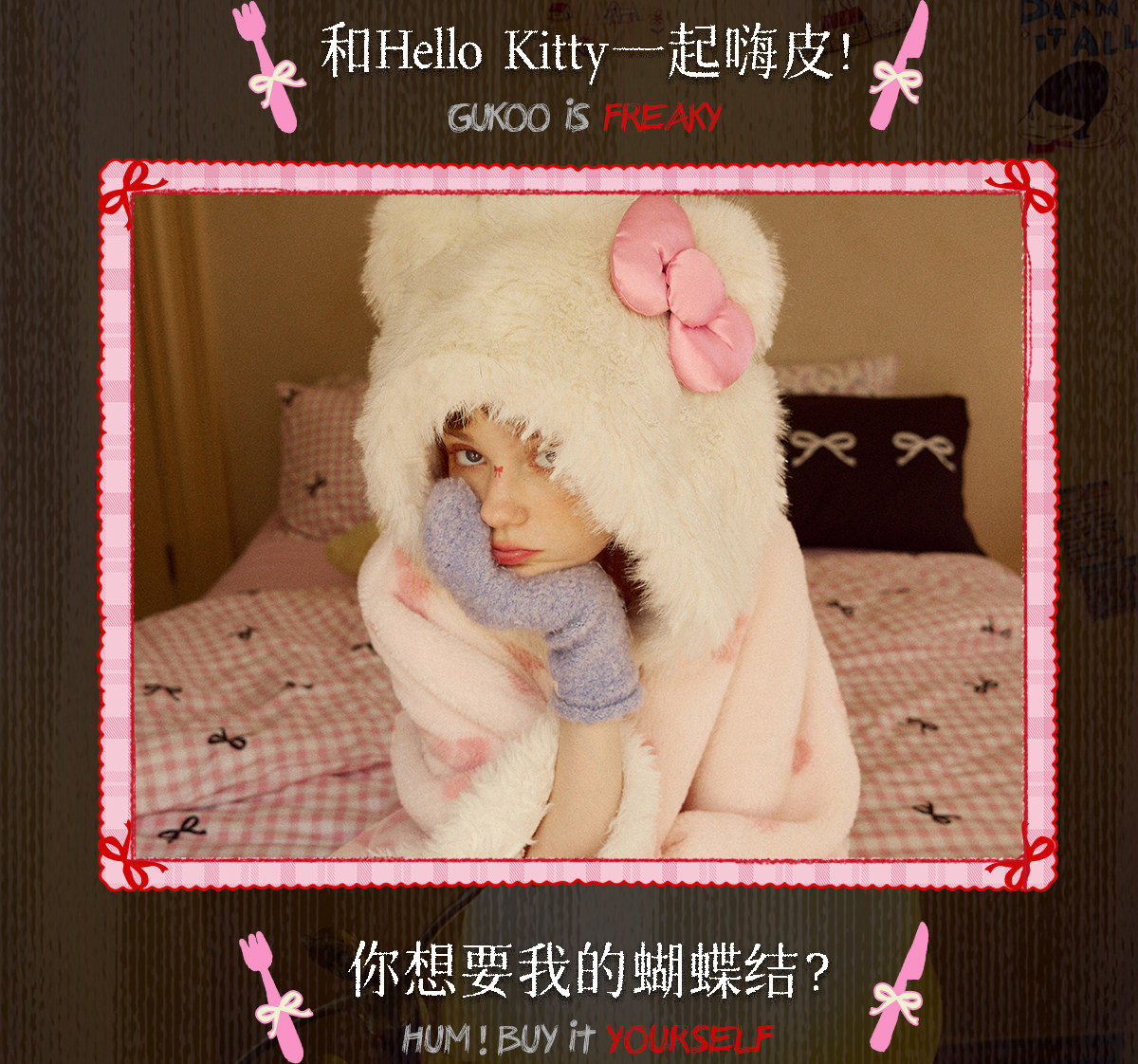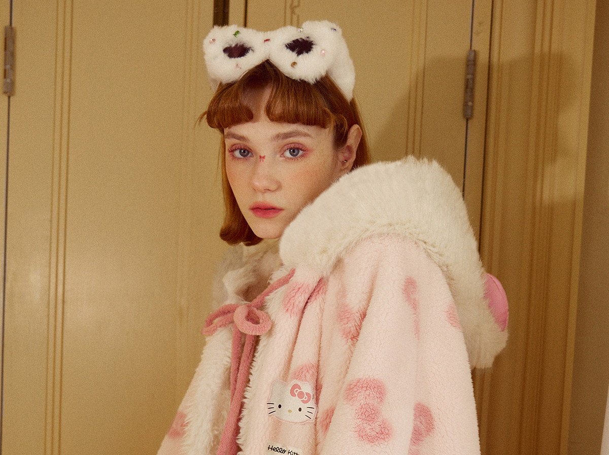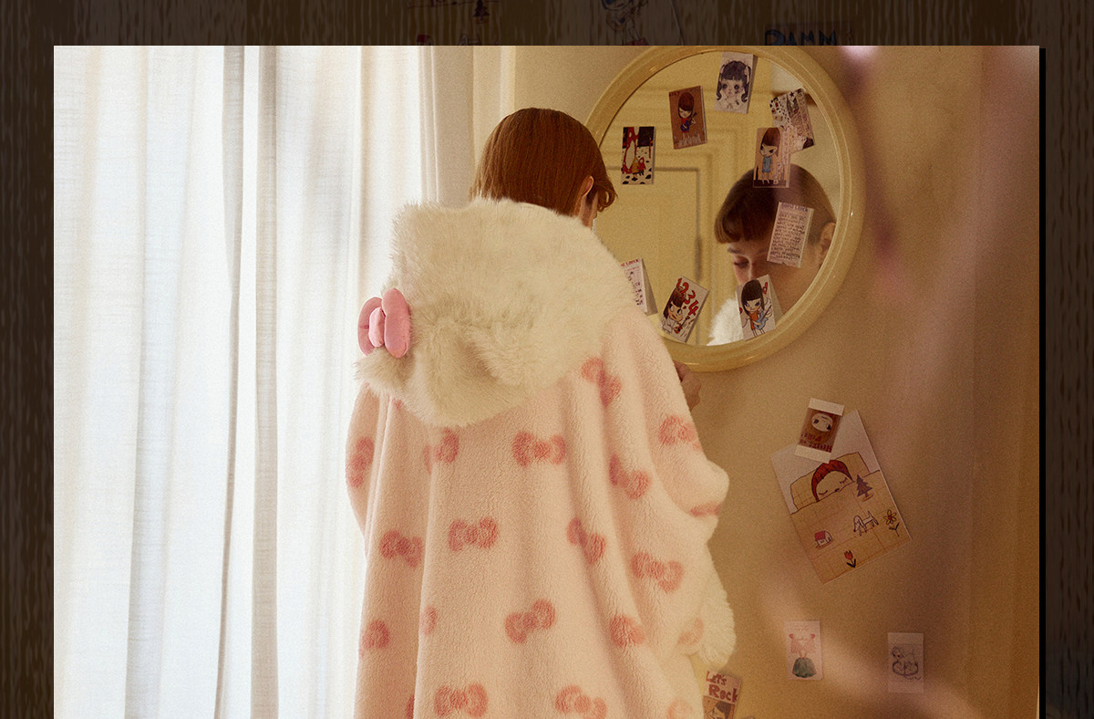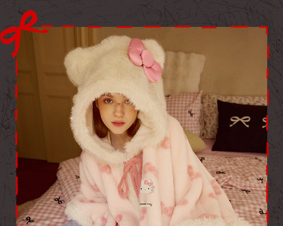 Gukoo/果壳睡袍冬季HelloKitty联名新款毛绒女士家居服斗篷睡袍D