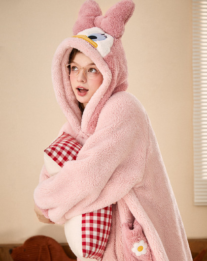 Gukoo/果壳【迪士尼米奇家族系列】睡袍女秋冬保暖珊瑚绒连帽女家居睡袍外穿