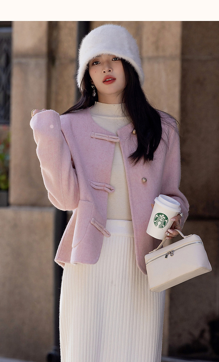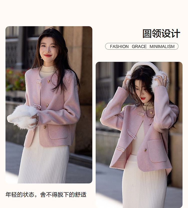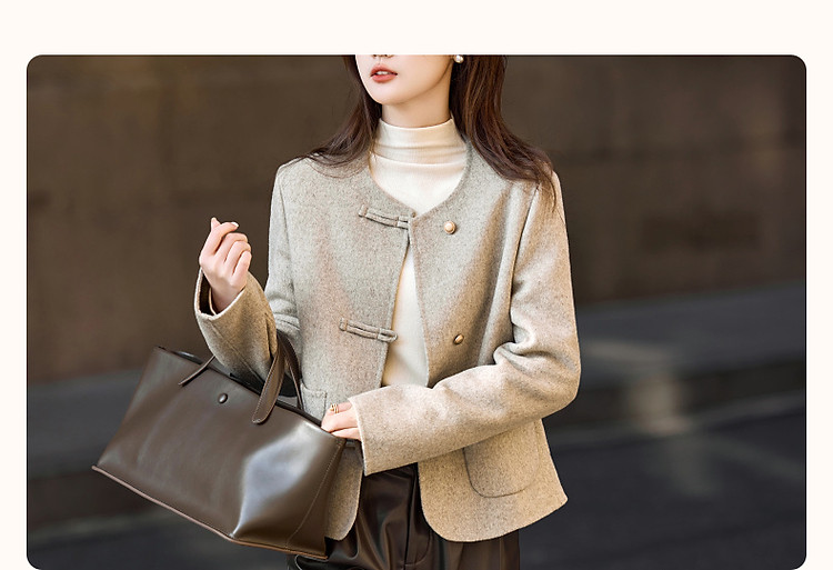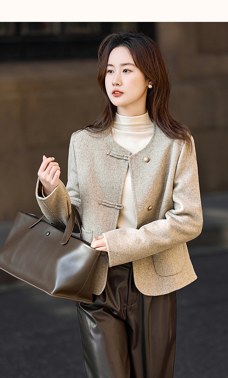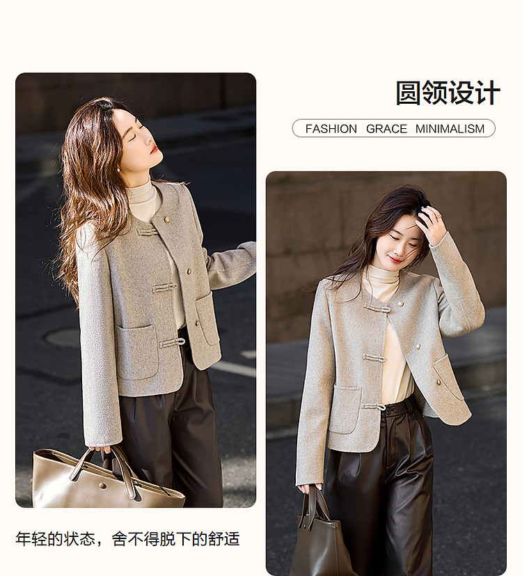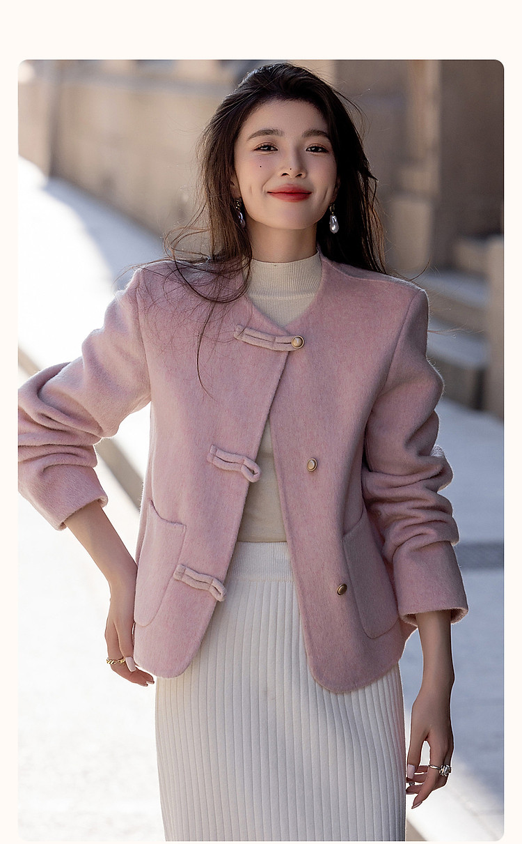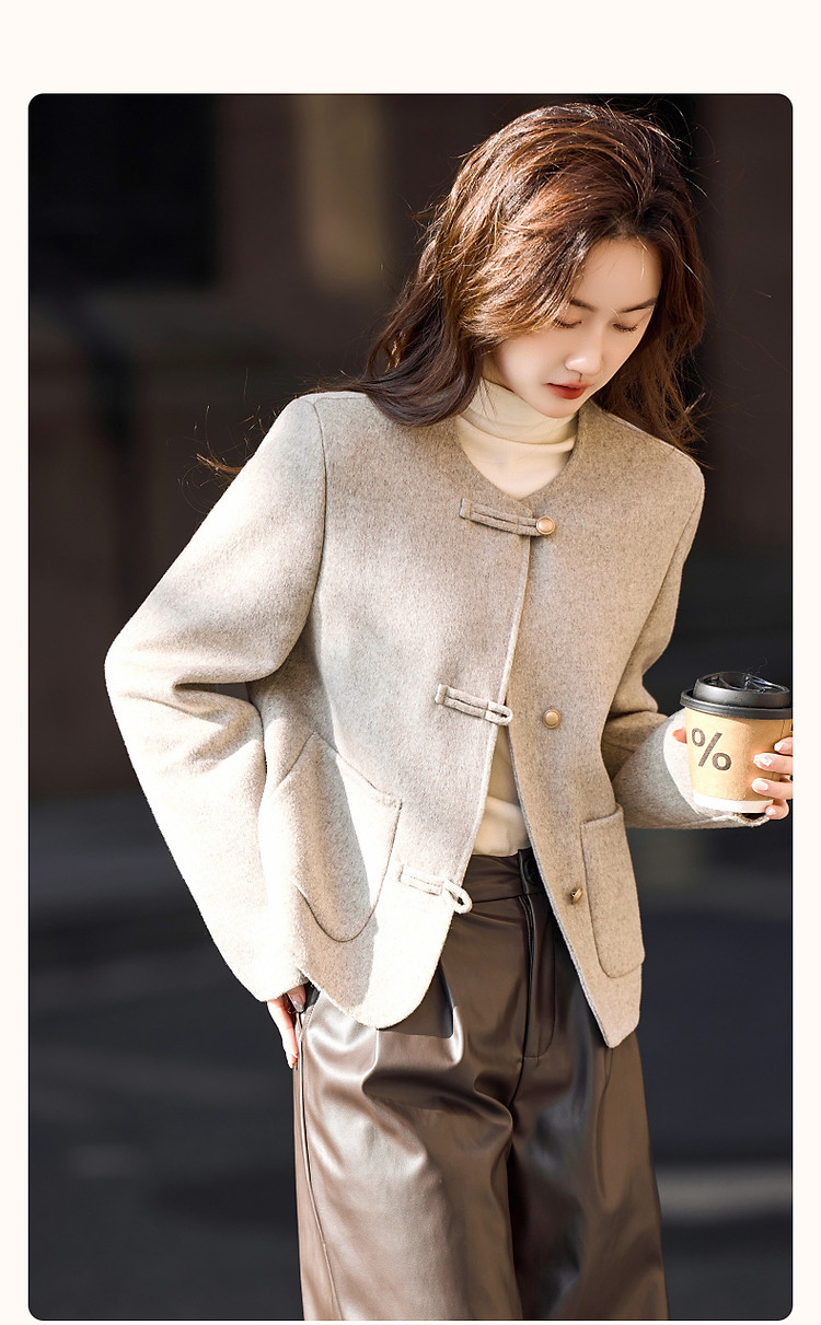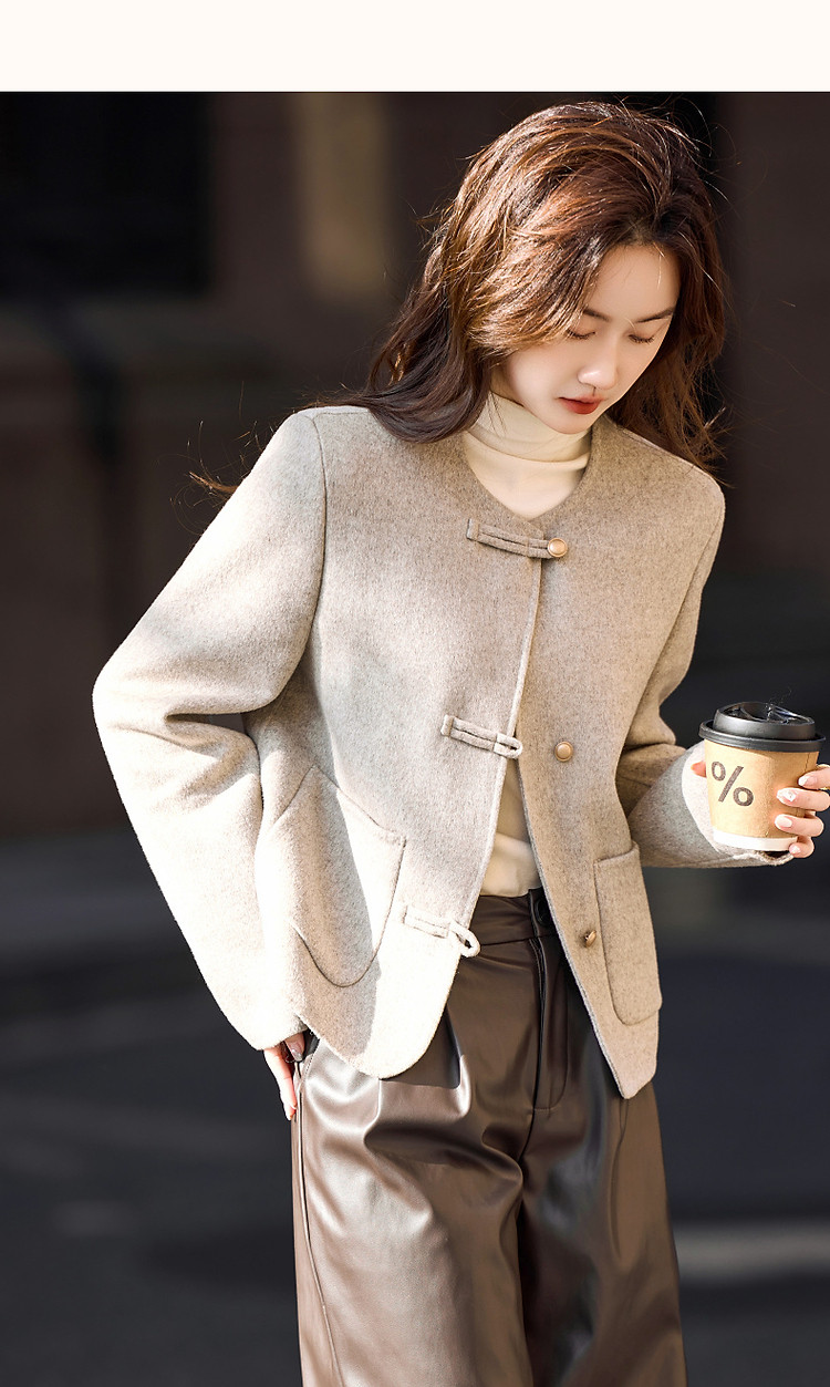 【雪野一梦】冬季国风新中式氧感绵羊毛双面呢盘扣大衣女外套短款