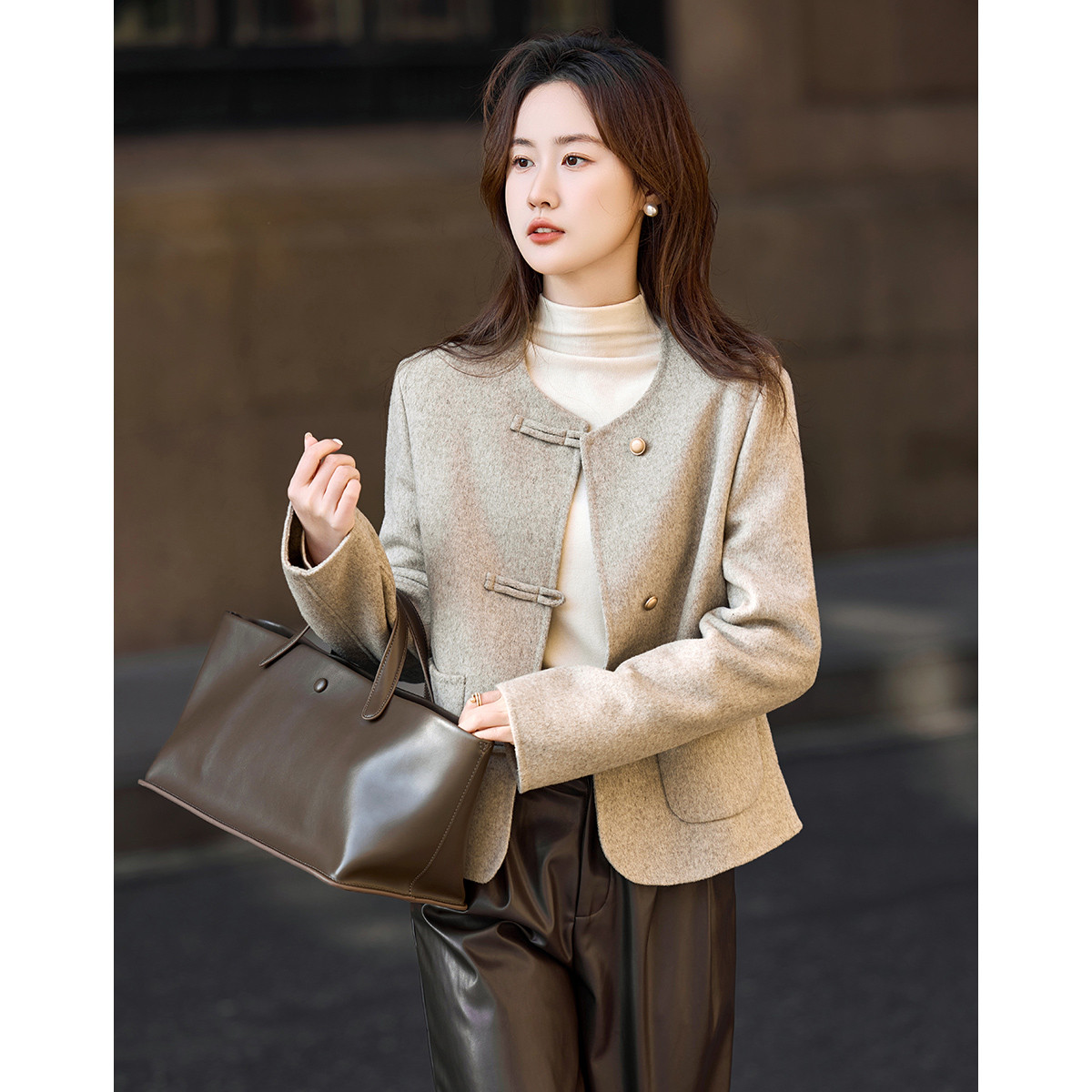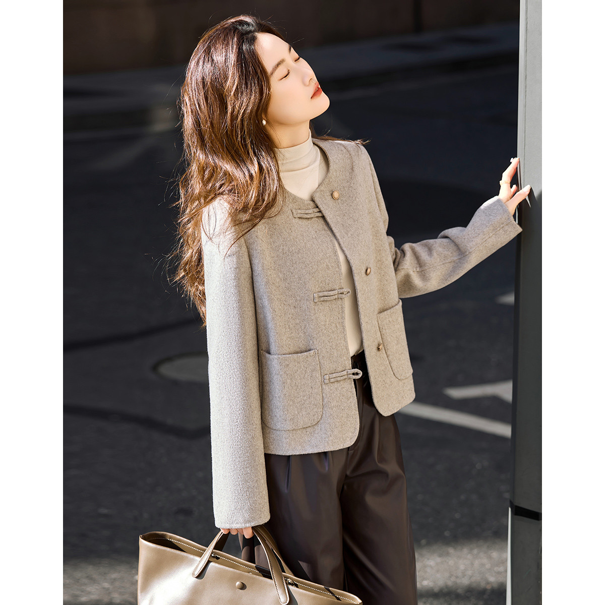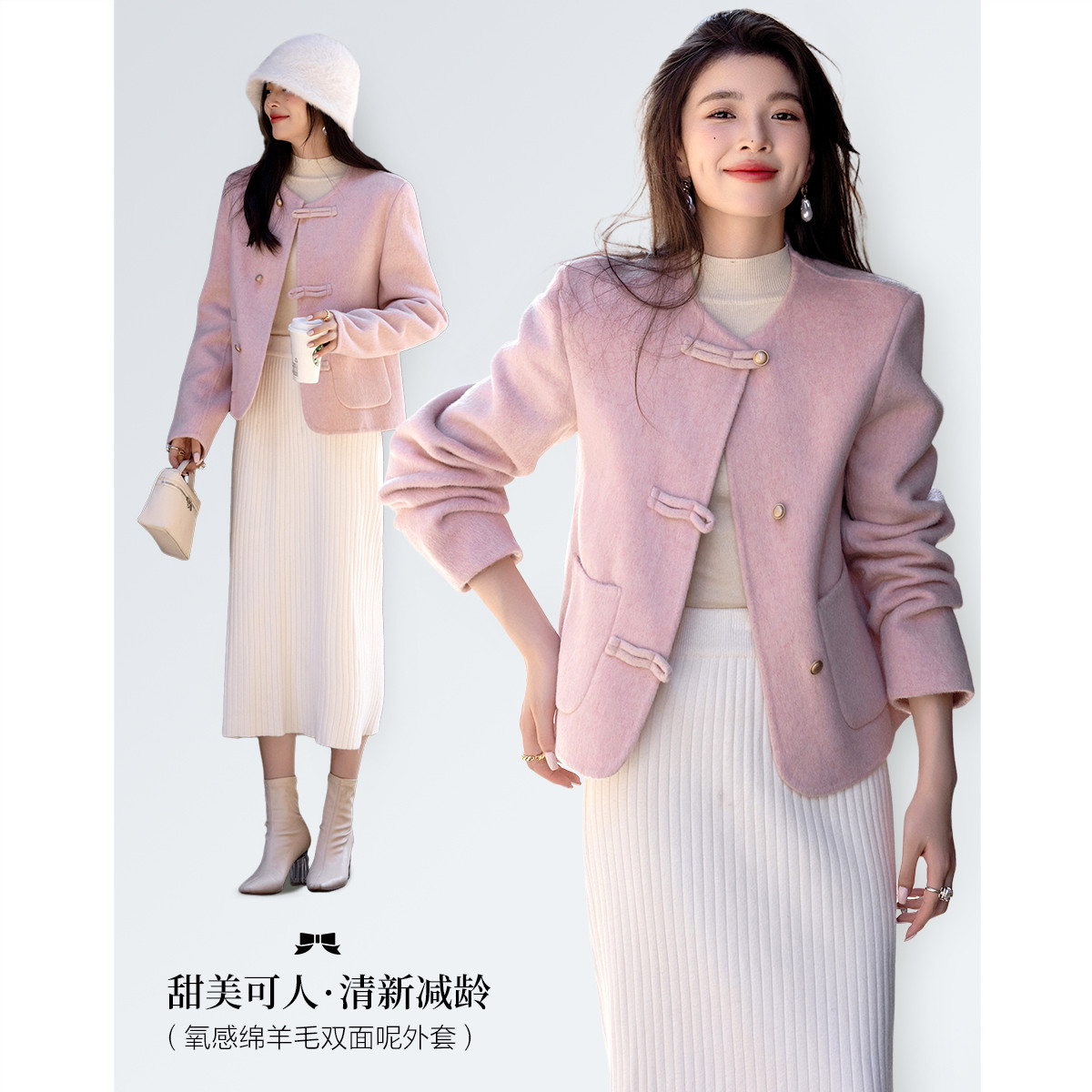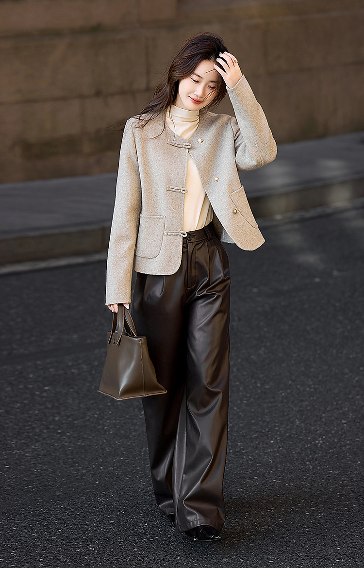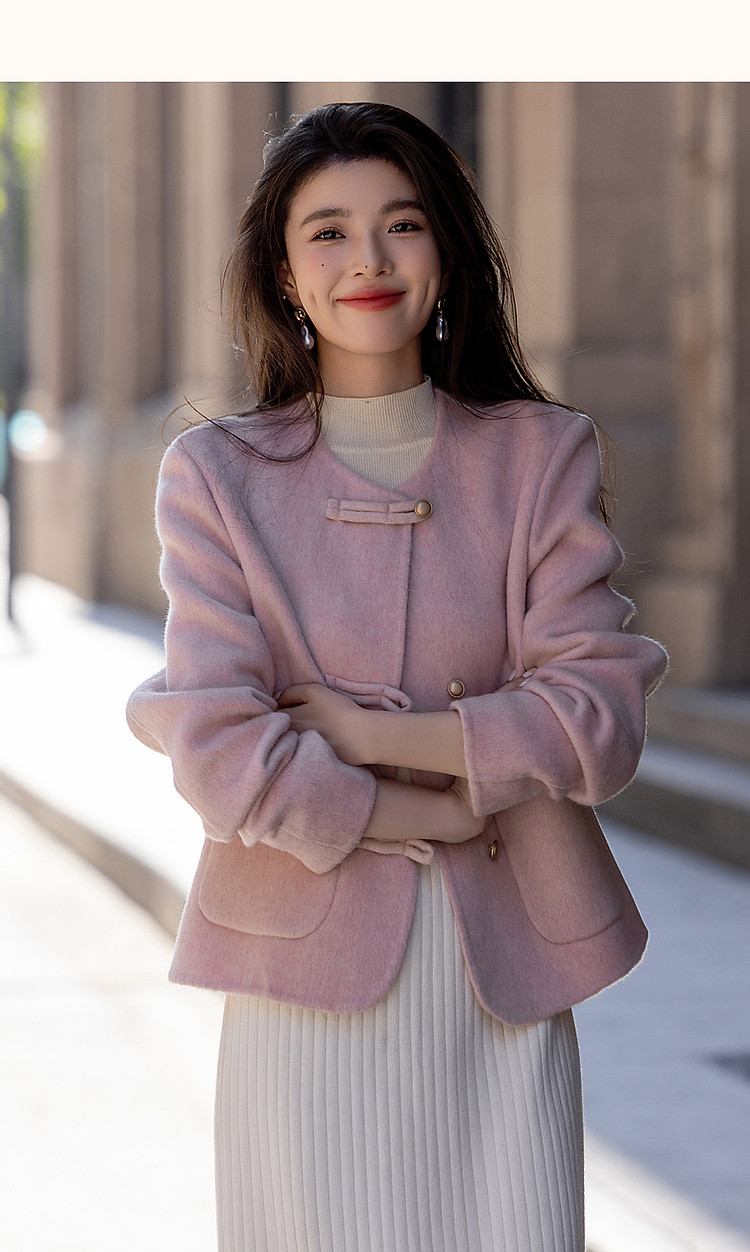 【雪野一梦】冬季国风新中式氧感绵羊毛双面呢盘扣大衣女外套短款