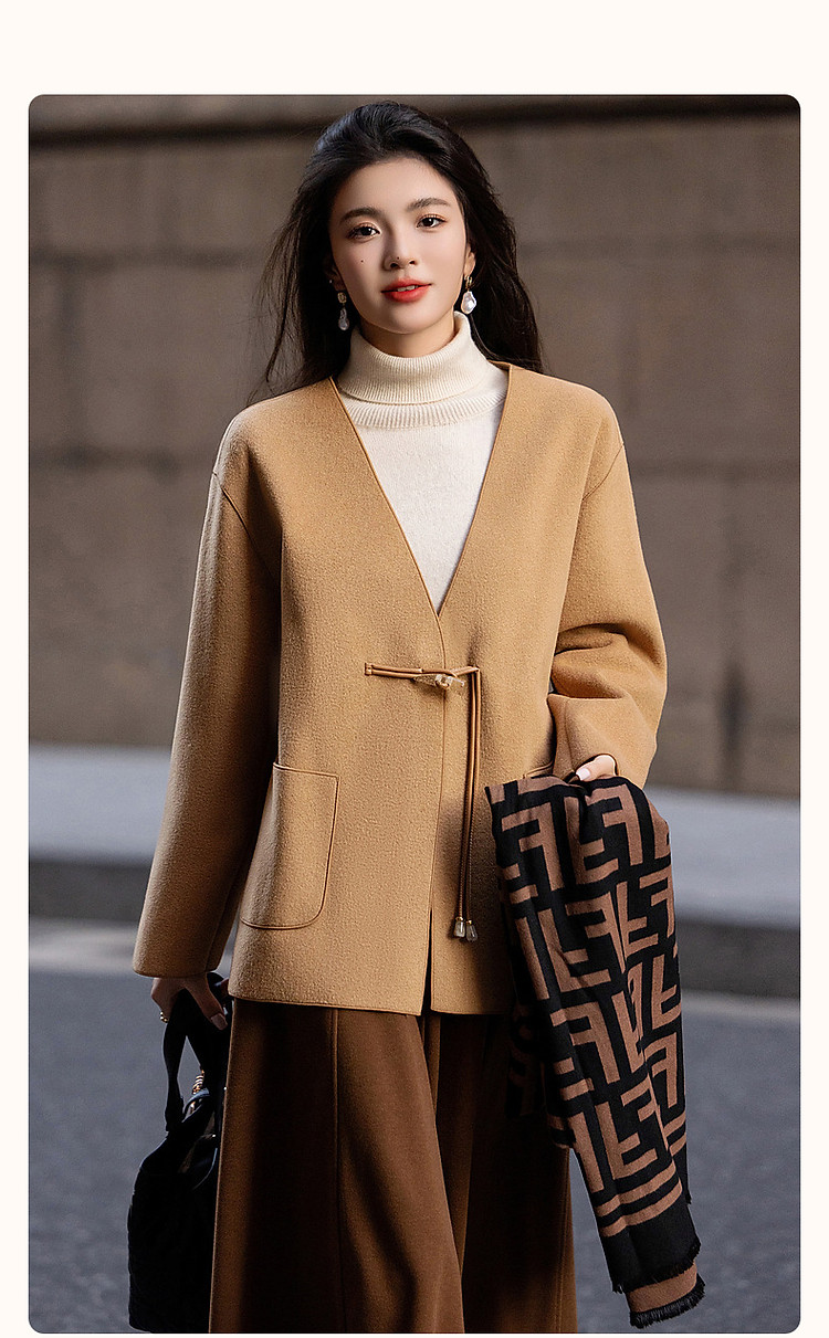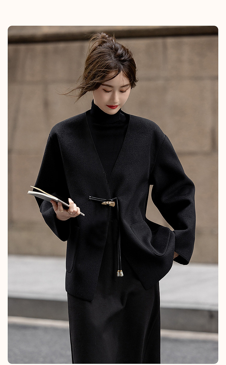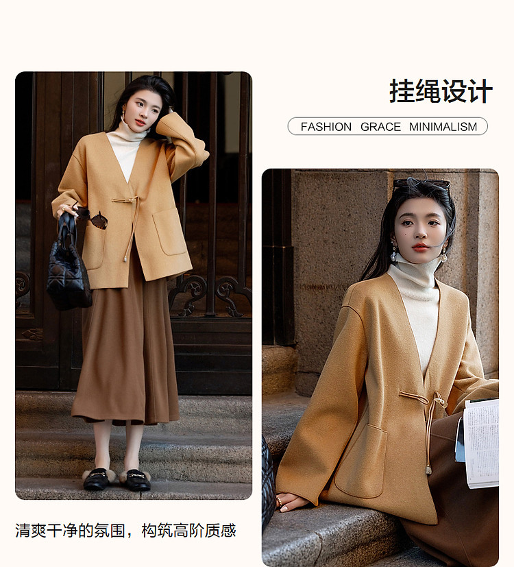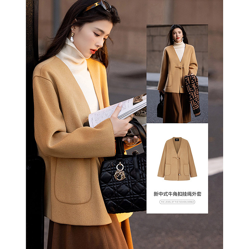 【墨雨云间】24冬款国风新中式牛角扣挂绳松弛A字好搭女式外套