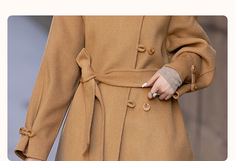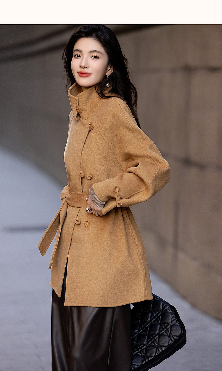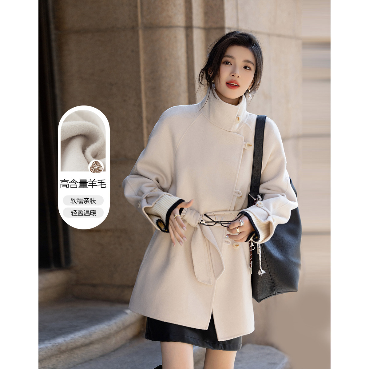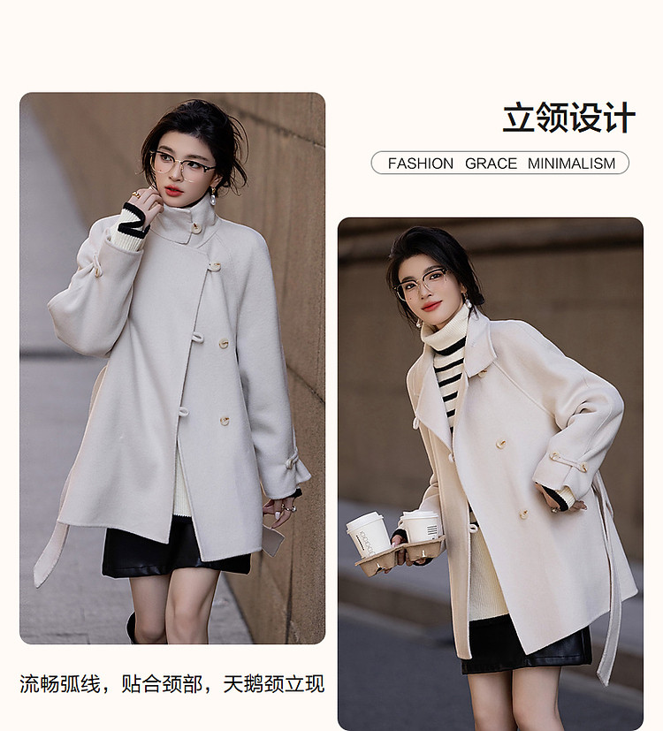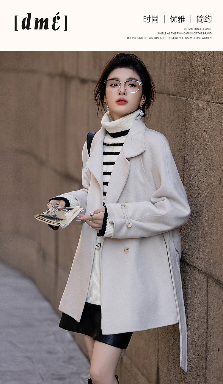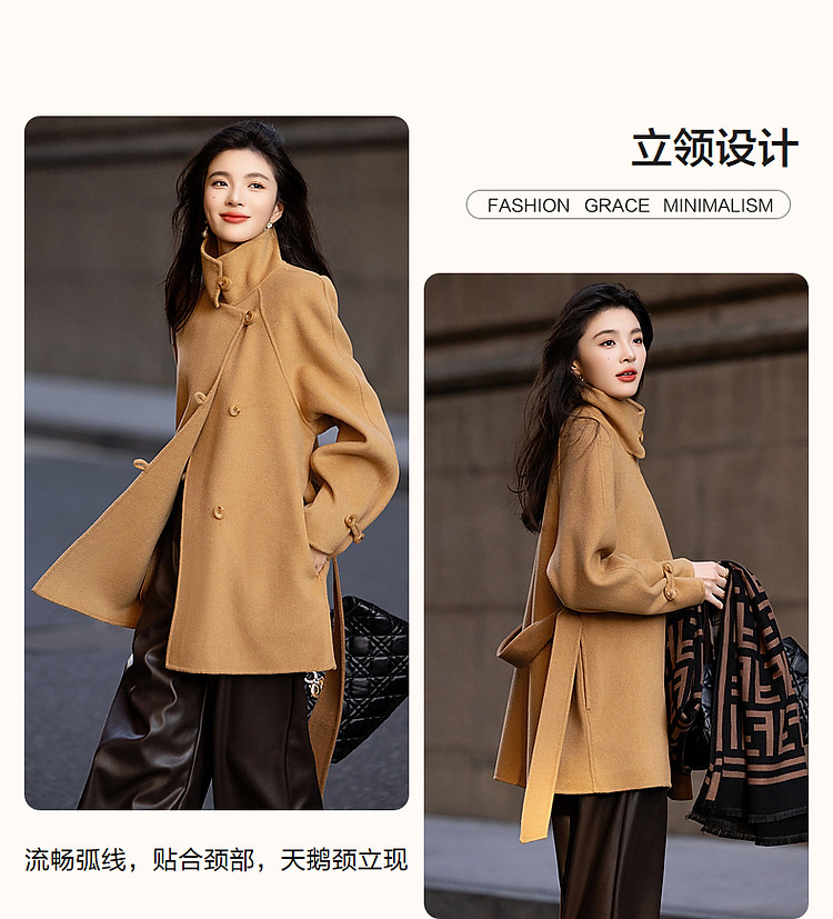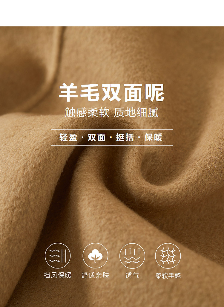 【千金玛德琳】冬季静奢老钱风绵羊毛顺毛呢腰带遮肉大衣女式外套
