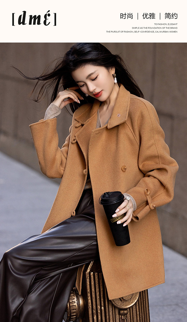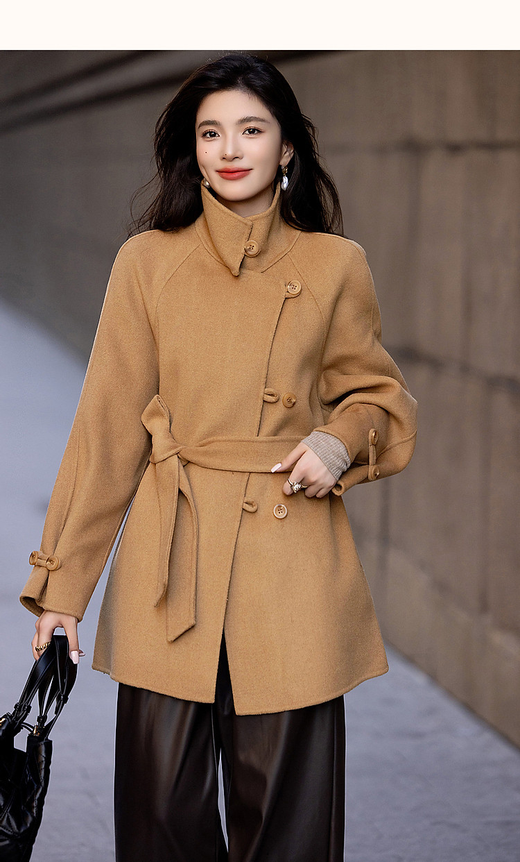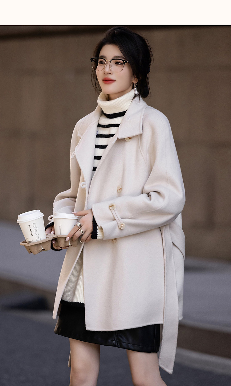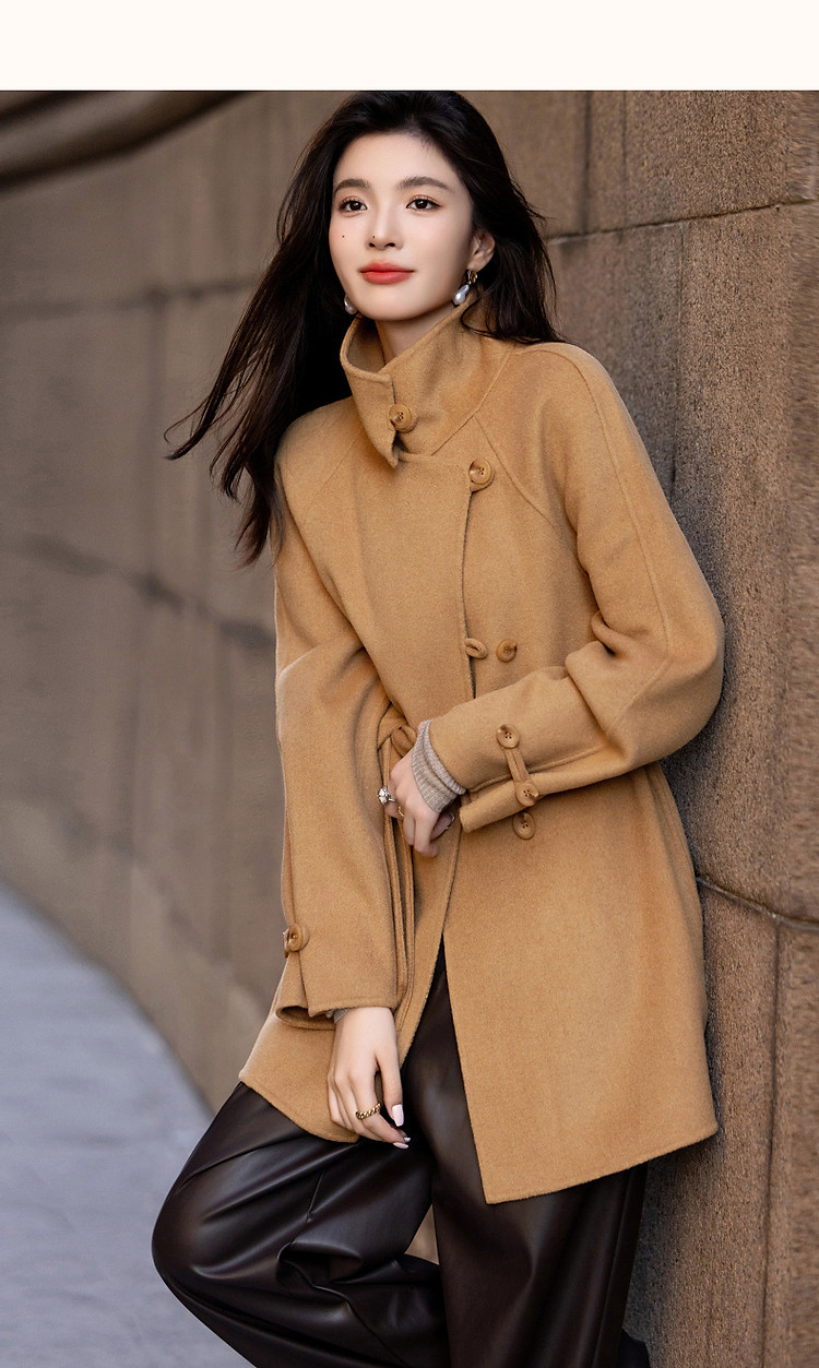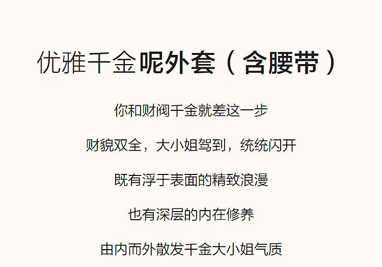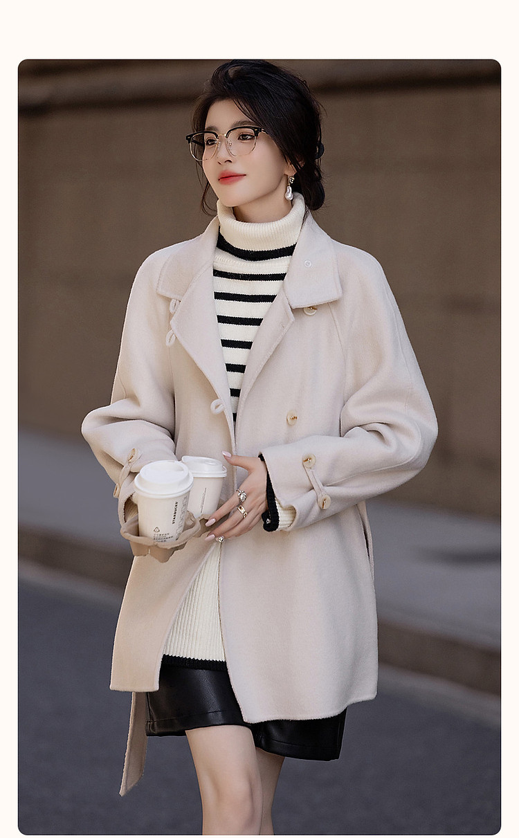 【千金玛德琳】冬季静奢老钱风绵羊毛顺毛呢腰带遮肉大衣女式外套