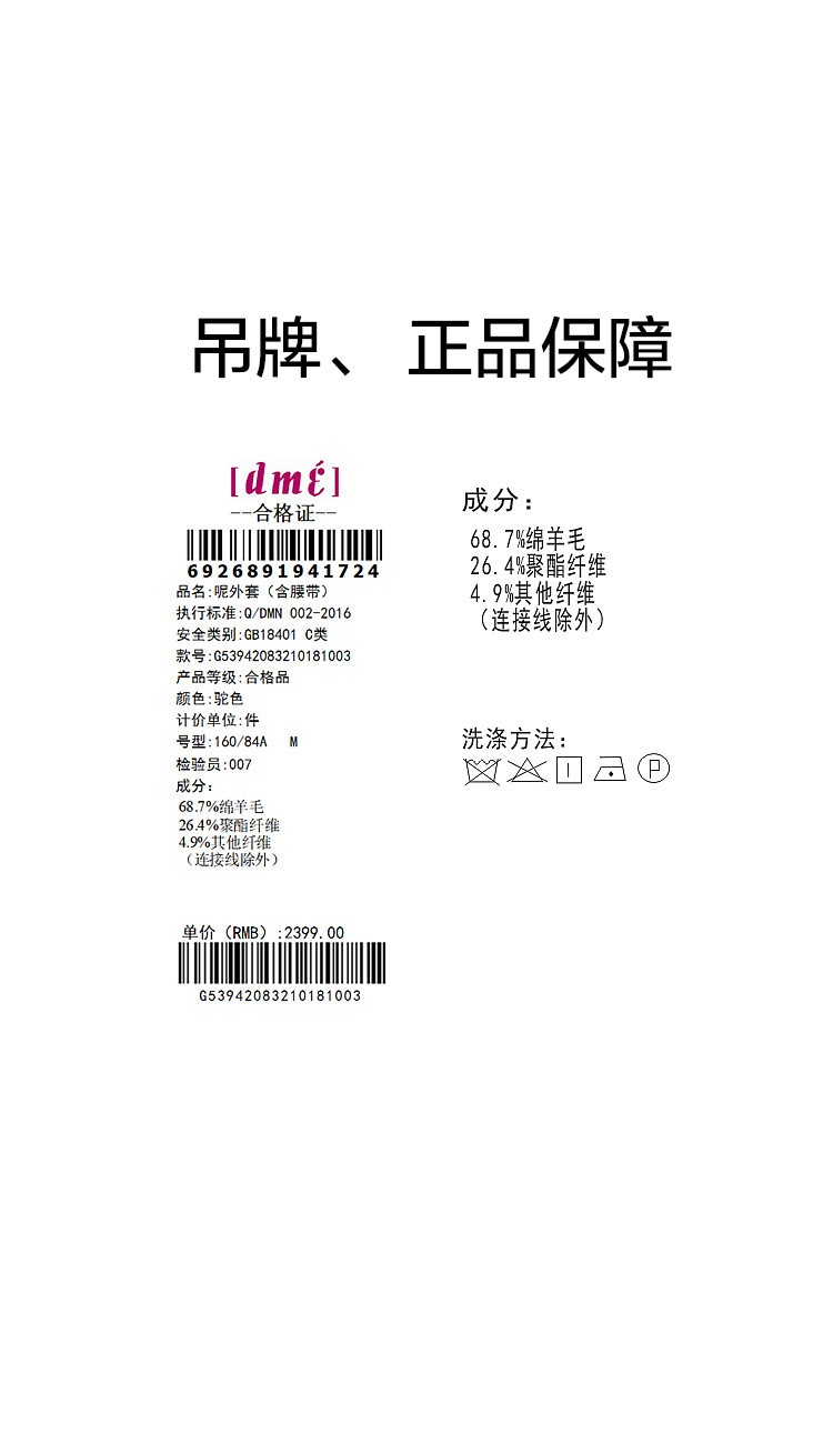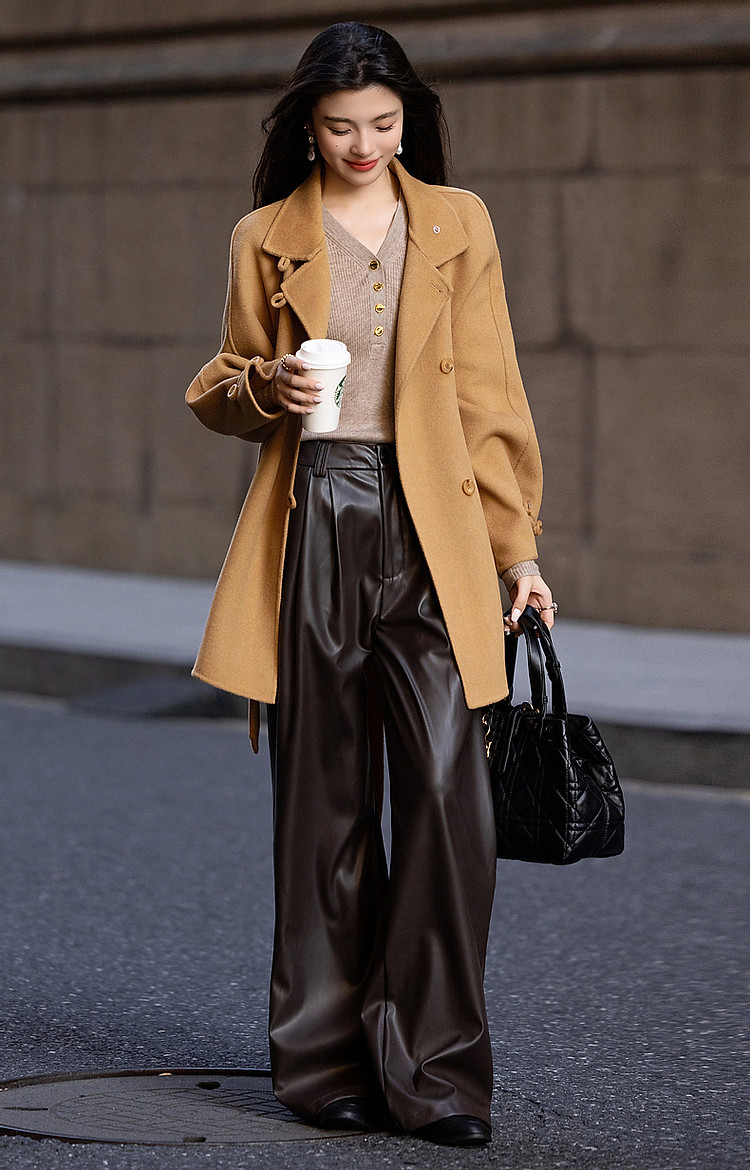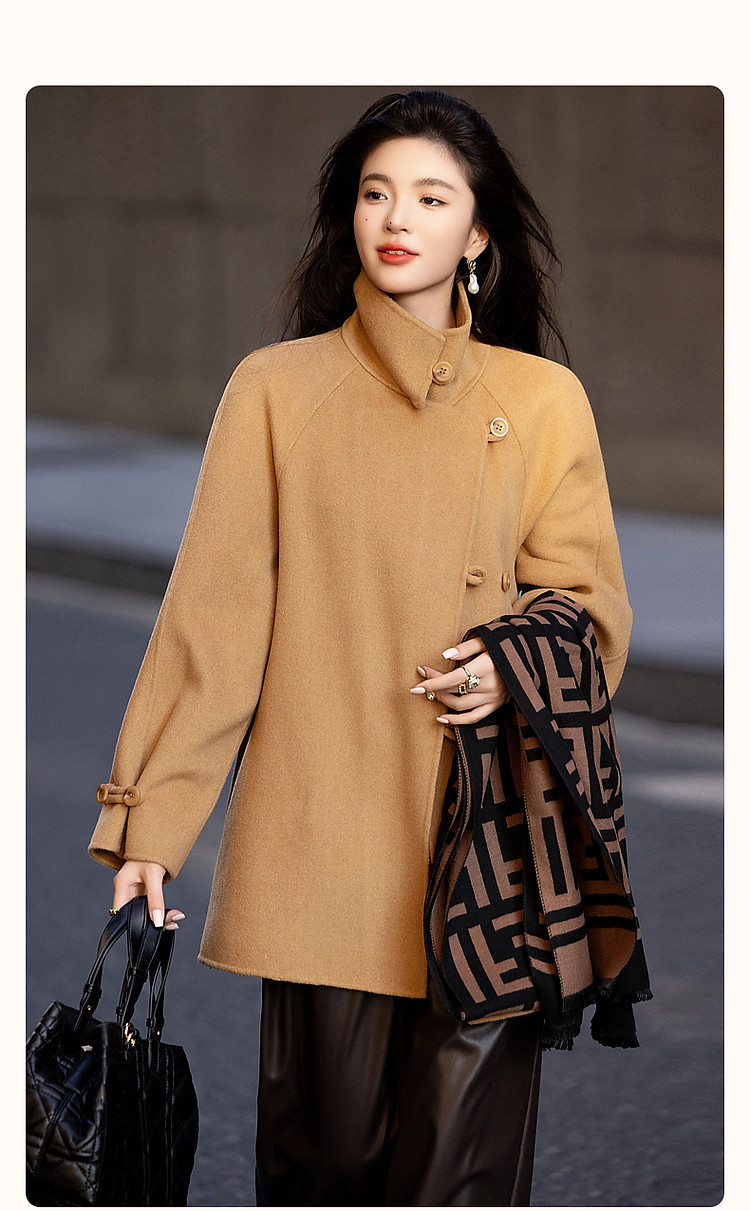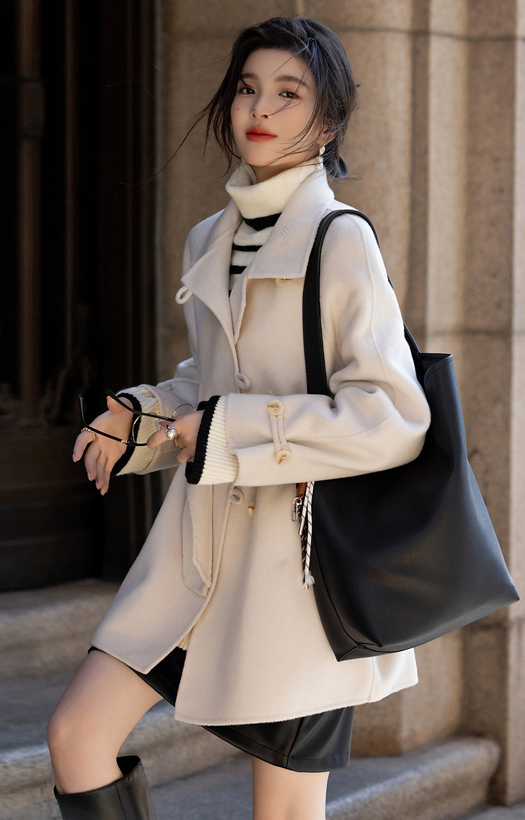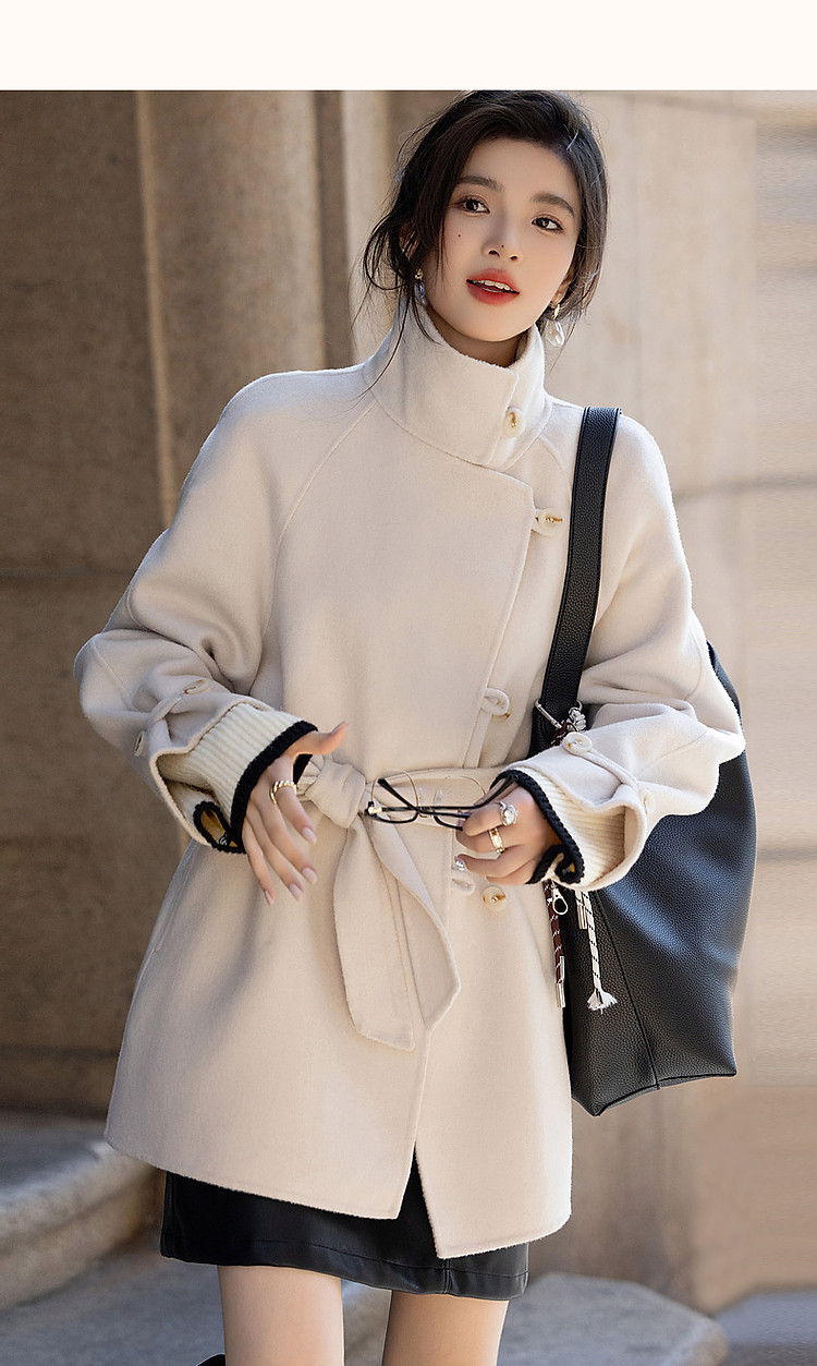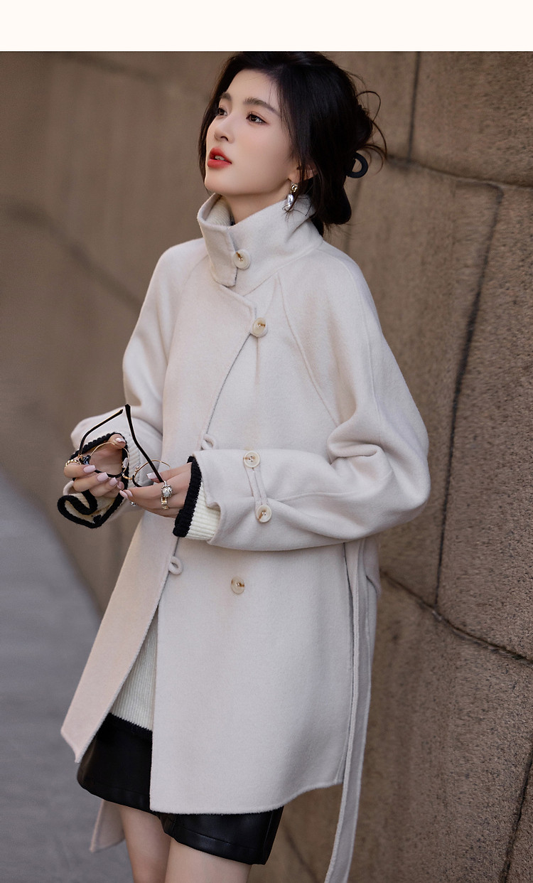 【千金玛德琳】冬季静奢老钱风绵羊毛顺毛呢腰带遮肉大衣女式外套