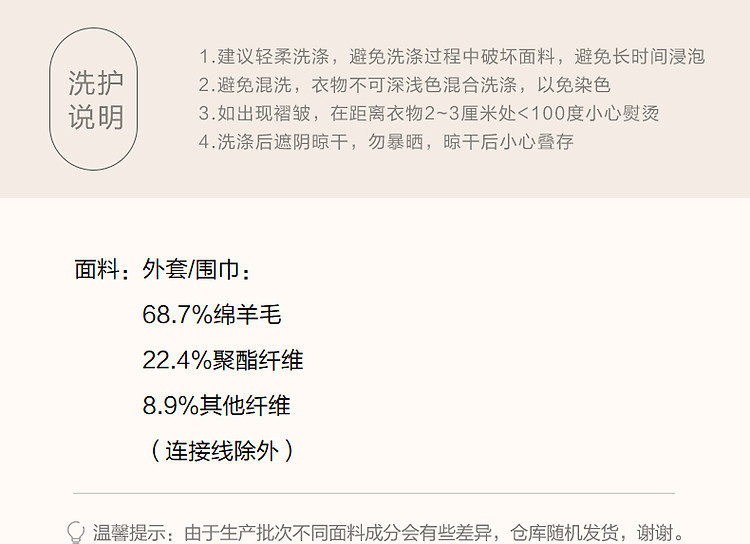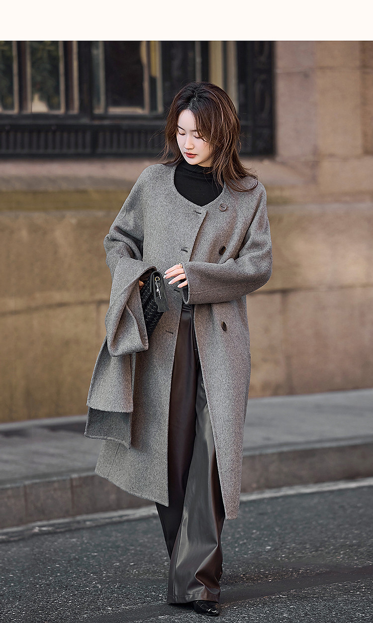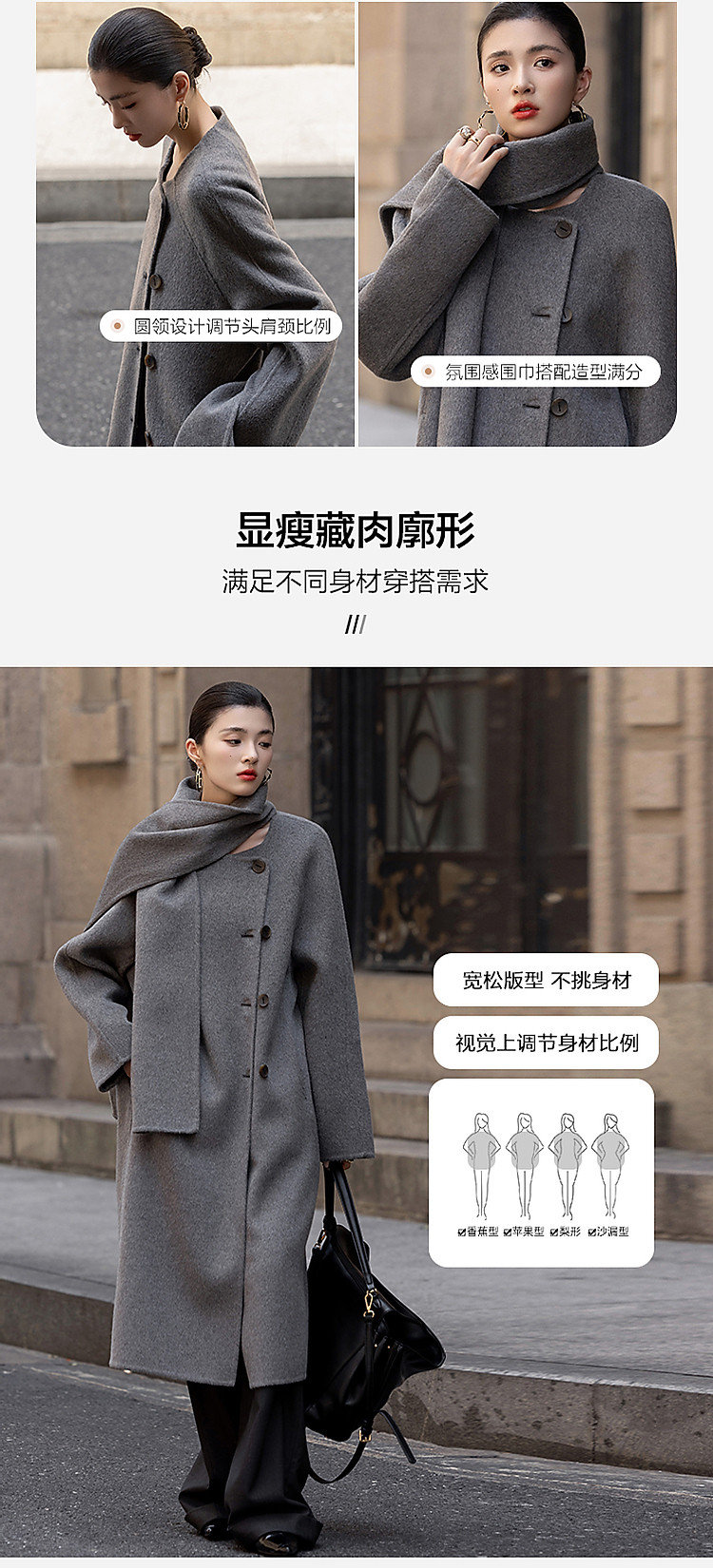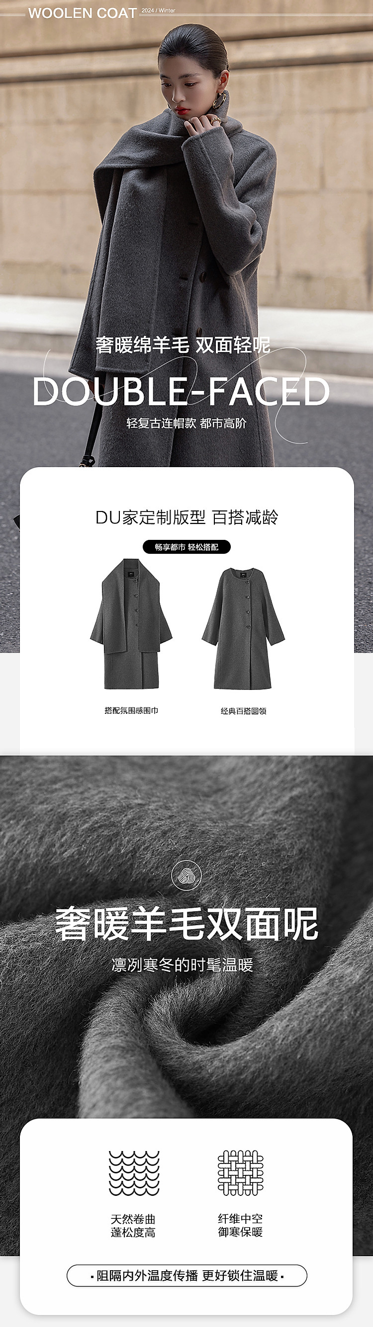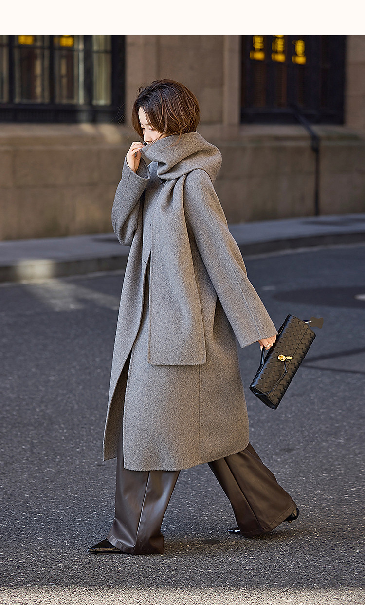 【轻盈衣橱】冬季静奢老钱围巾式绵羊毛高保暖舒适藏肉好搭长外套