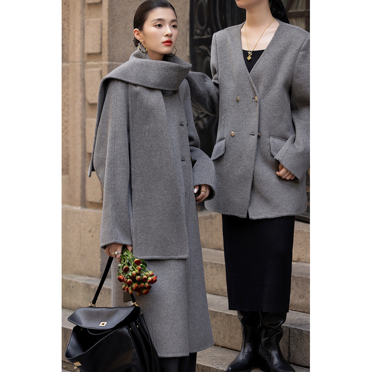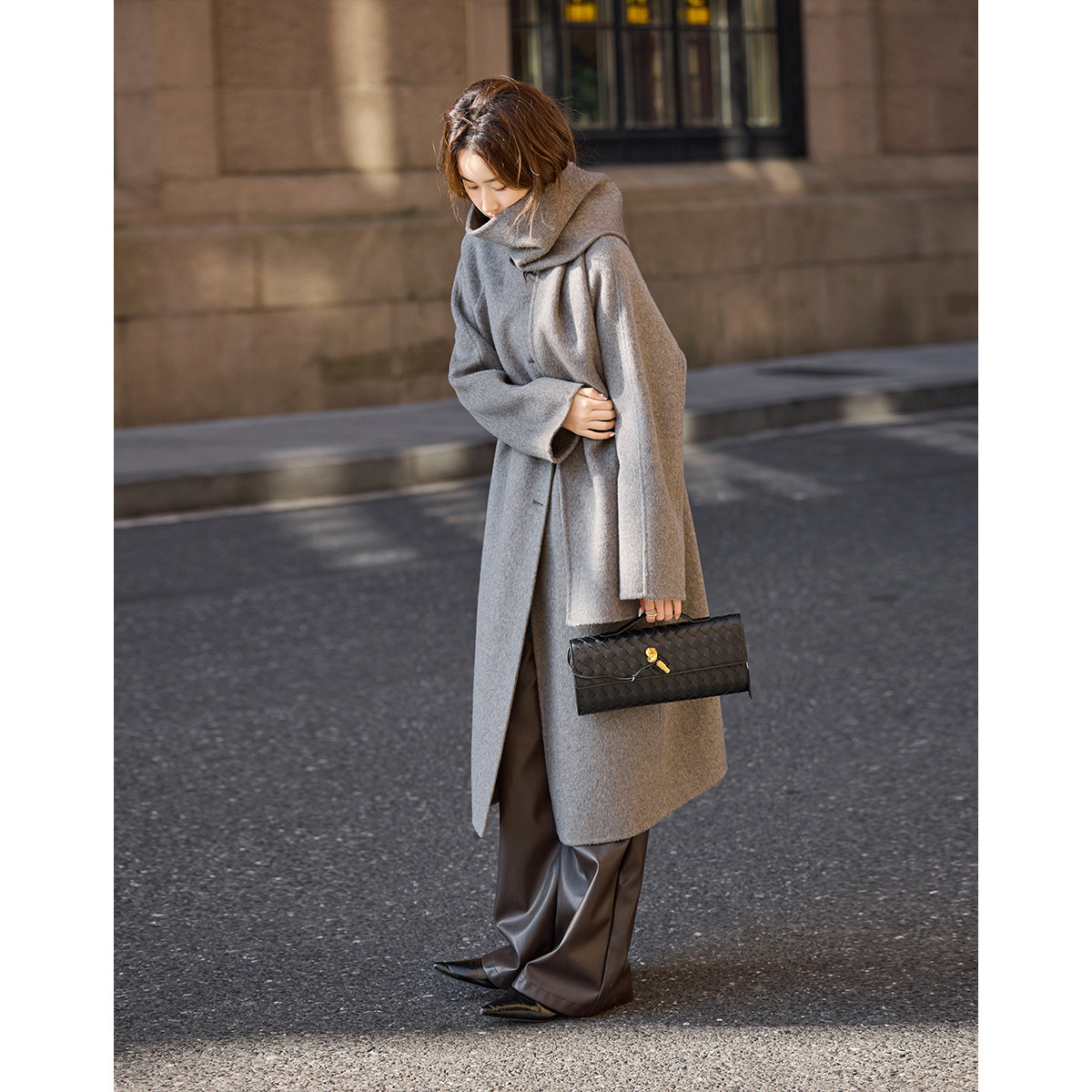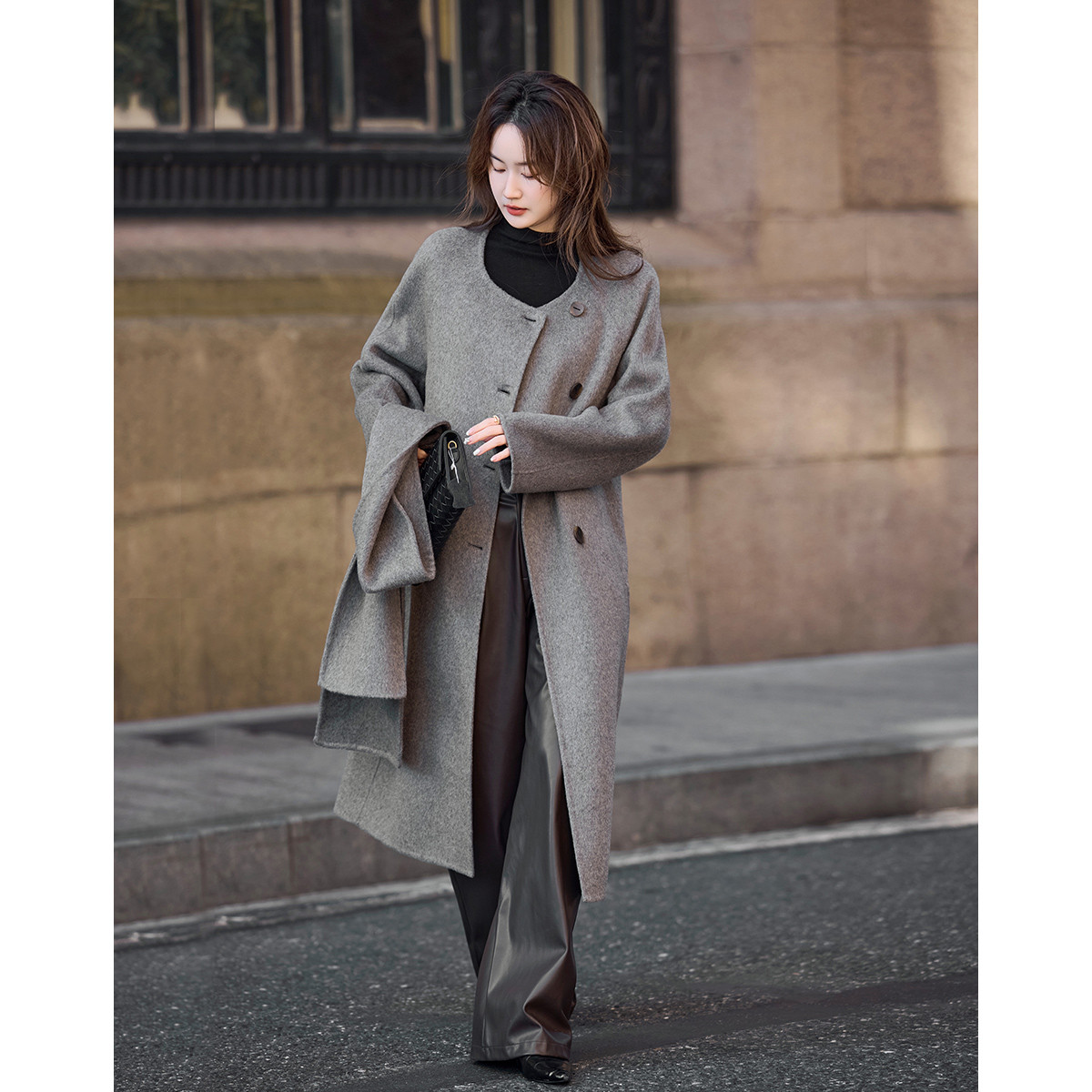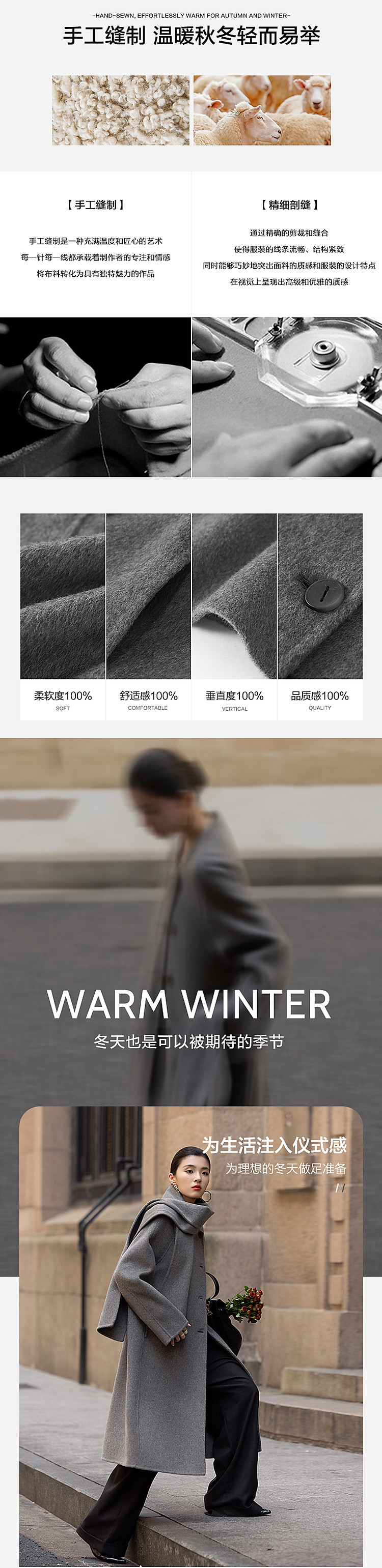 【轻盈衣橱】冬季静奢老钱围巾式绵羊毛高保暖舒适藏肉好搭长外套