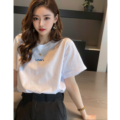 2024女圆领前胸字母短袖T恤简约百搭气质学院风减龄时尚韩版
