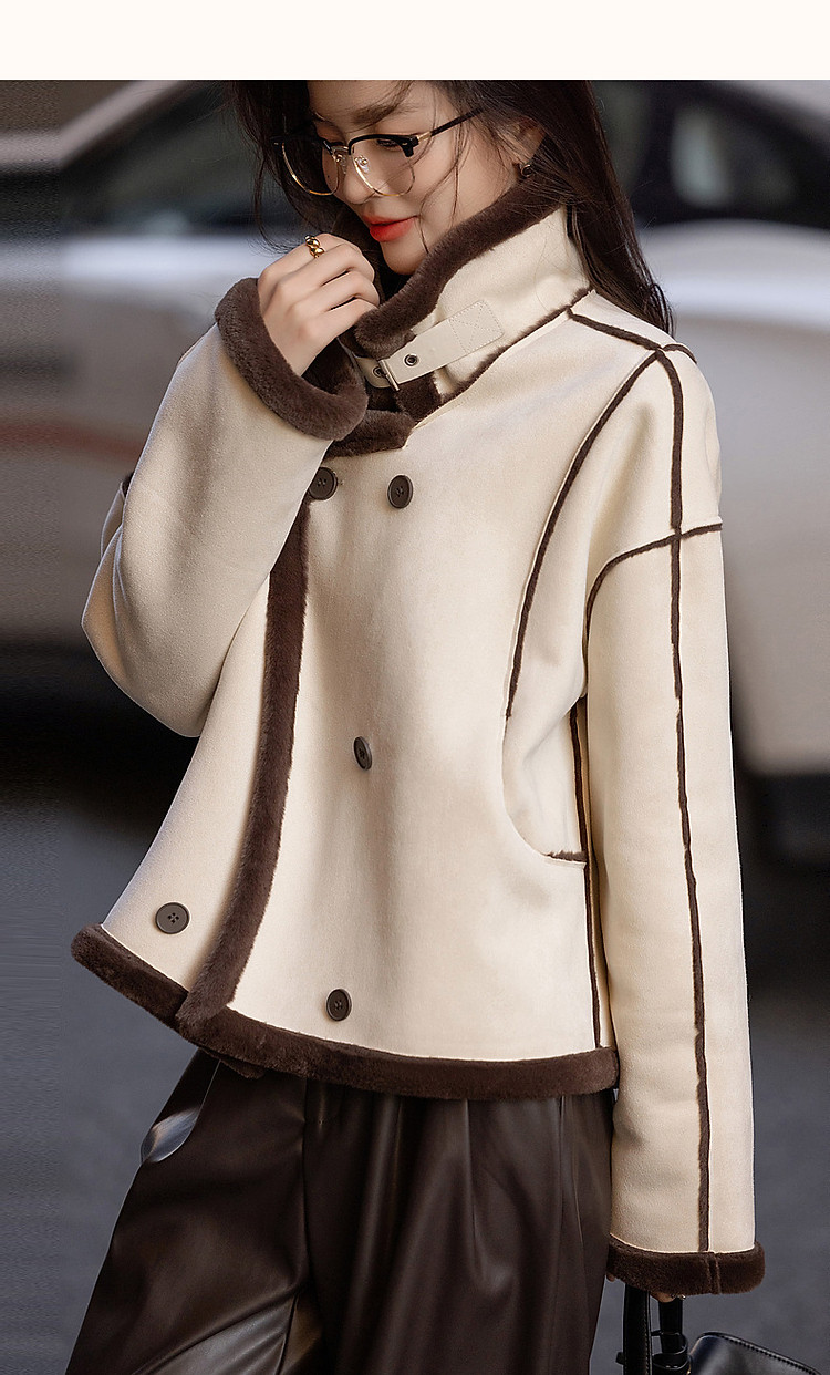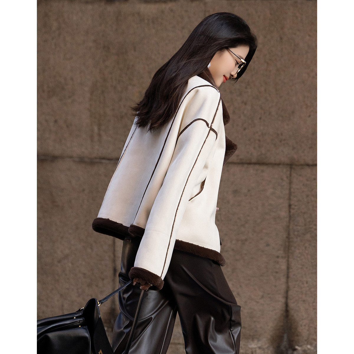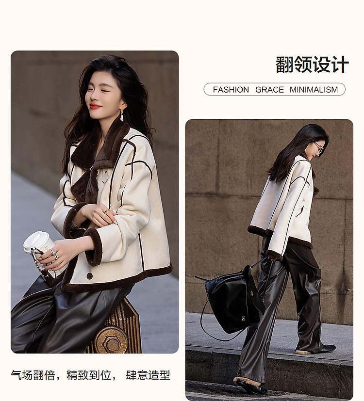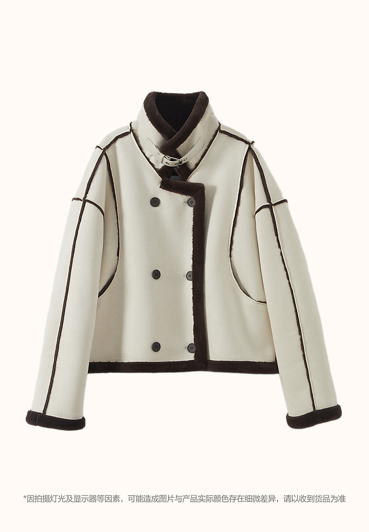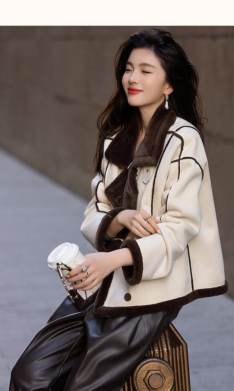 【青春纪念册】冬学院风复合聚酯摇粒绒翻袖口拼色棉衣外套女短款