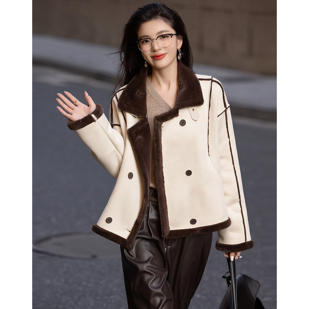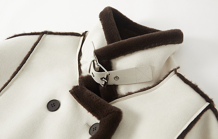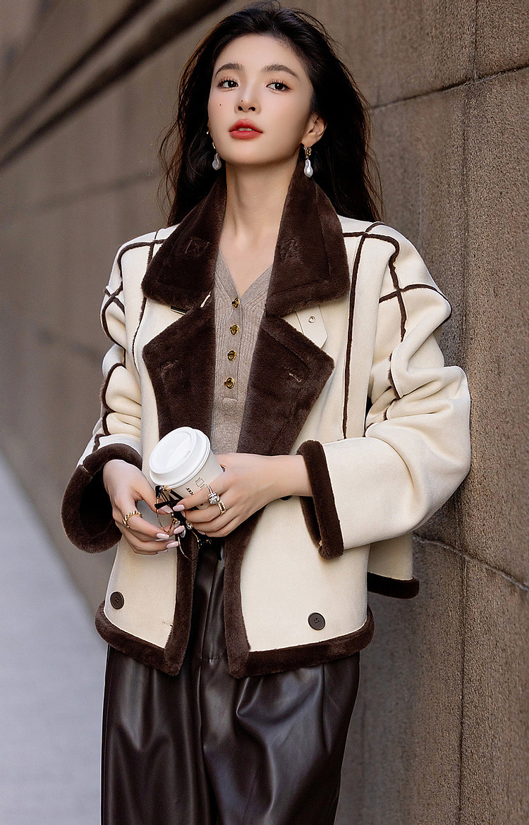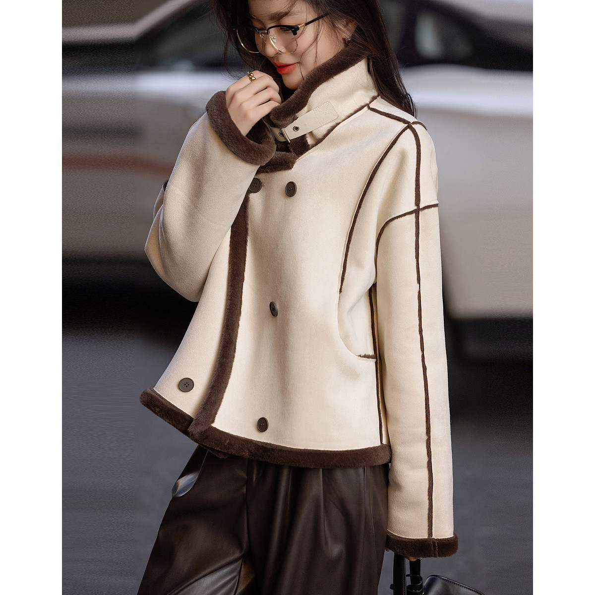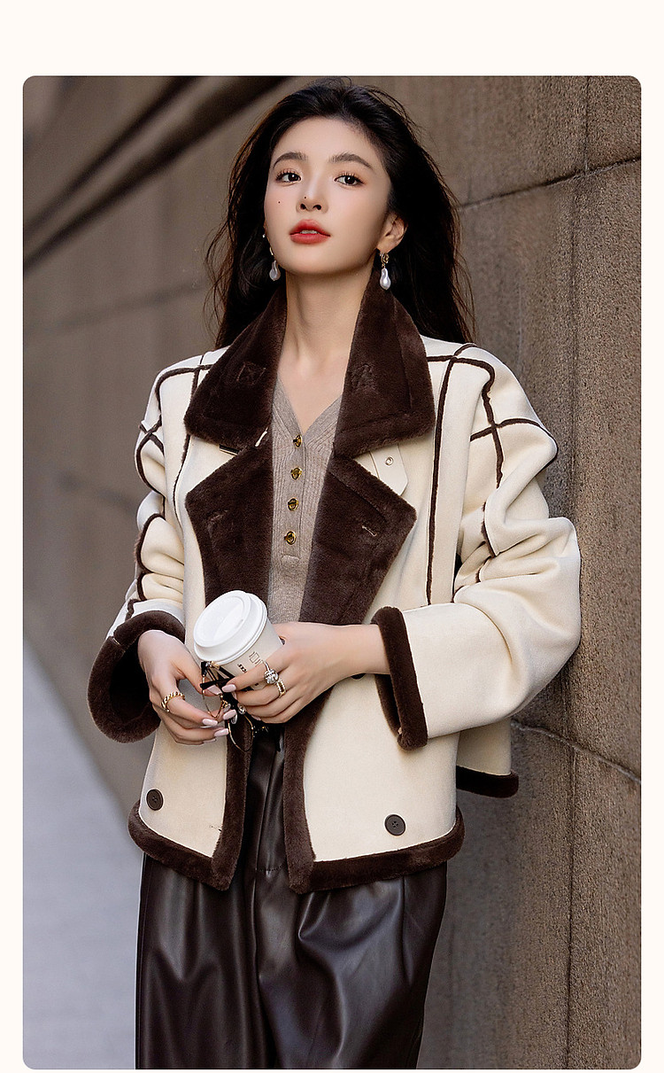 【青春纪念册】冬学院风复合聚酯摇粒绒翻袖口拼色棉衣外套女短款