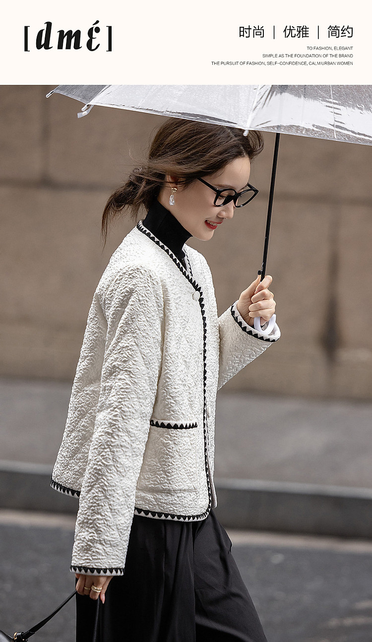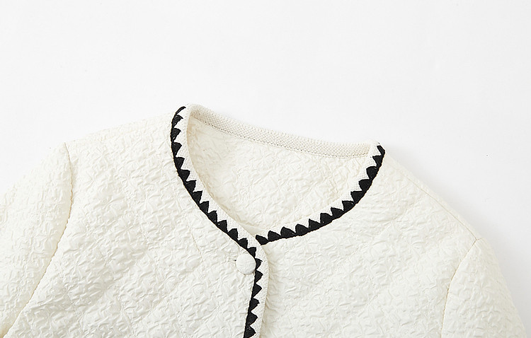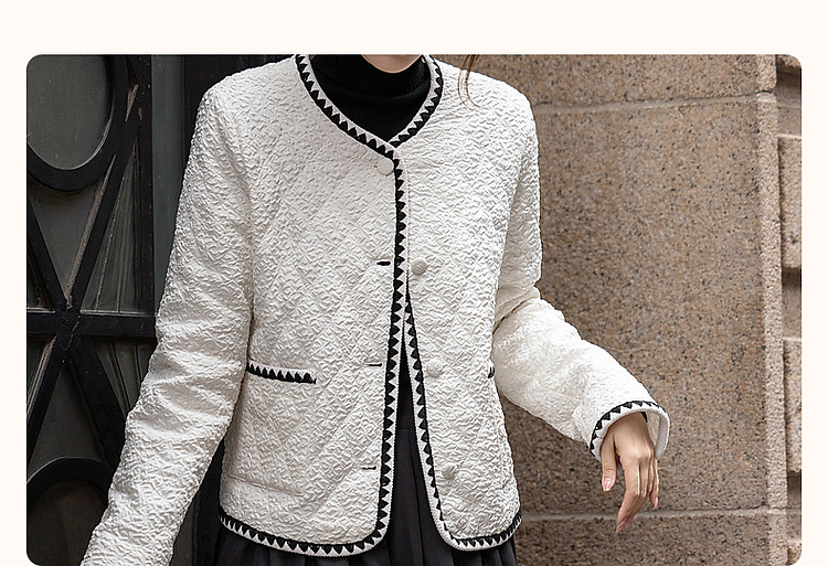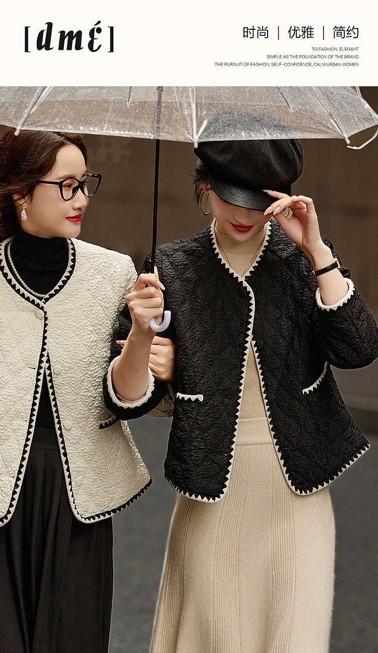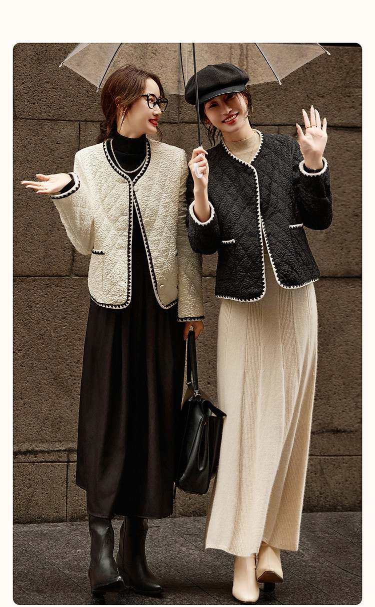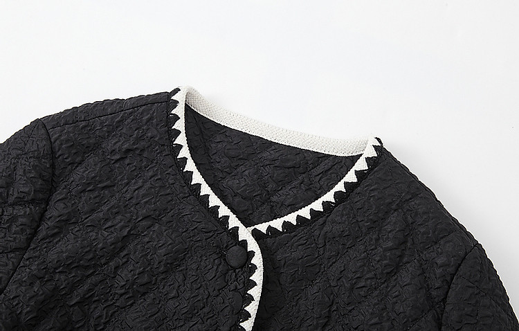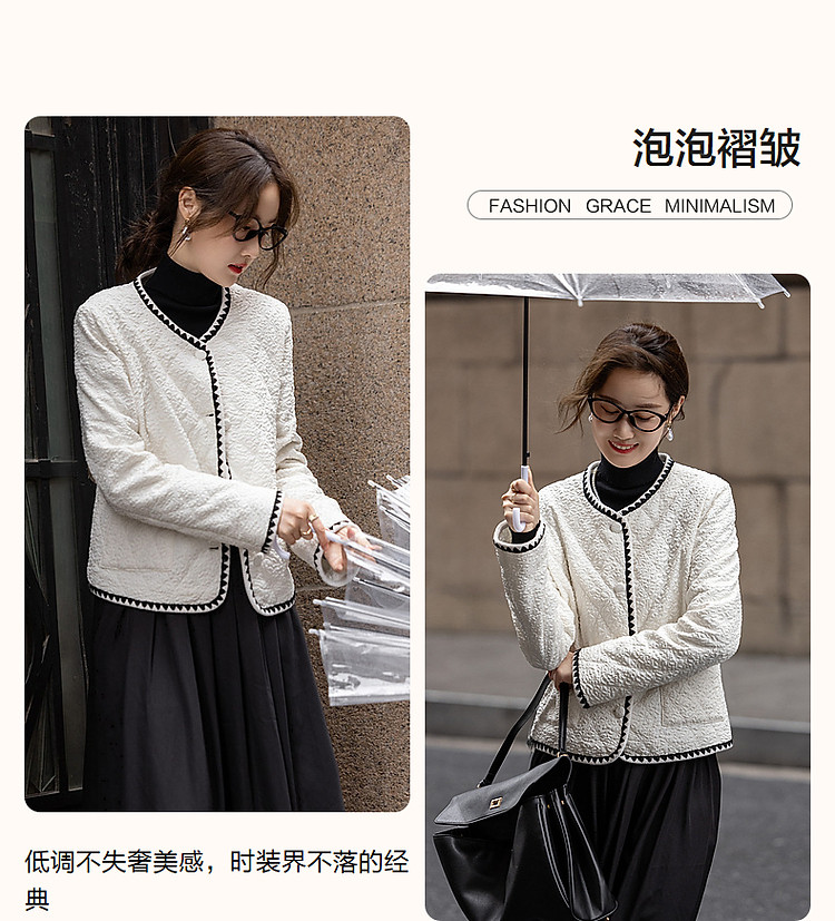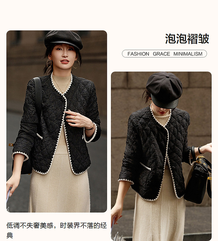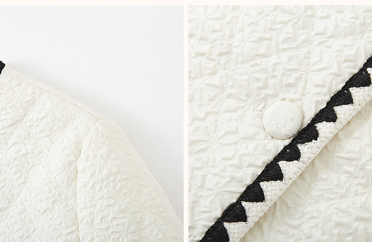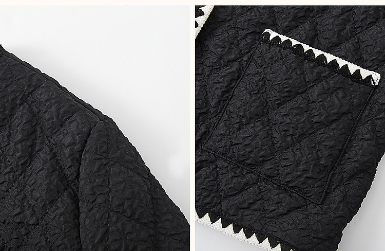 【奶油慕斯】冬小香风泡泡褶皱撞色织带棉衣菱格保暖棉服女短款