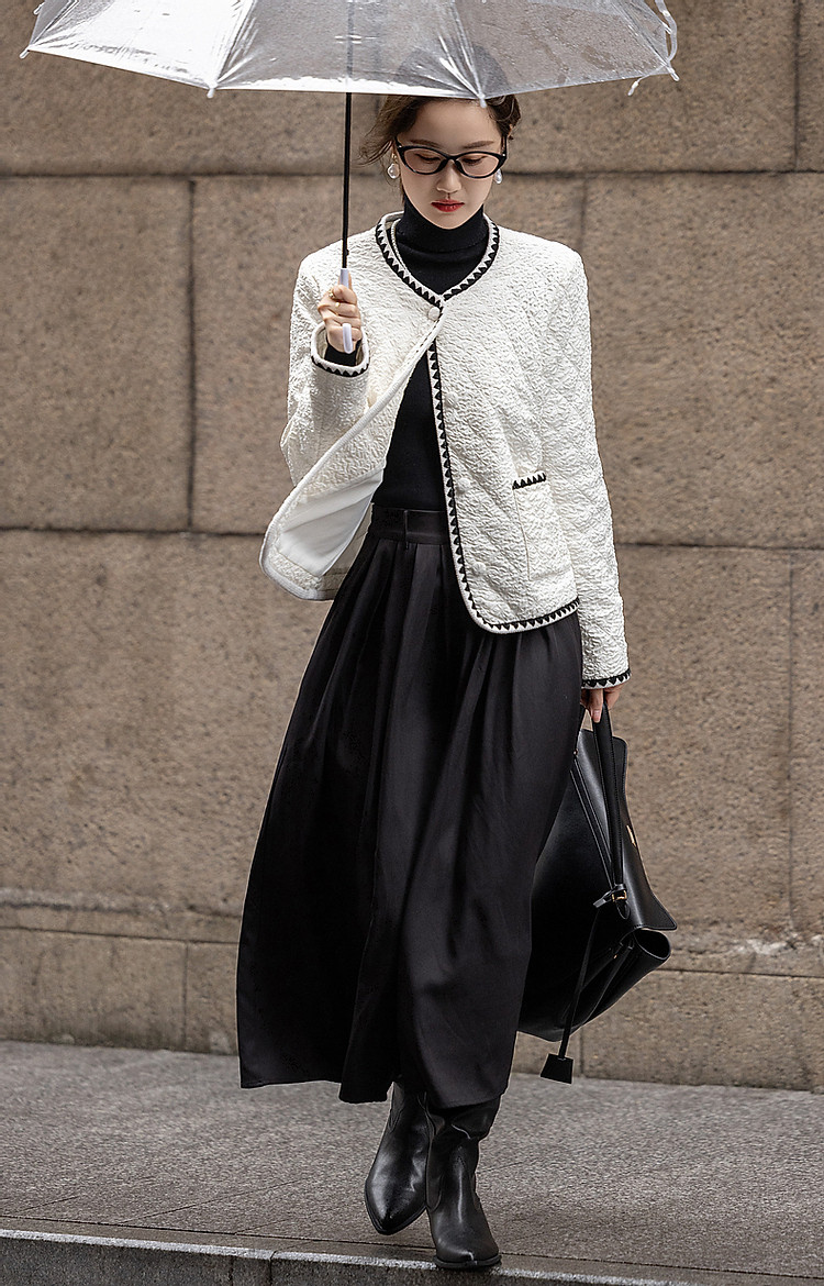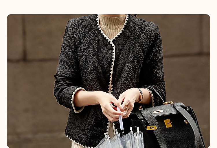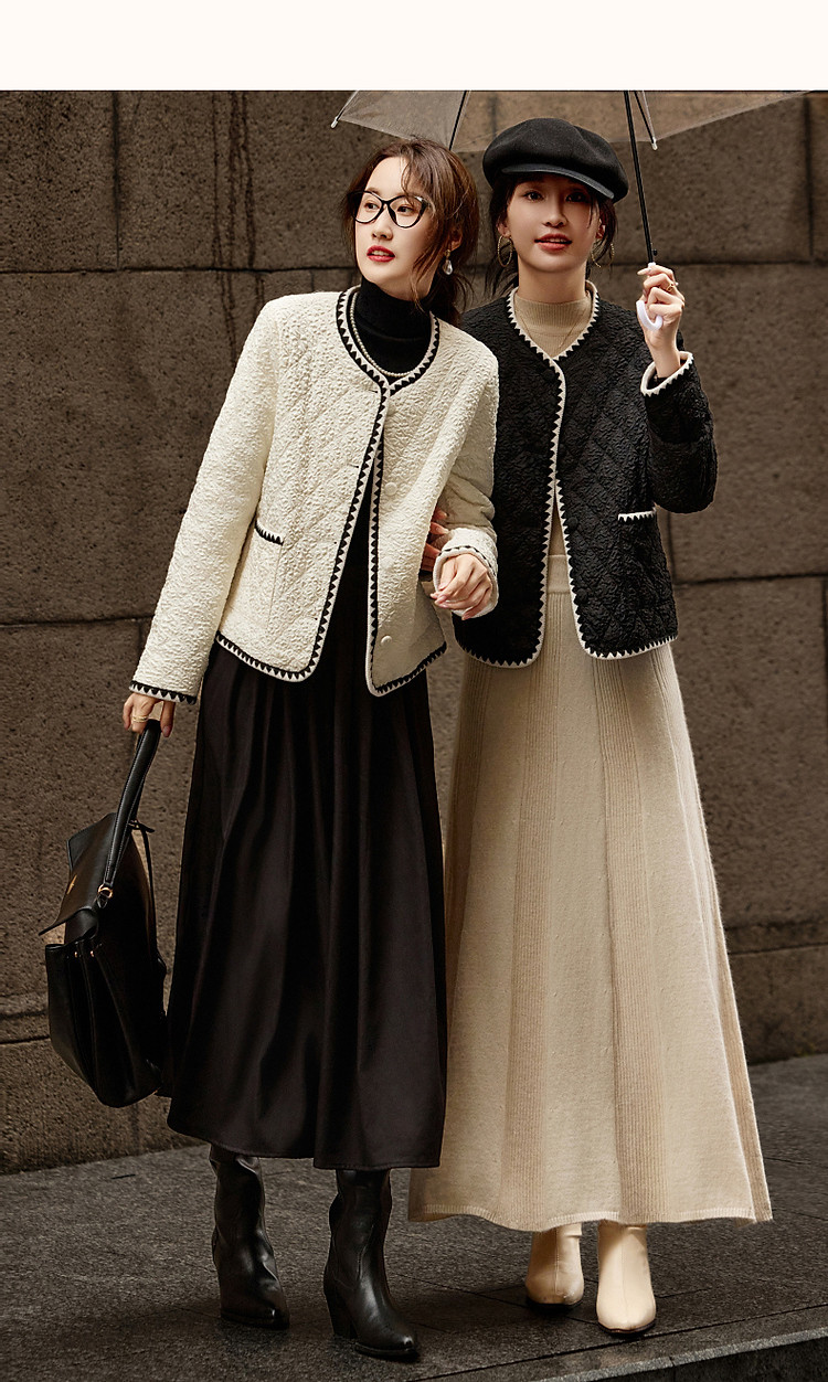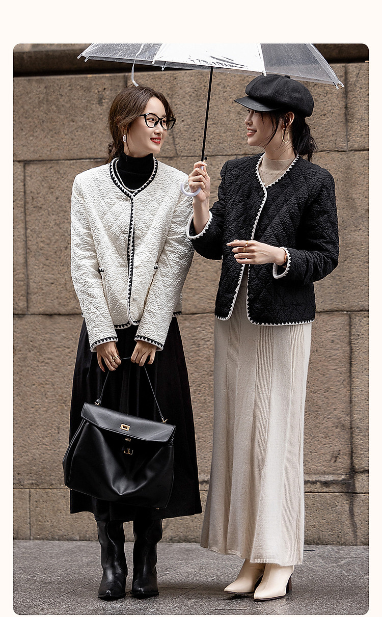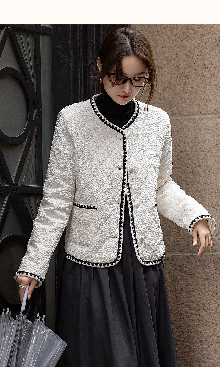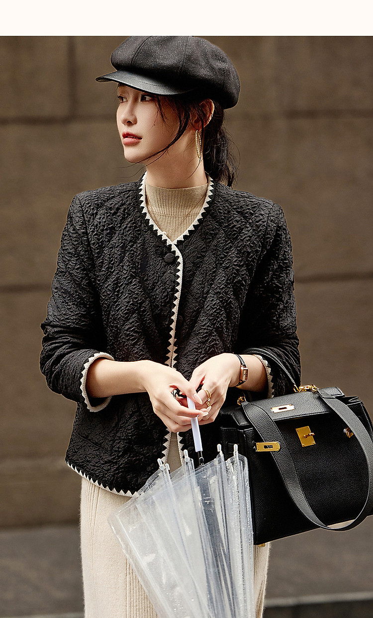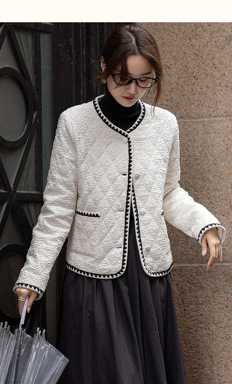 【奶油慕斯】冬小香风泡泡褶皱撞色织带棉衣菱格保暖棉服女短款