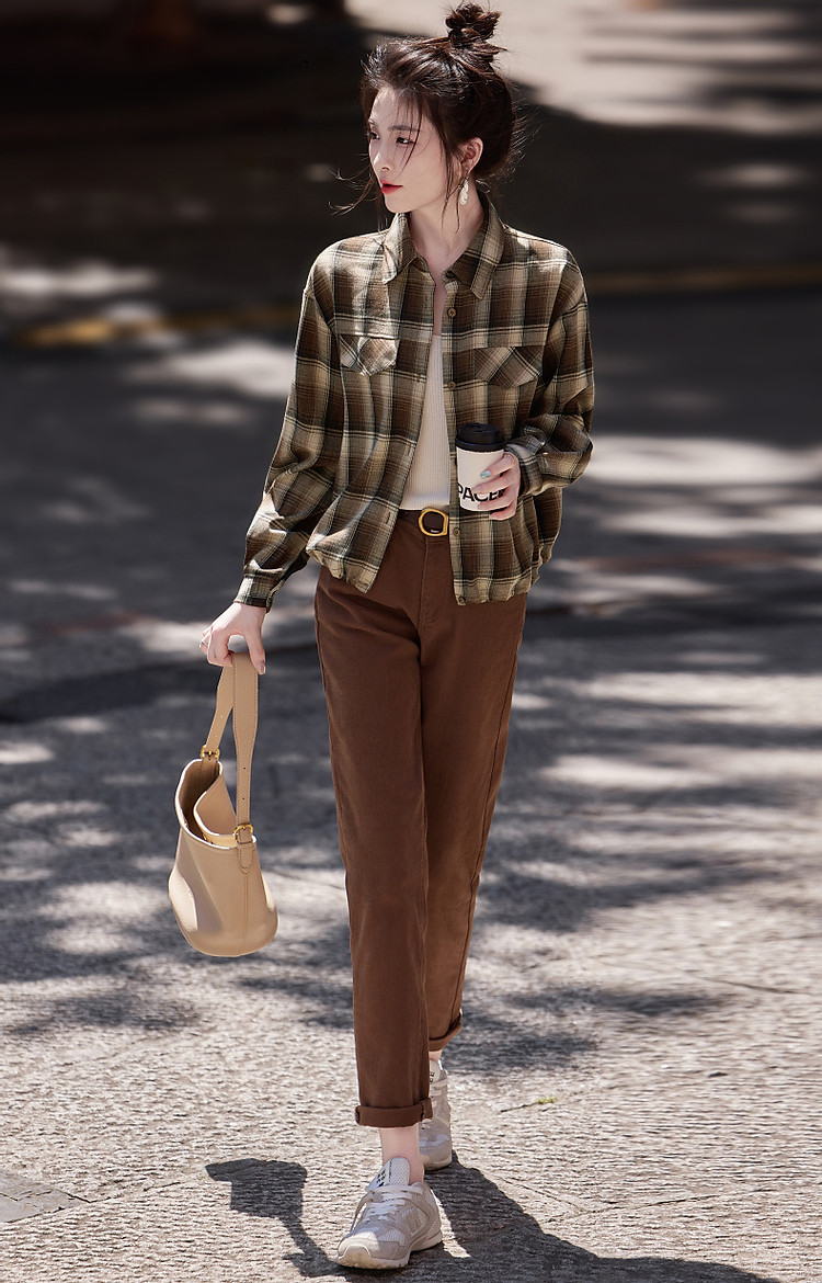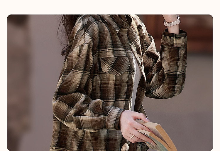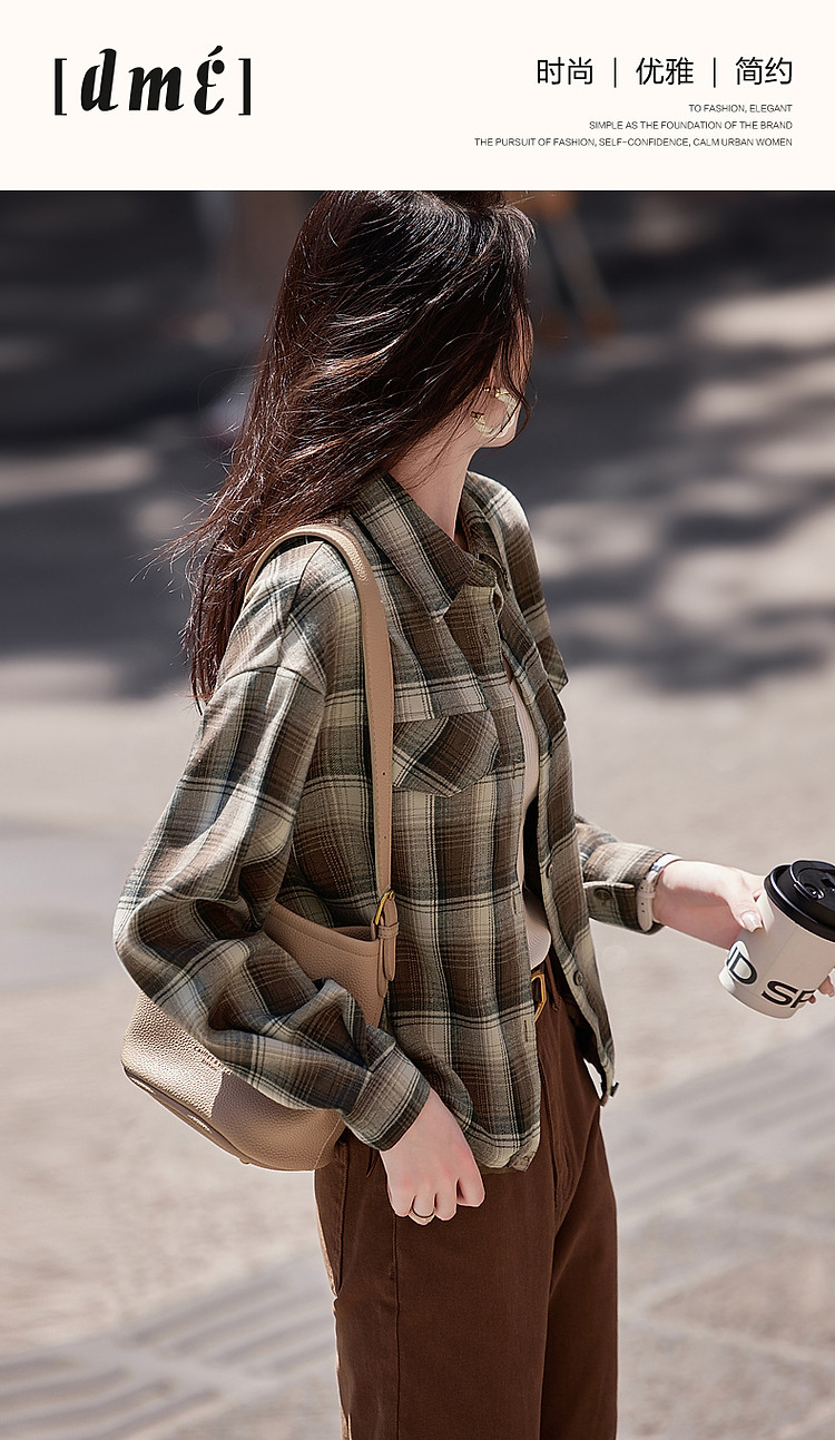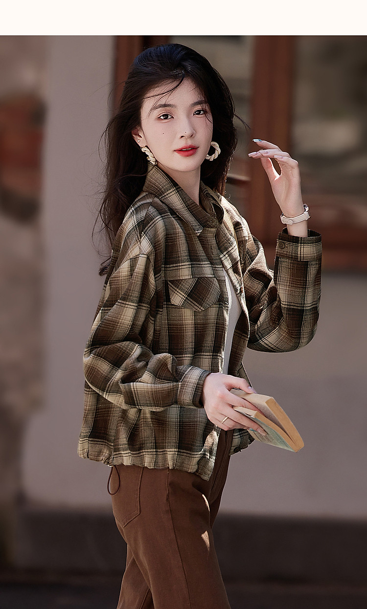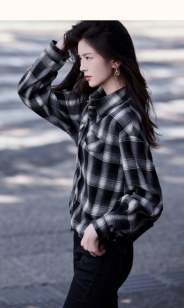 【知识分子穿搭】冬季简约风复古格纹衬衫可调节橡筋衬衣女装上衣