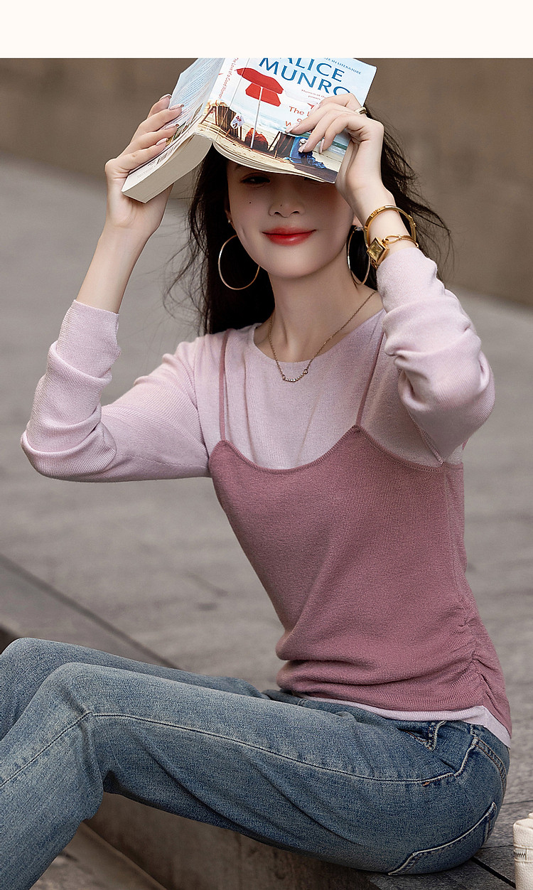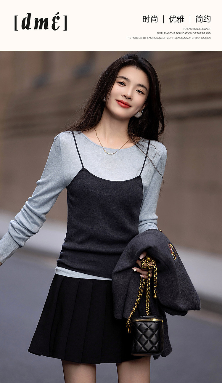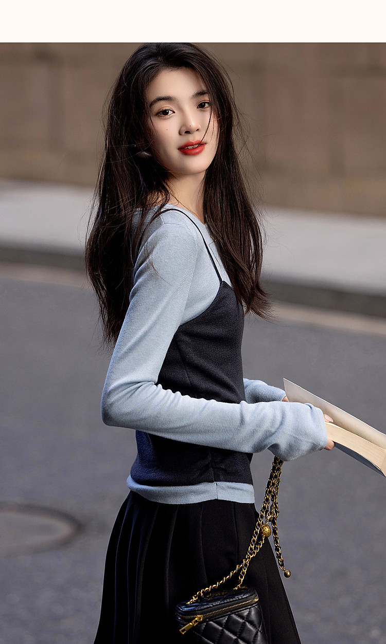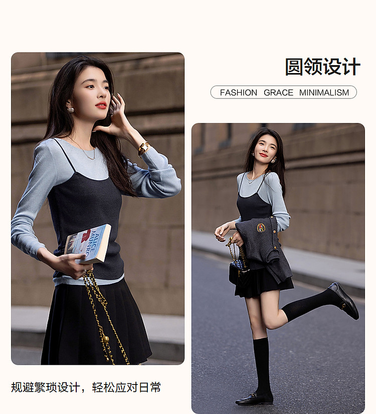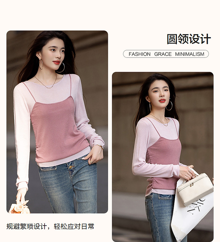 【树莓马卡龙】春少女感假两件含绵羊毛线衫轻龄针织衫女上衣