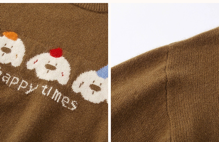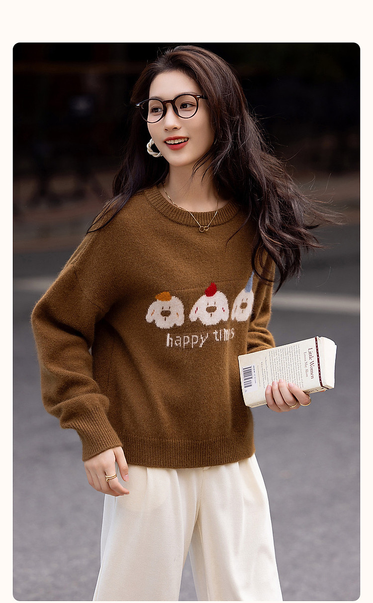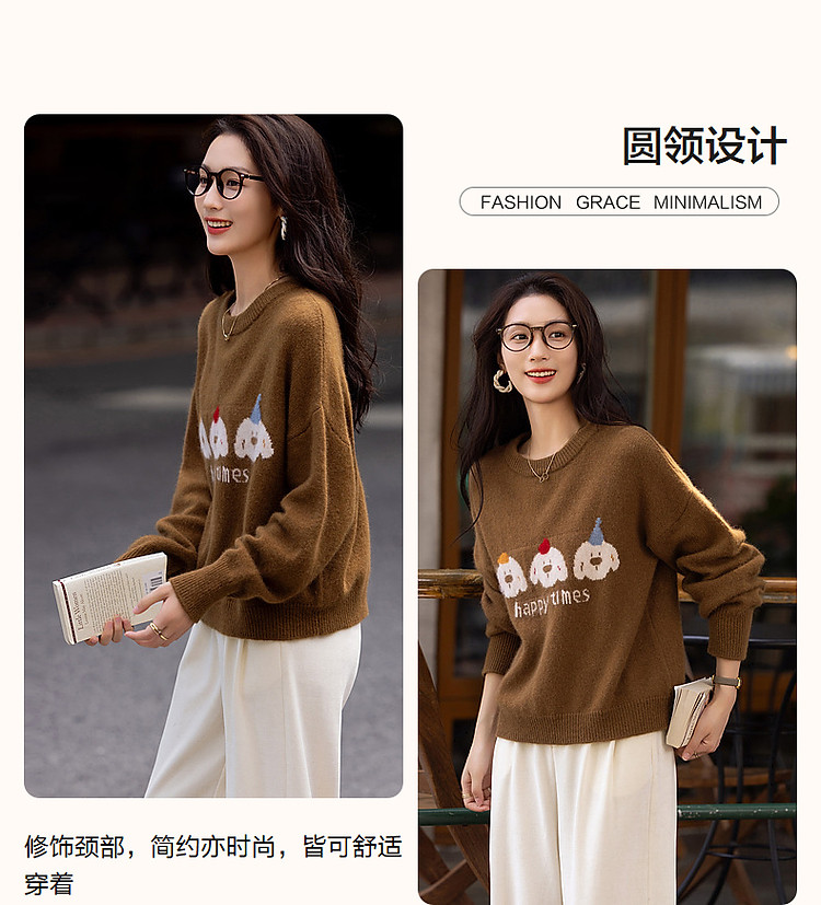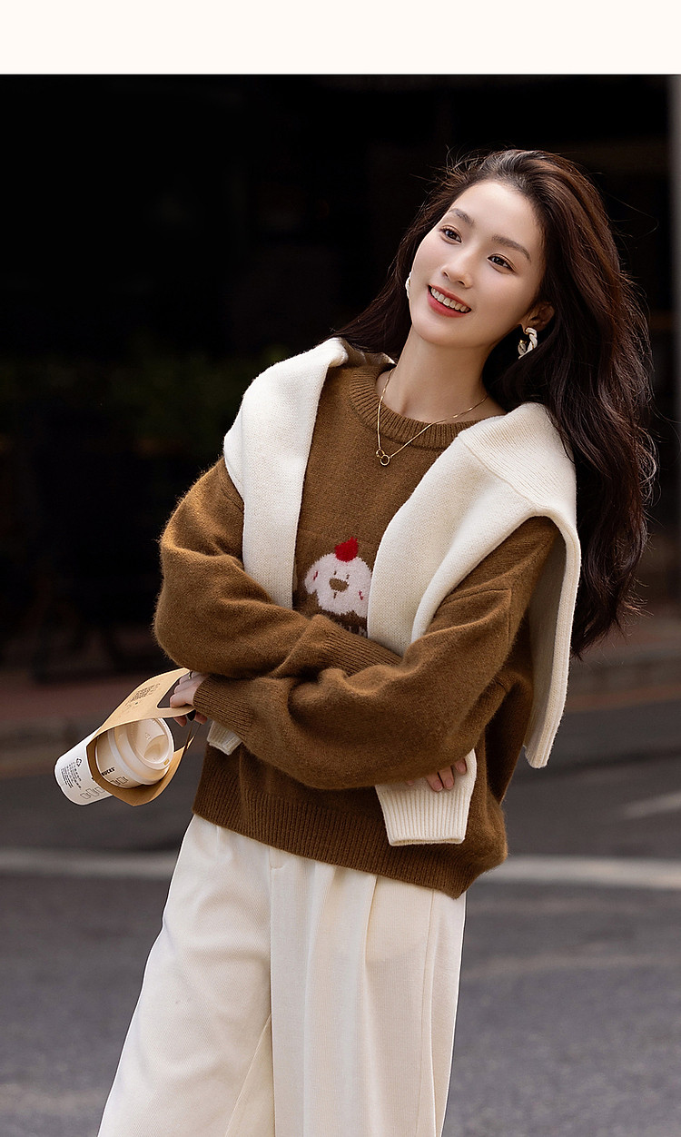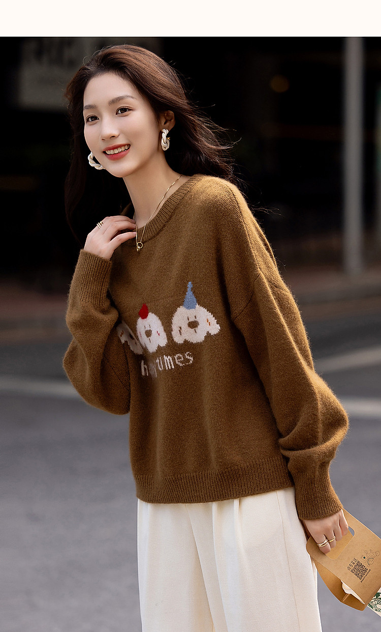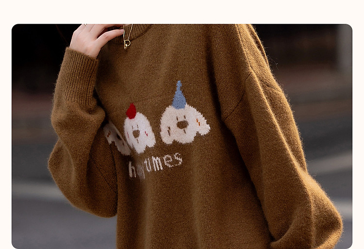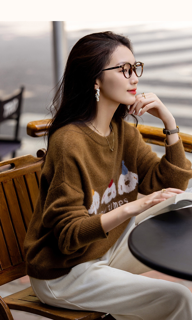 【童话小镇】冬慵懒含绵羊毛蜜熊绒线衫字母撞色提花针织衫女上衣