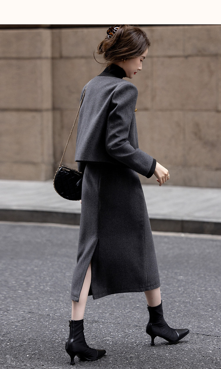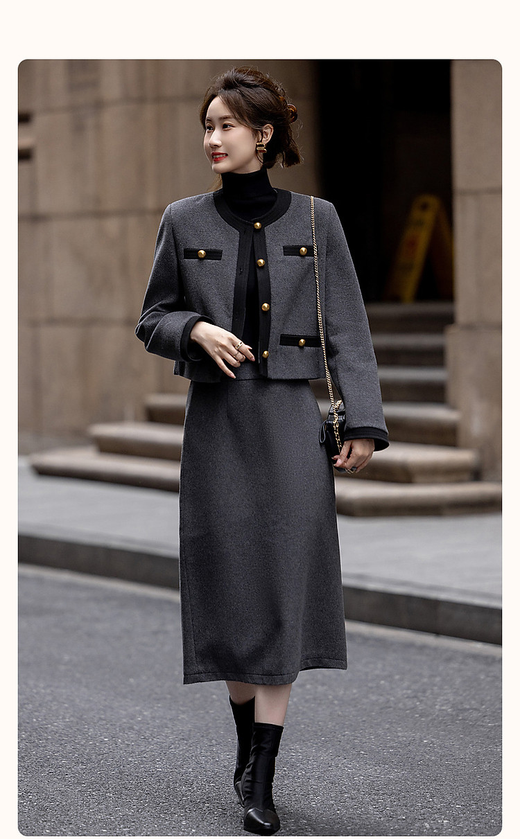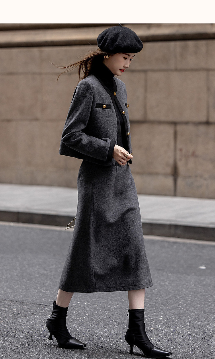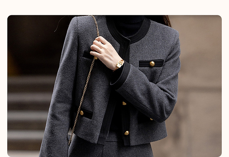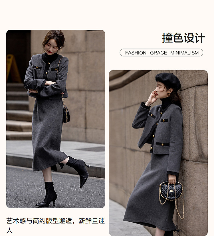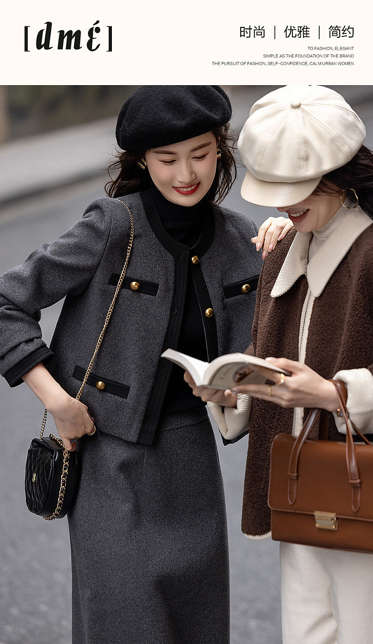 【会呼吸的绵羊毛】冬季千金玛德琳一字袋撞色套装小香风两件套女