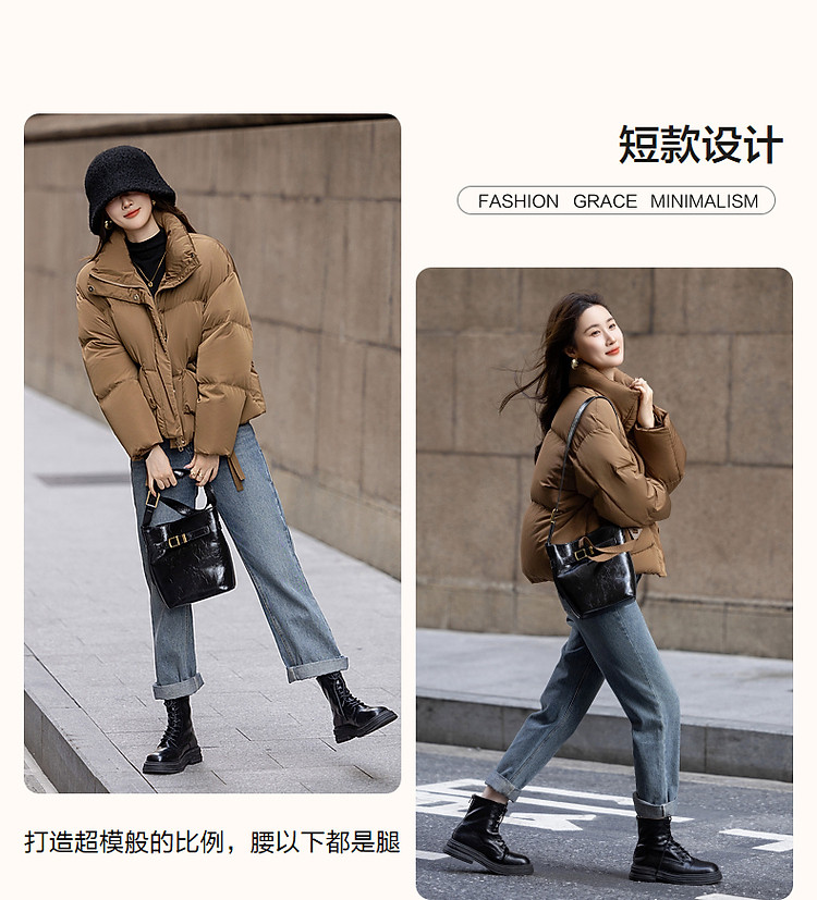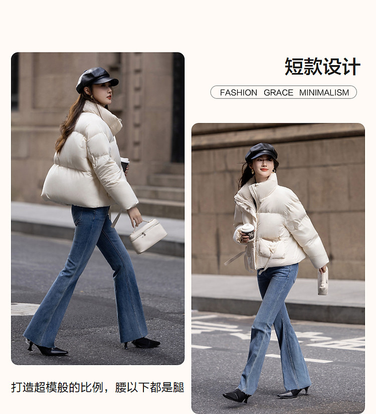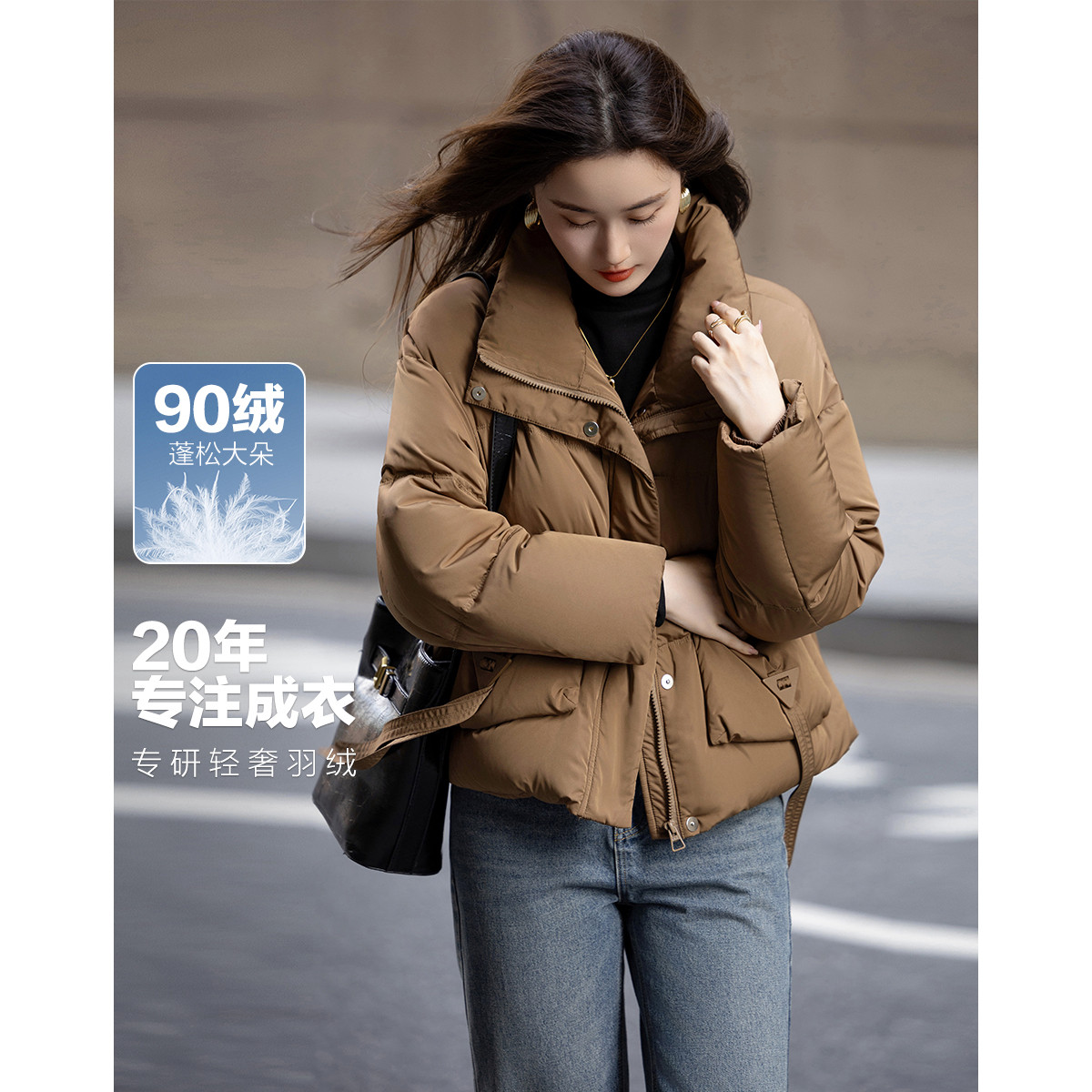 【云朵泡芙】冬50D棉感仿记忆90鸭绒橡筋A字短款女式羽绒服