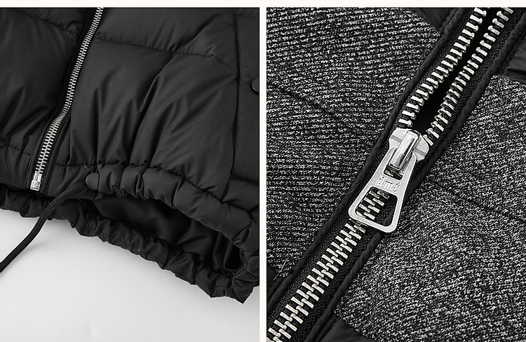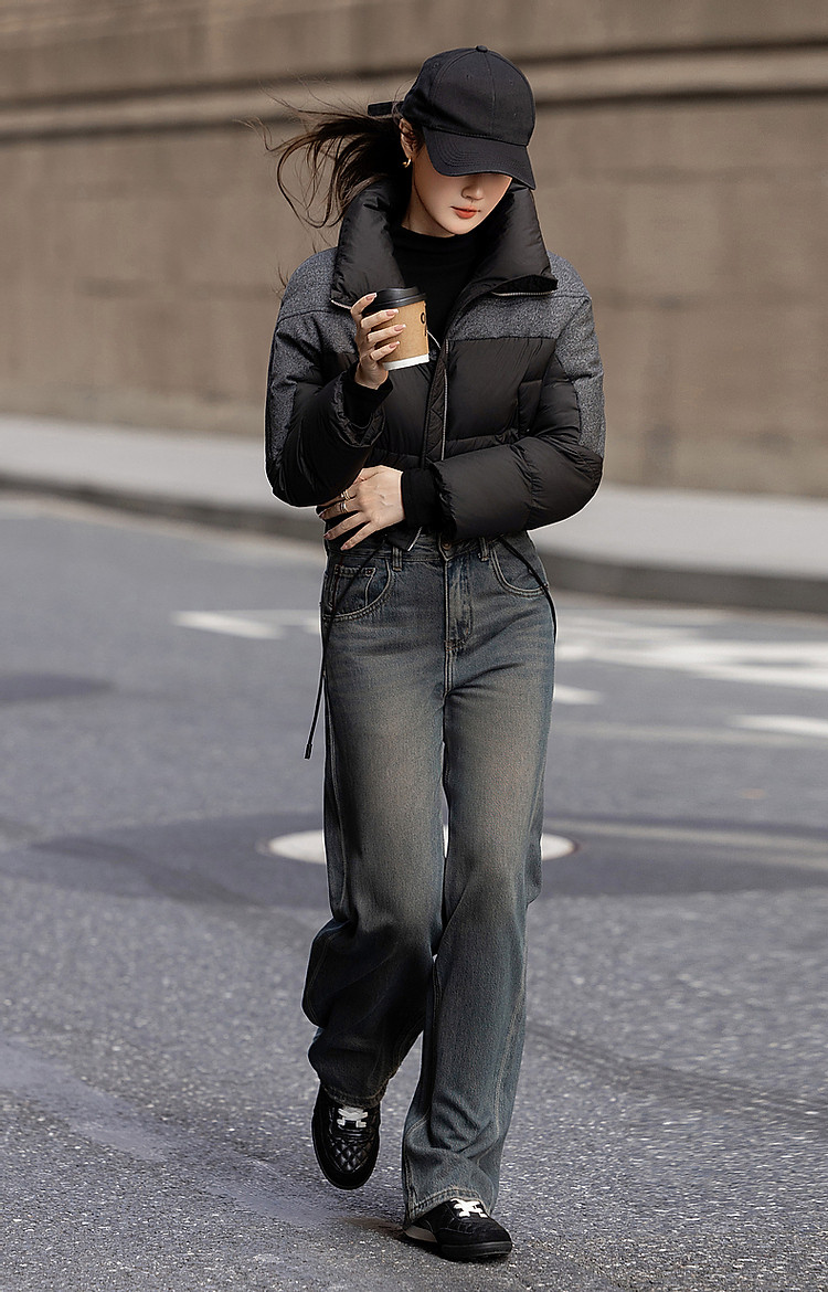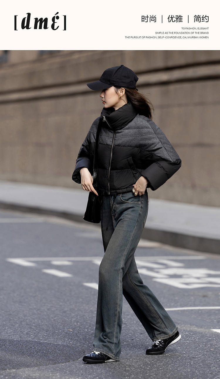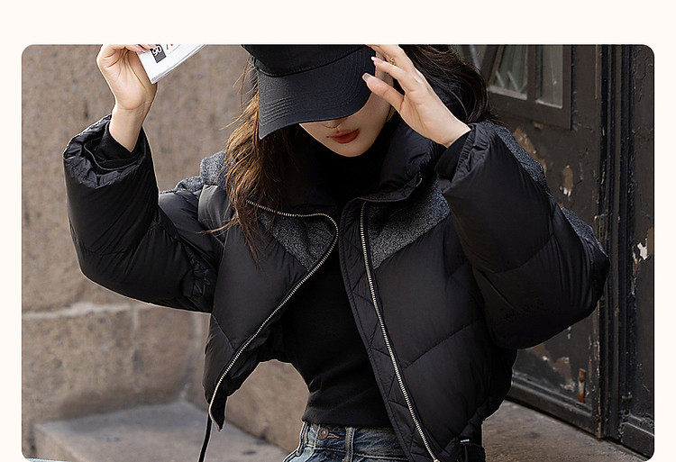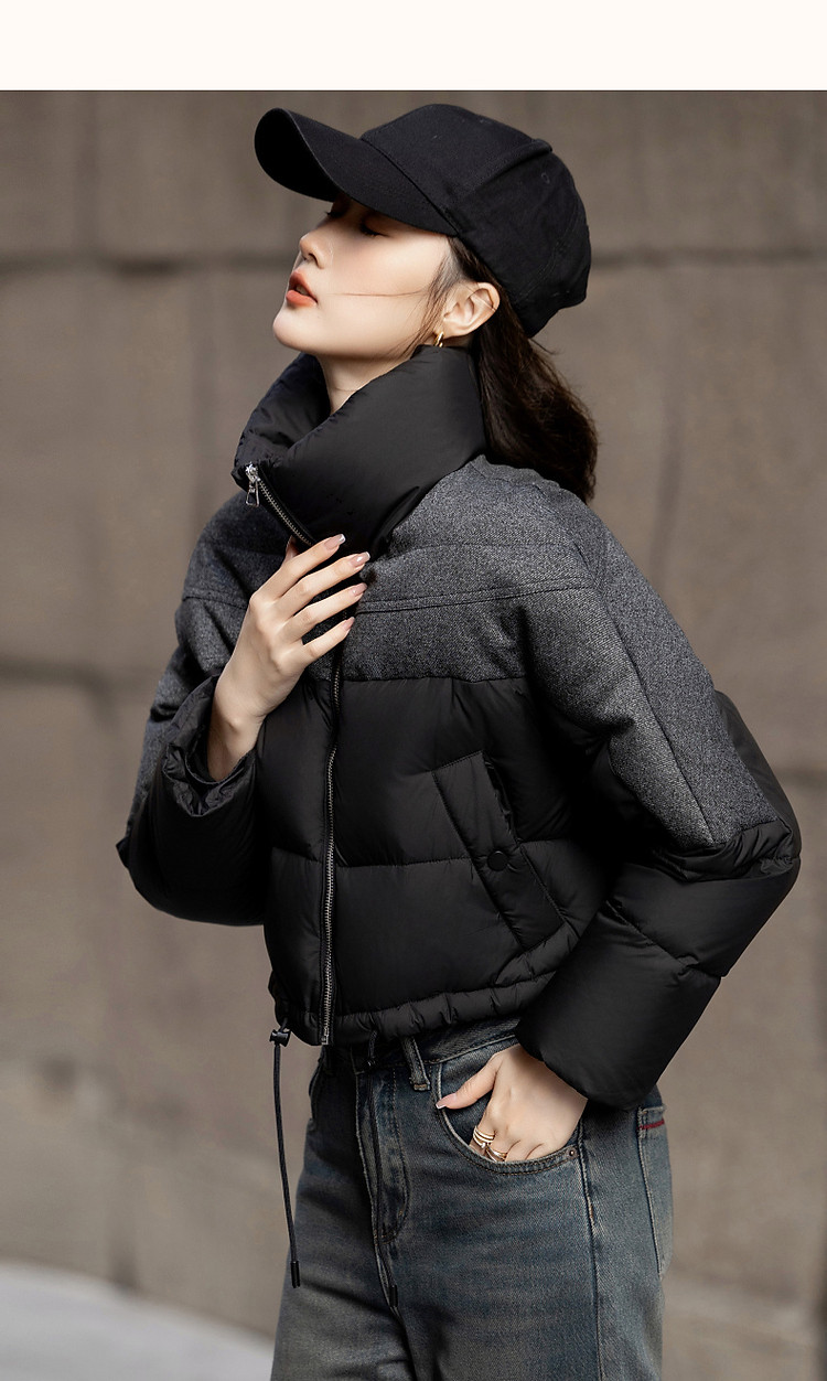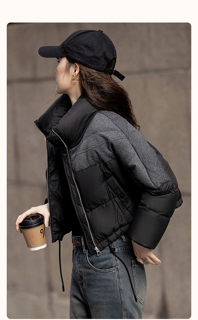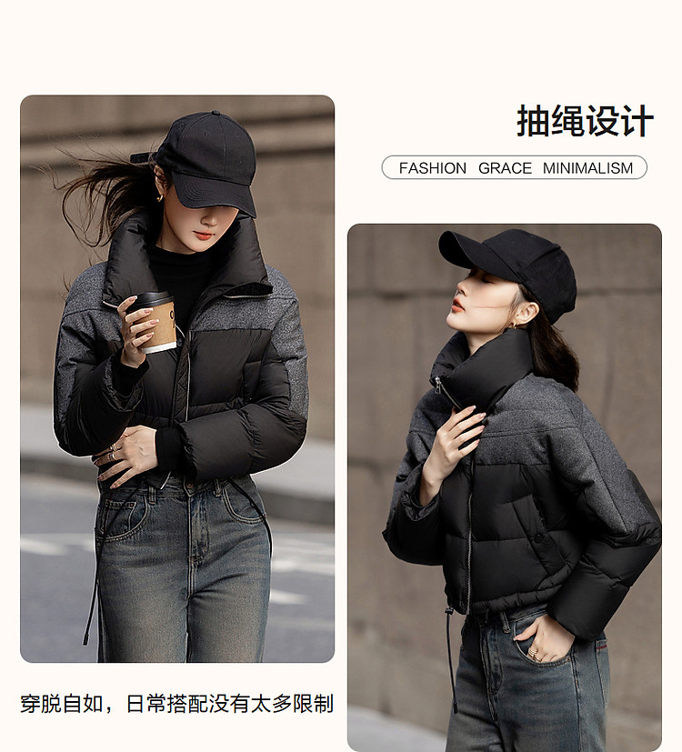 【雪山都市】冬轻奢90鸭绒400T春亚纺抽绳拼接短款羽绒服女