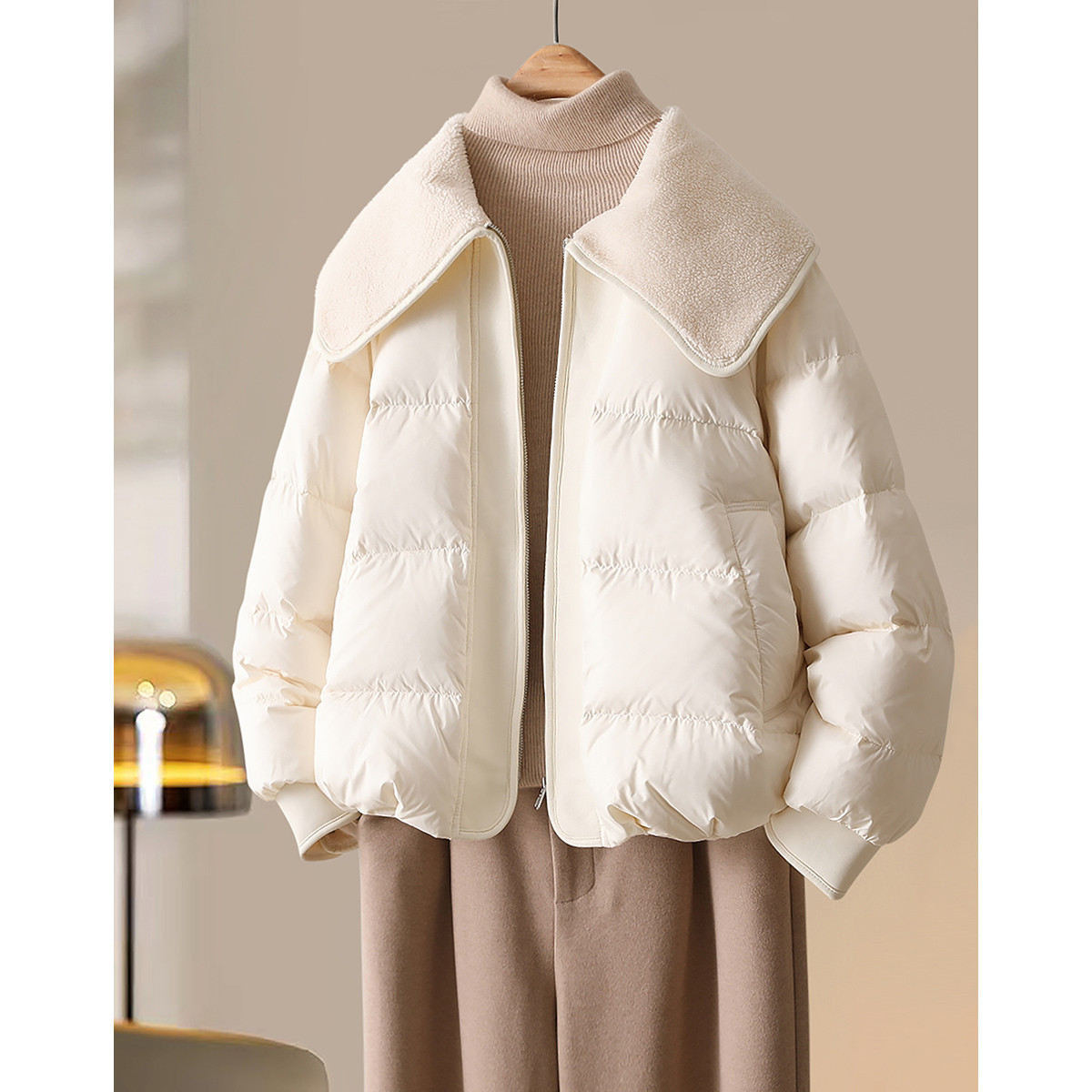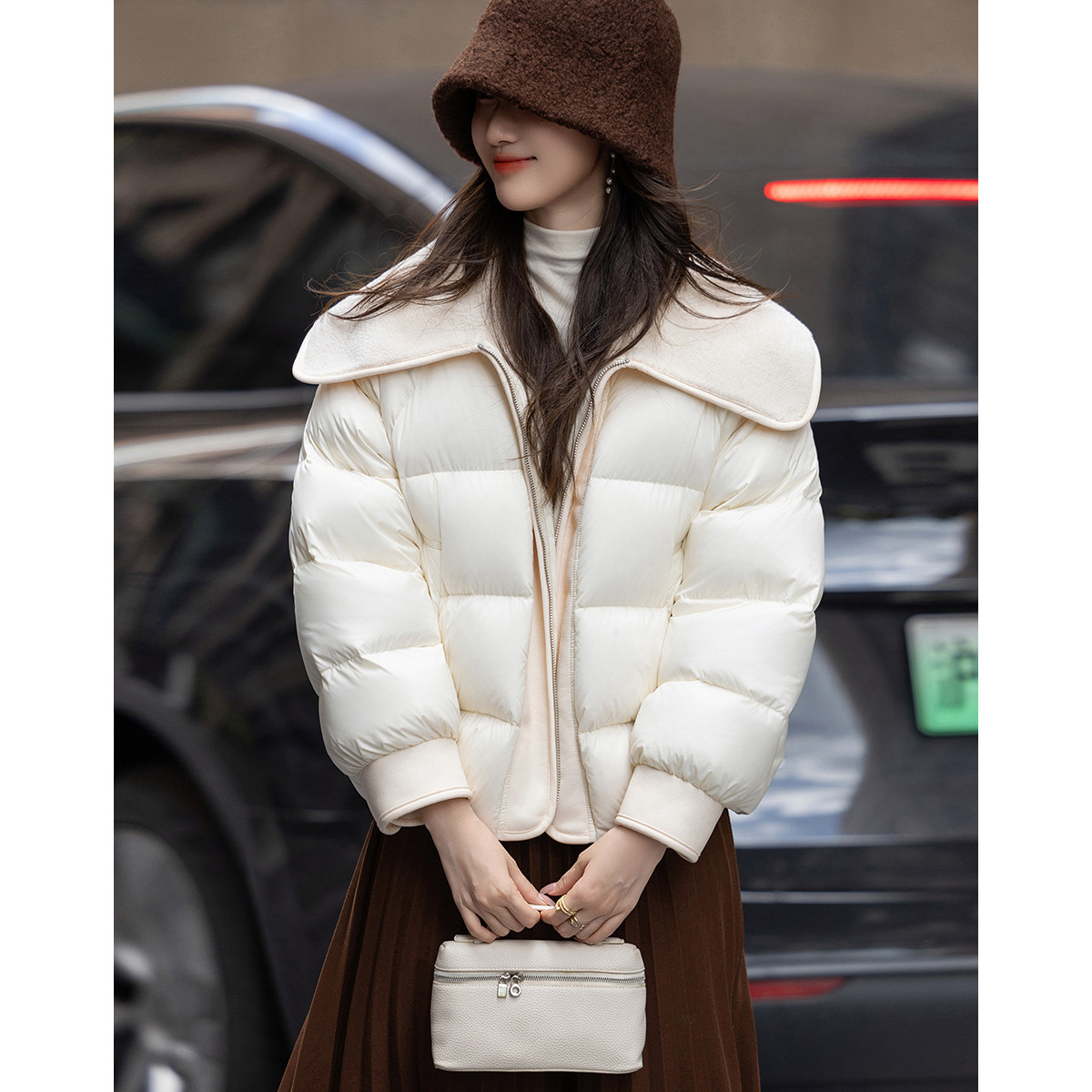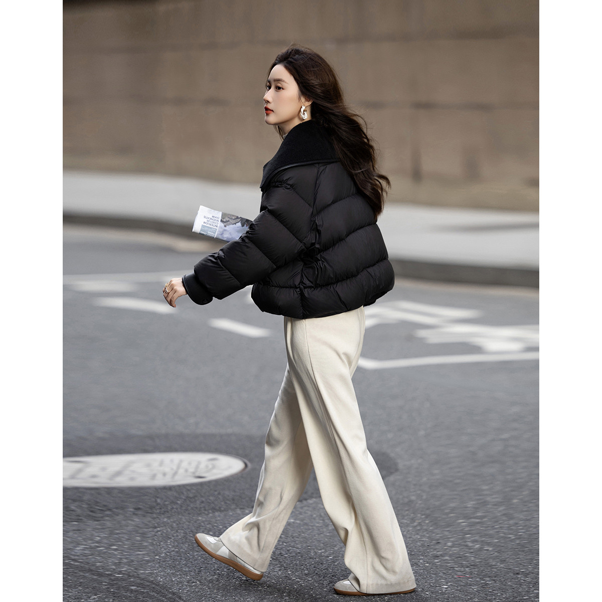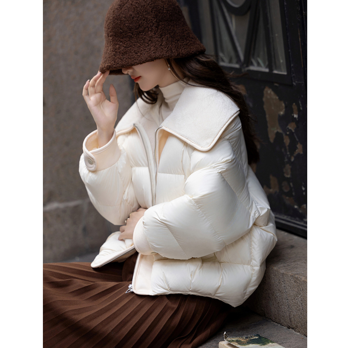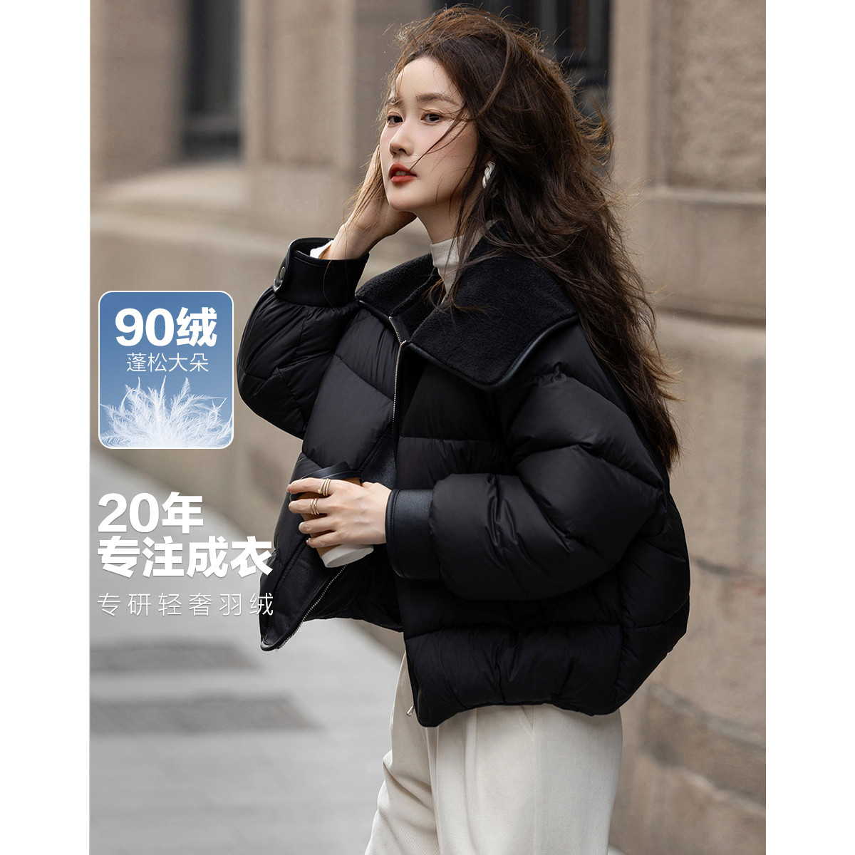 【驭雪精灵】冬400T春亚纺仿羊羔绒大翻领90鸭绒短羽绒服女