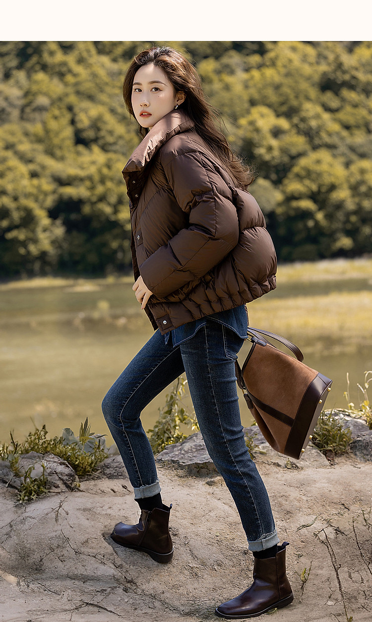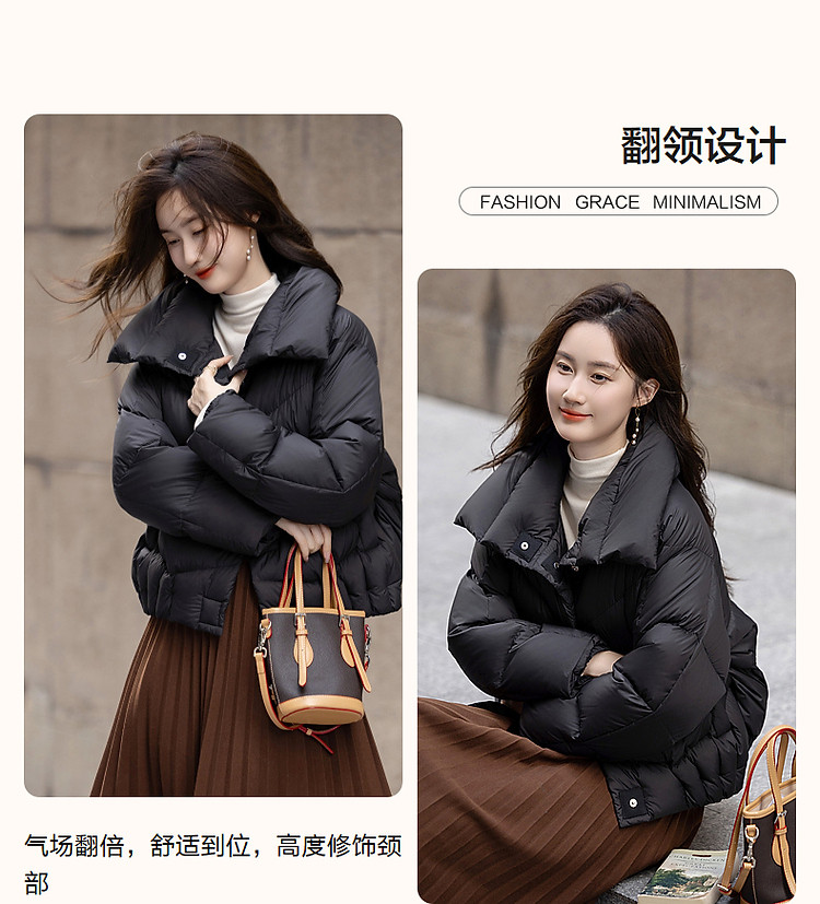 【城市轻户外】冬400T春亚纺压胶蓬松90鸭绒面包服羽绒服女