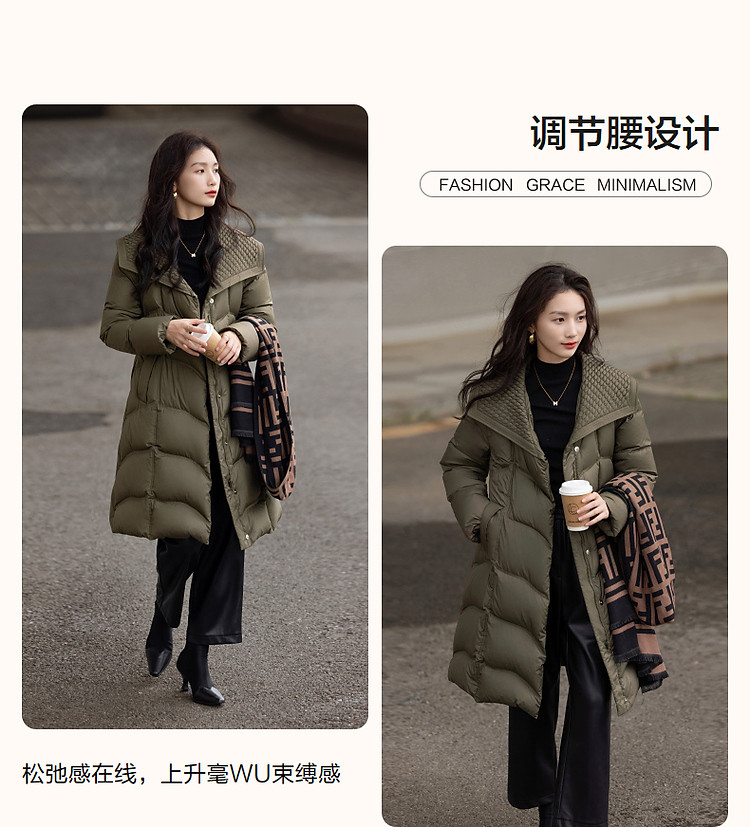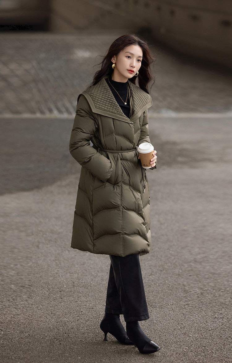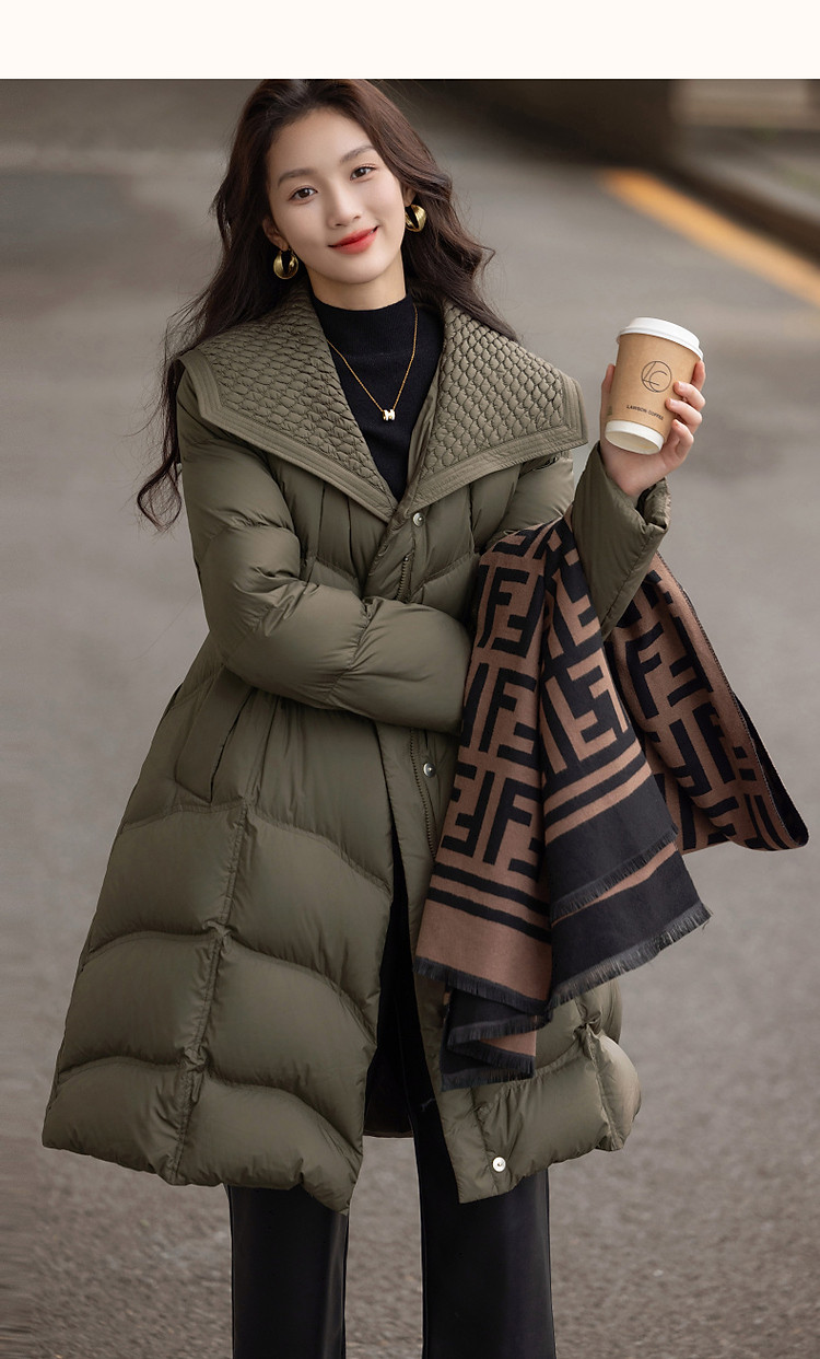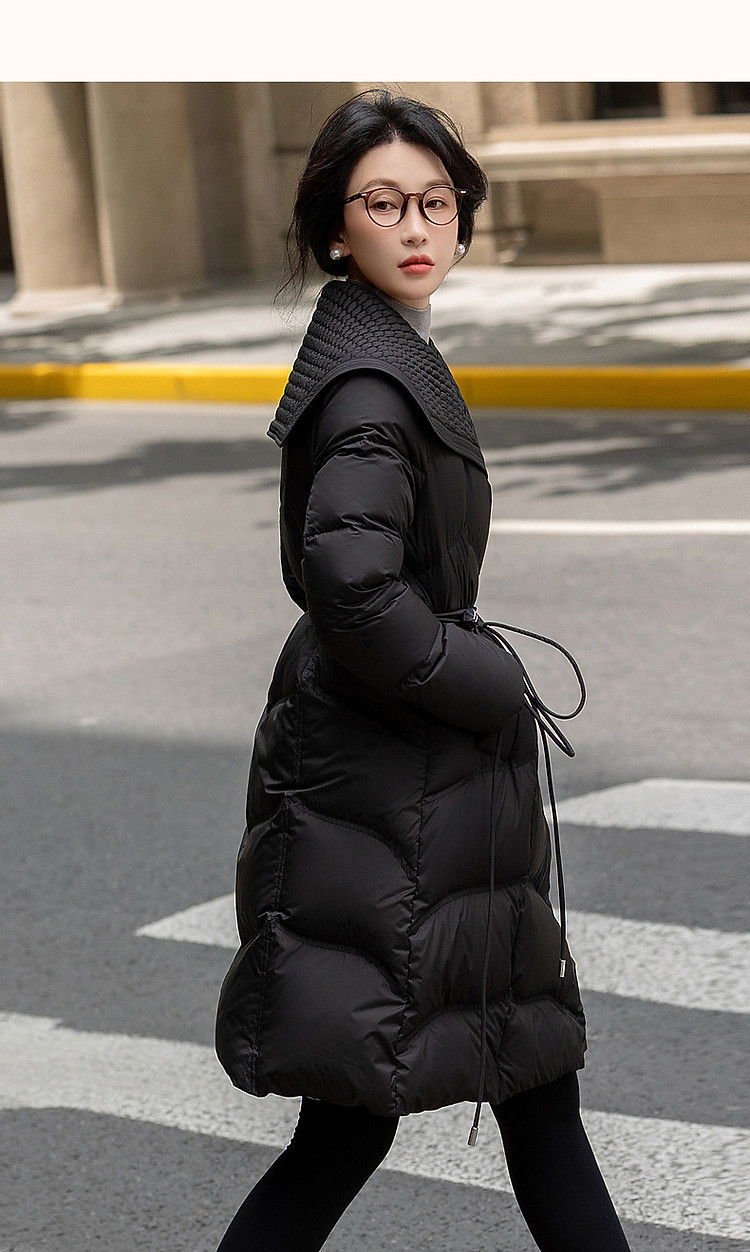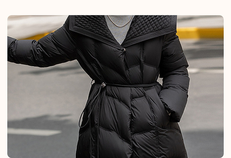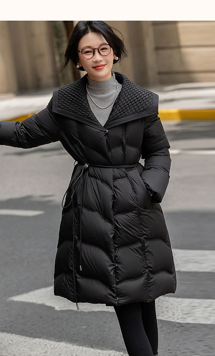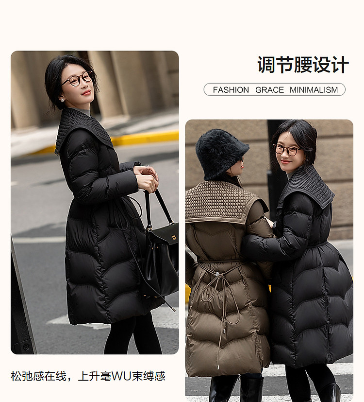 【400T春亚纺】冬季轻量90鸭绒大翻领抽皱调节腰女式羽绒服