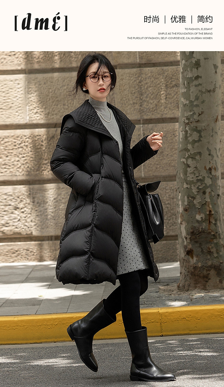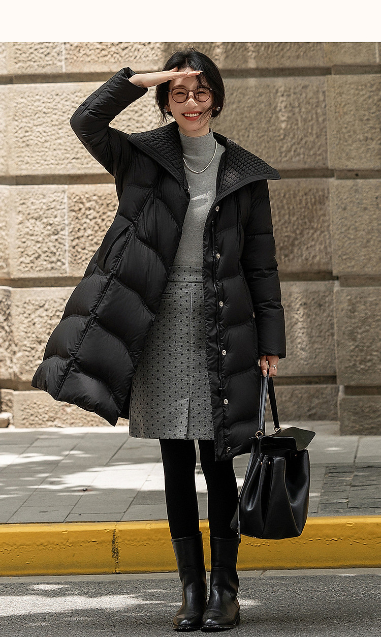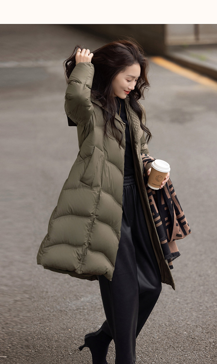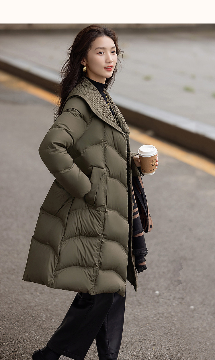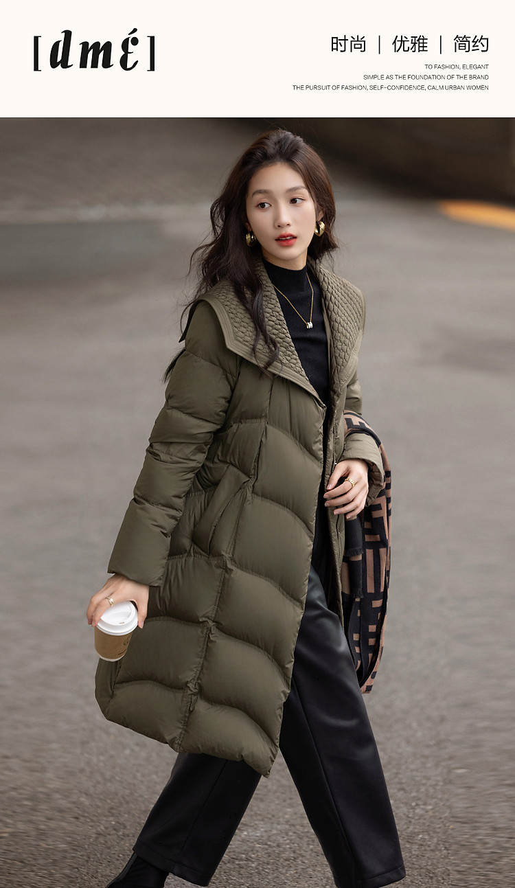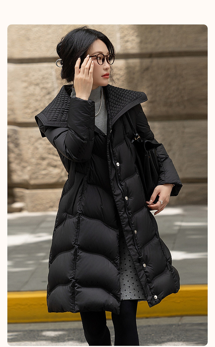 【400T春亚纺】冬季轻量90鸭绒大翻领抽皱调节腰女式羽绒服